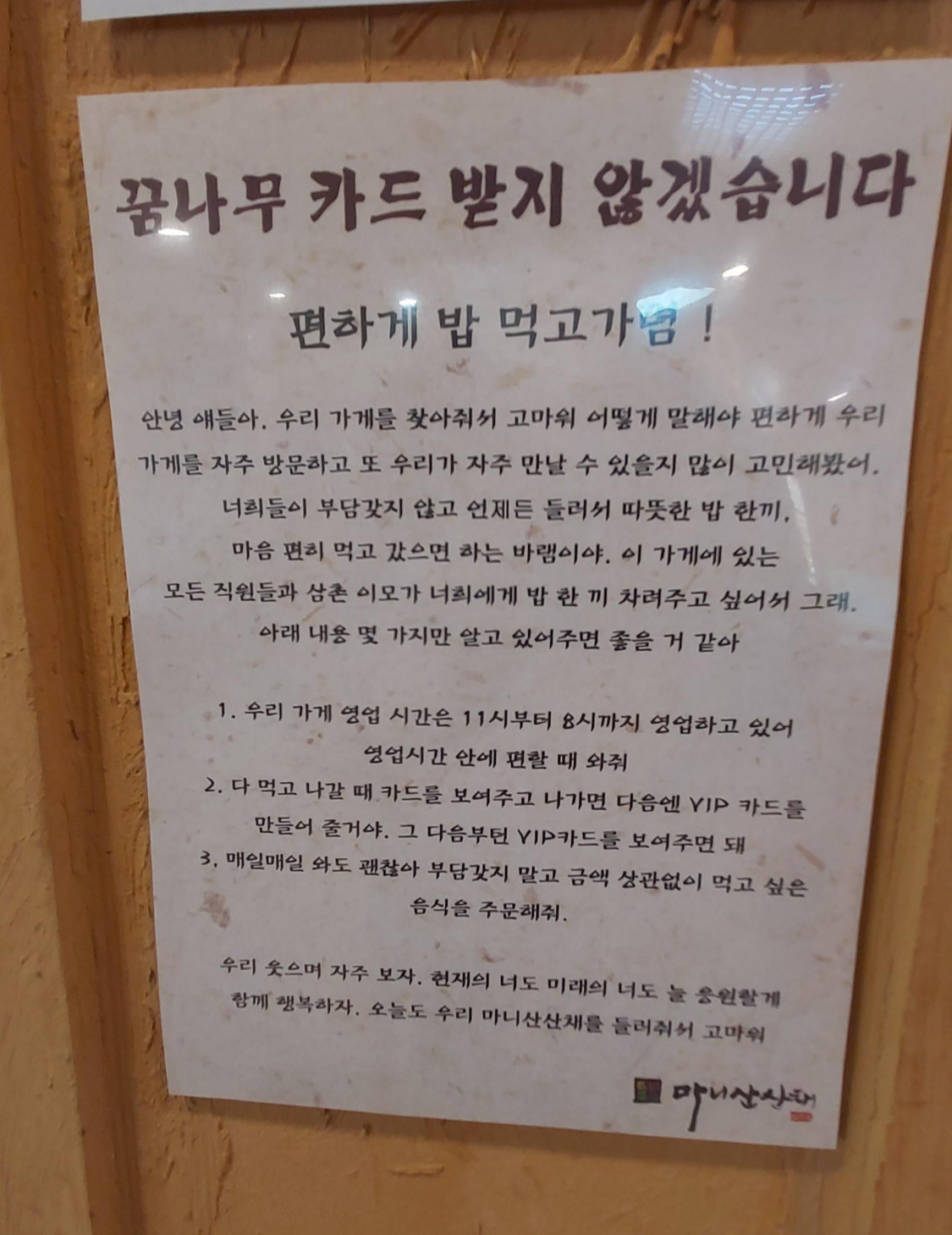 꿈나무 카드를 가지고 있는 청소년들에게는 무료로 음식을 제공한다고 합니다.