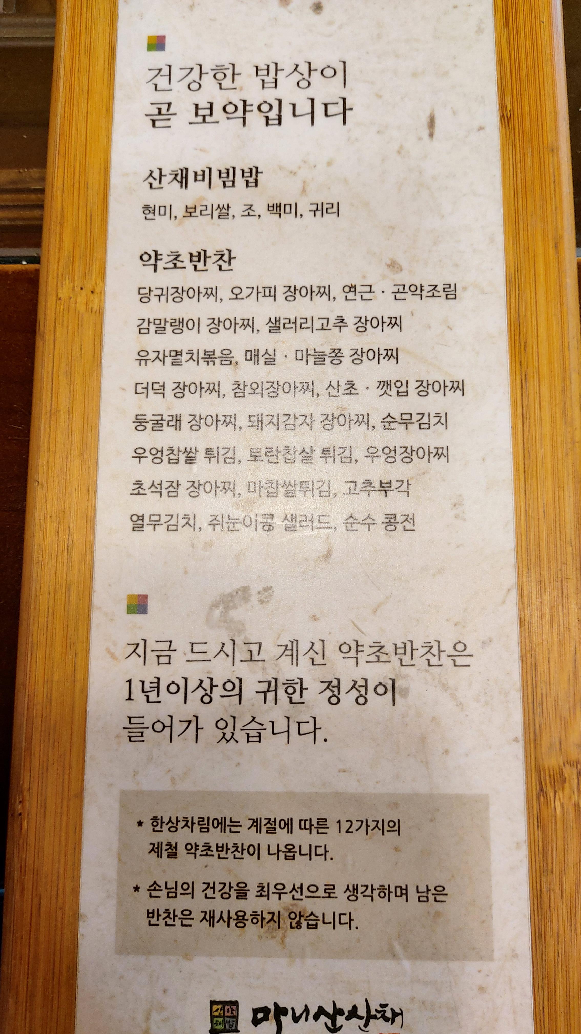 본점은 메인이 산채비빔밥인데 반해서 일산점은 정식 스타일입니다.