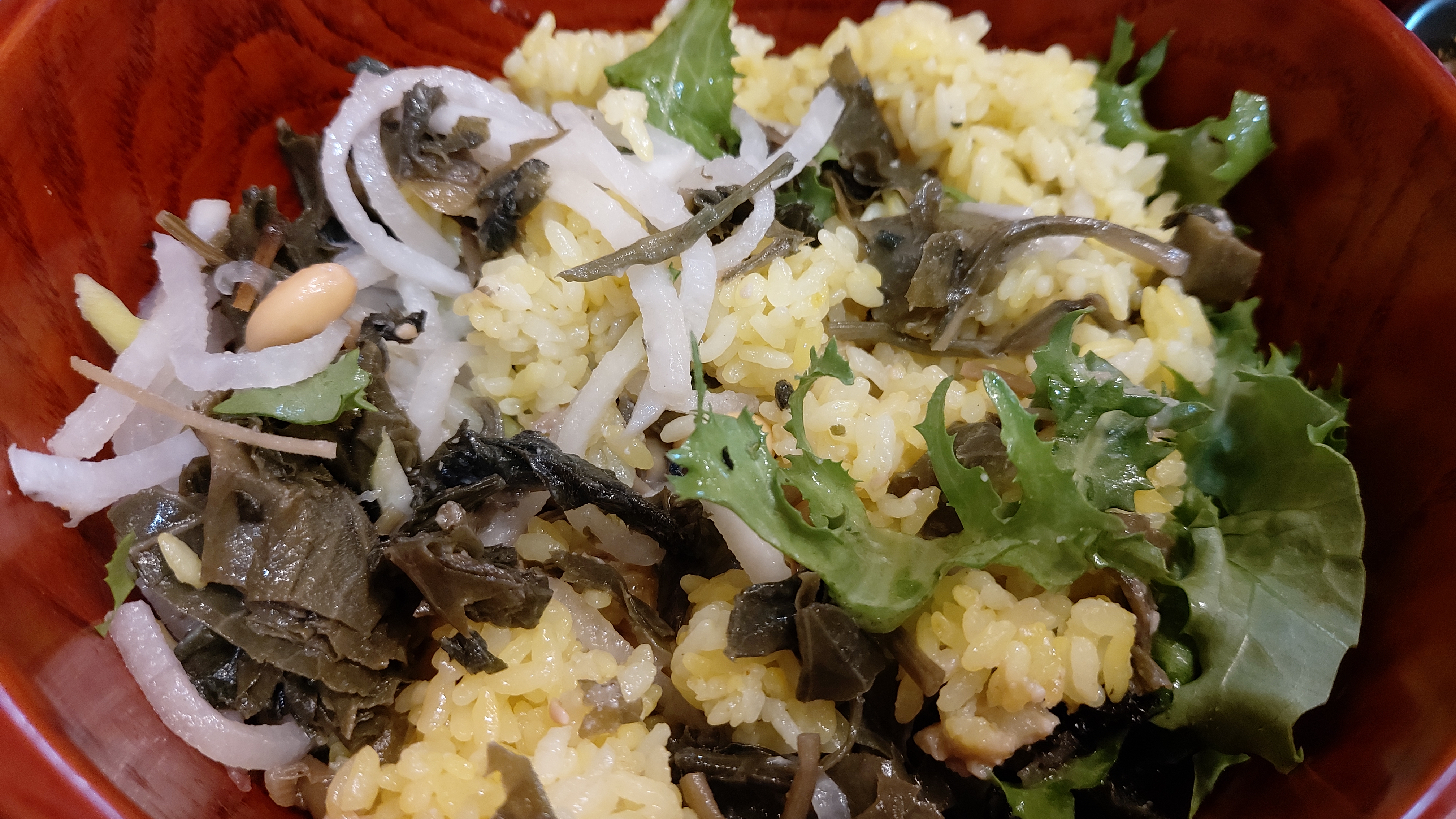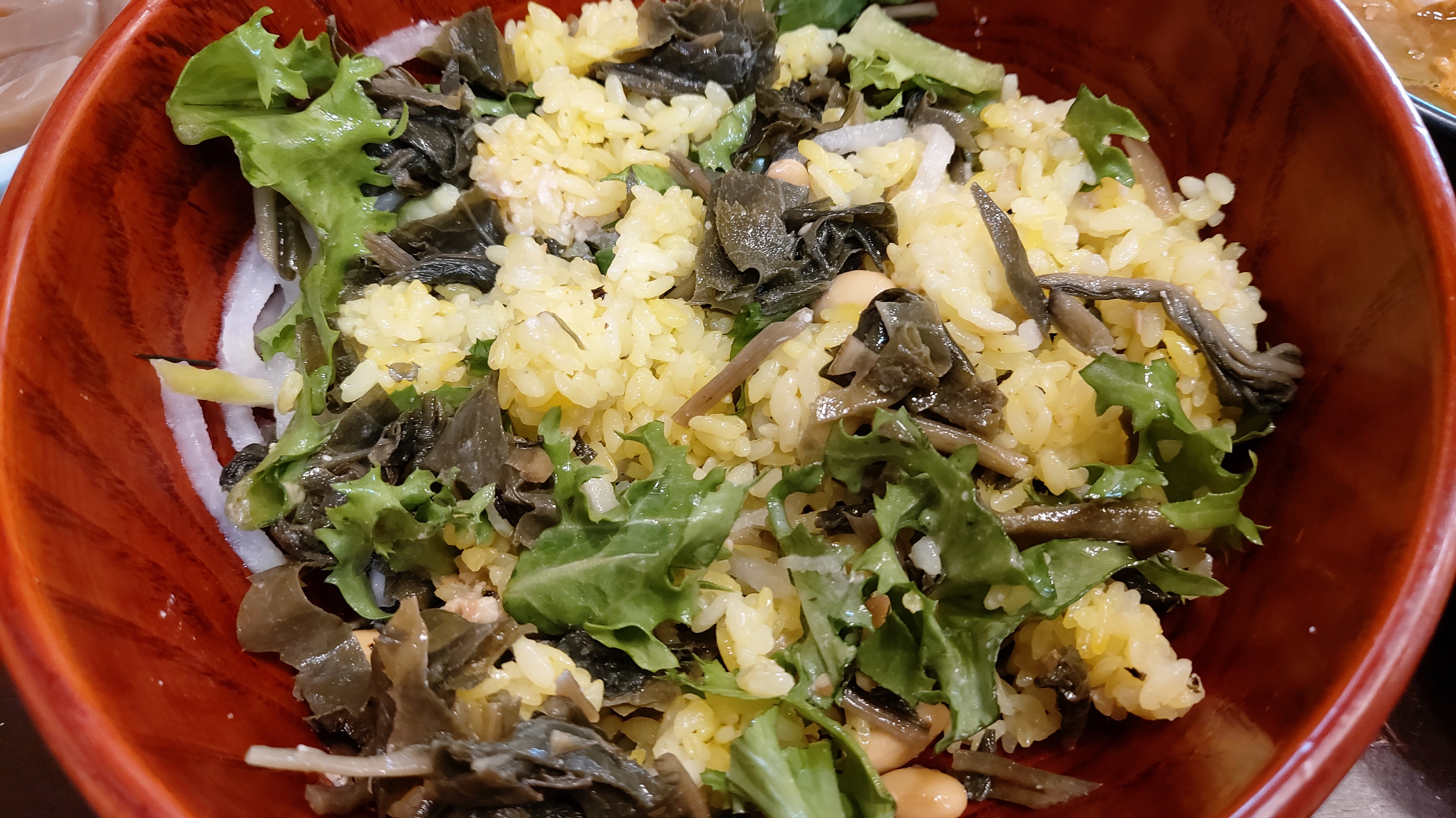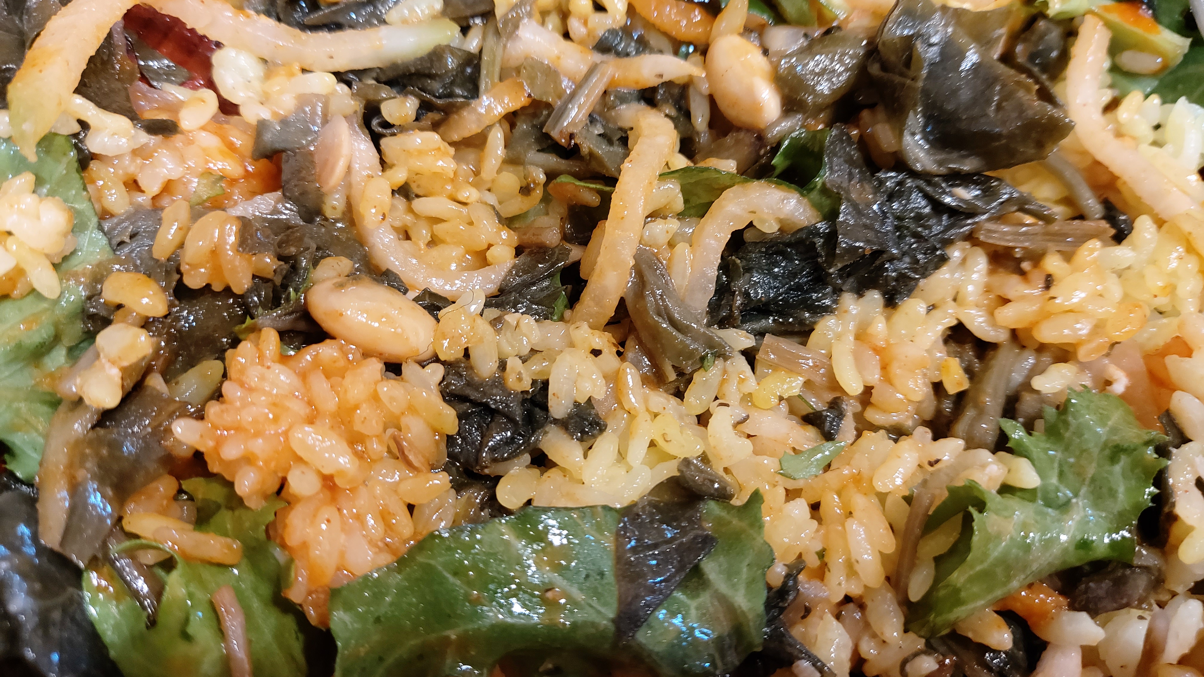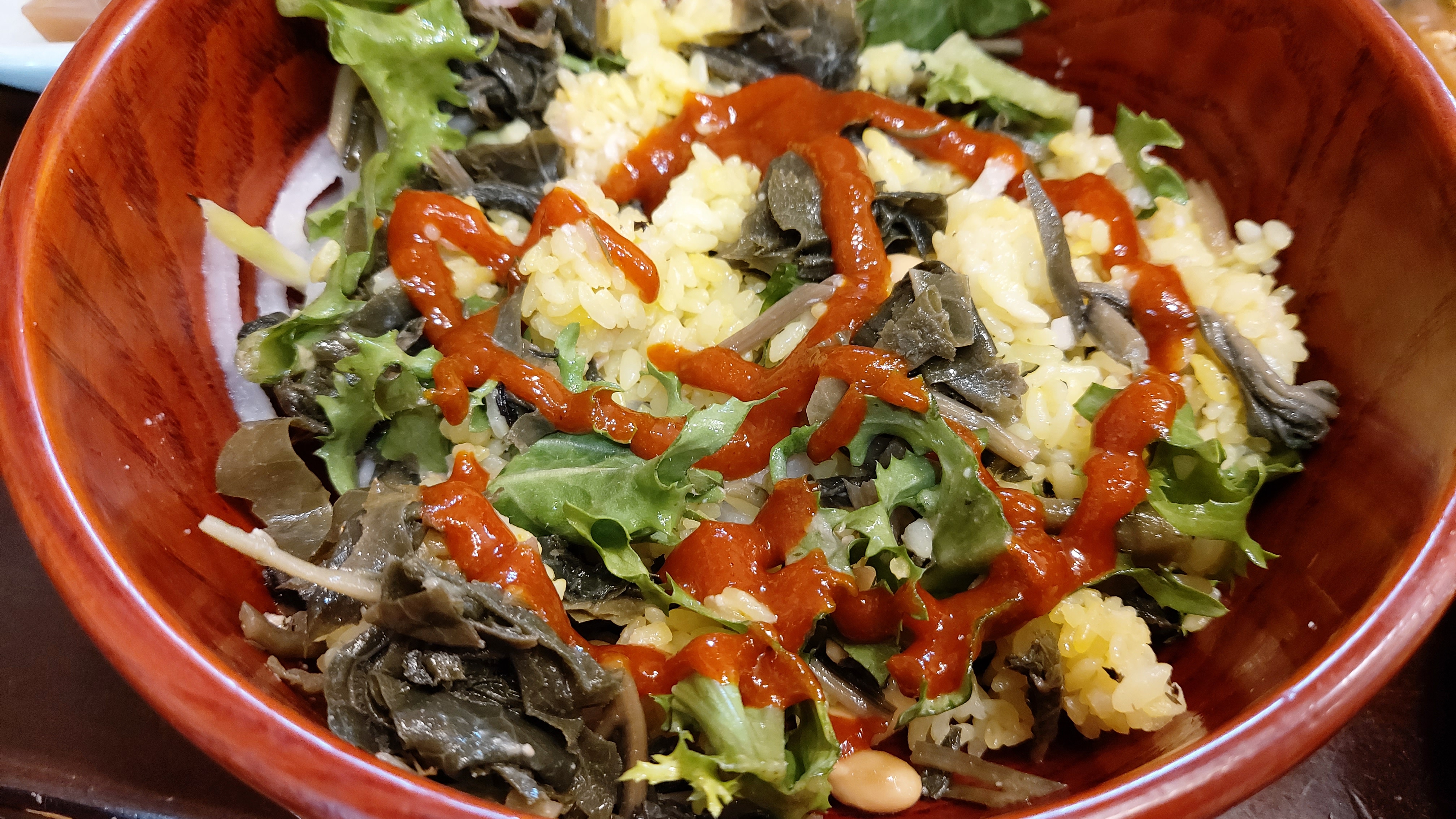 각종 야채에 견과류, 소스 등을 곁들여 나오는데 고소한 참기름 향이 참으로 매력적인 음식이지요.