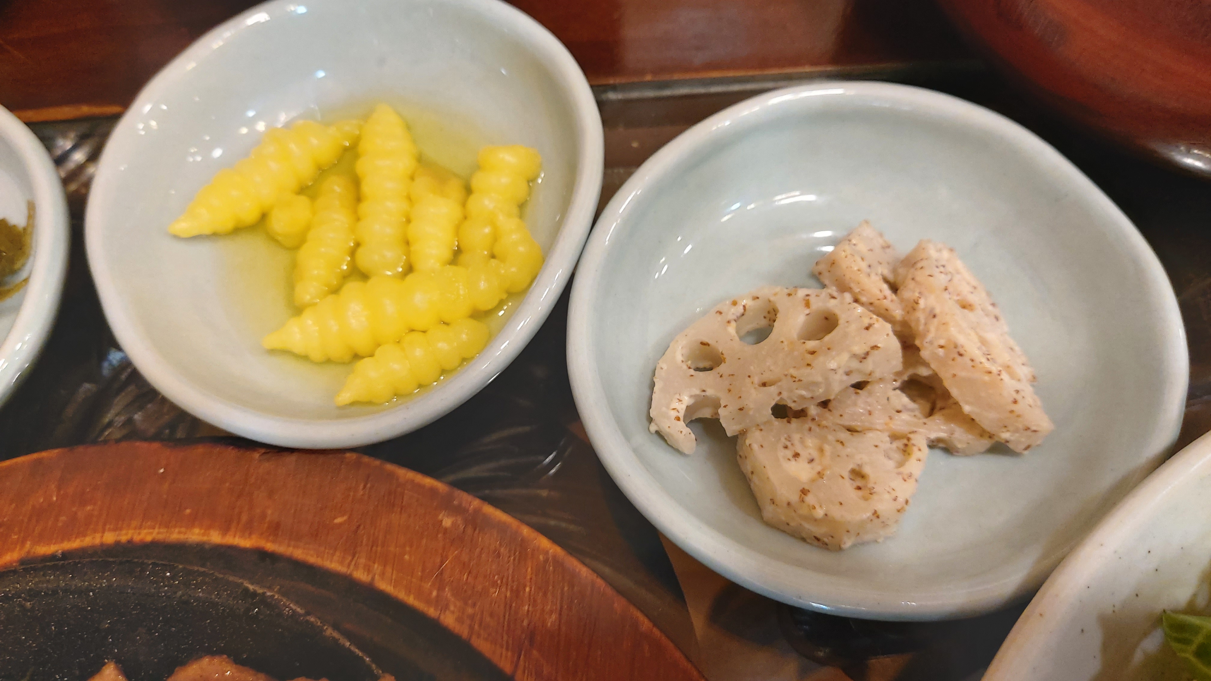 쓴맛 매운맛 단맛이 난다는 삼채장아찌와 여주장아찌, 초석잠 장아찌 등 장아찌류와 우엉찹쌀튀김,