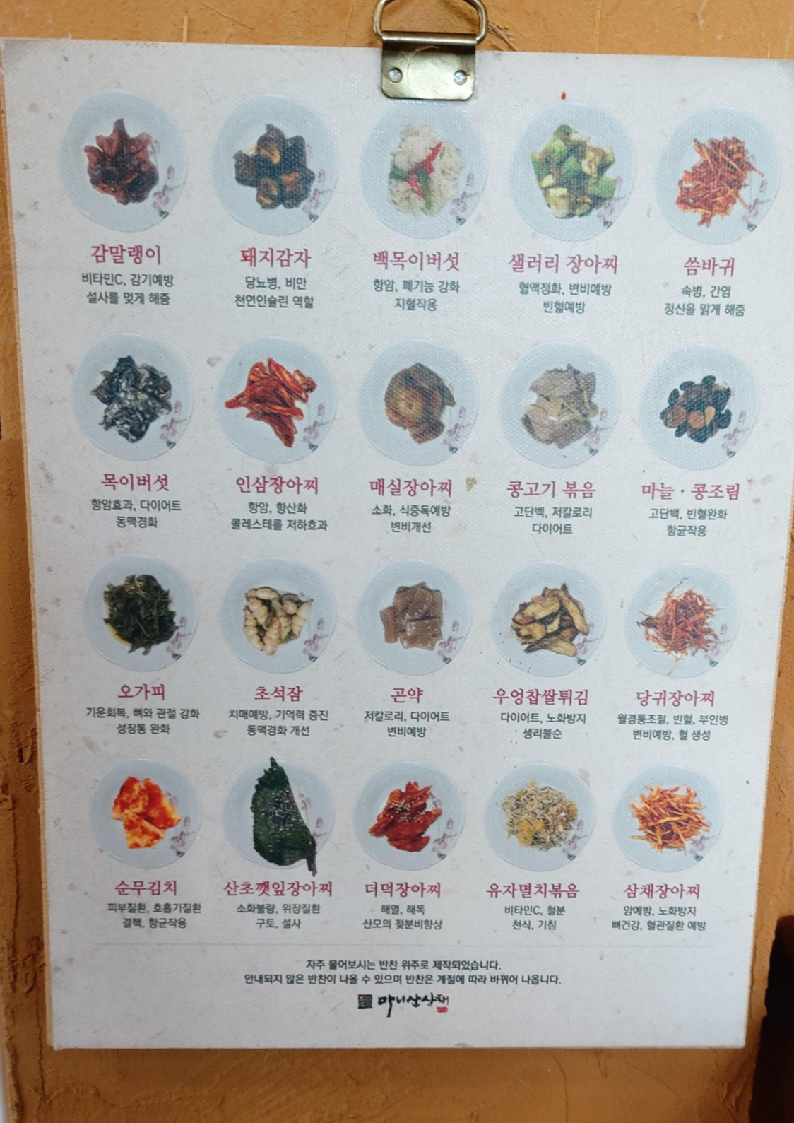 이 집에서 만날 수 있는 약초 반찬들이 사진과 함께 소개되어 있습니다.