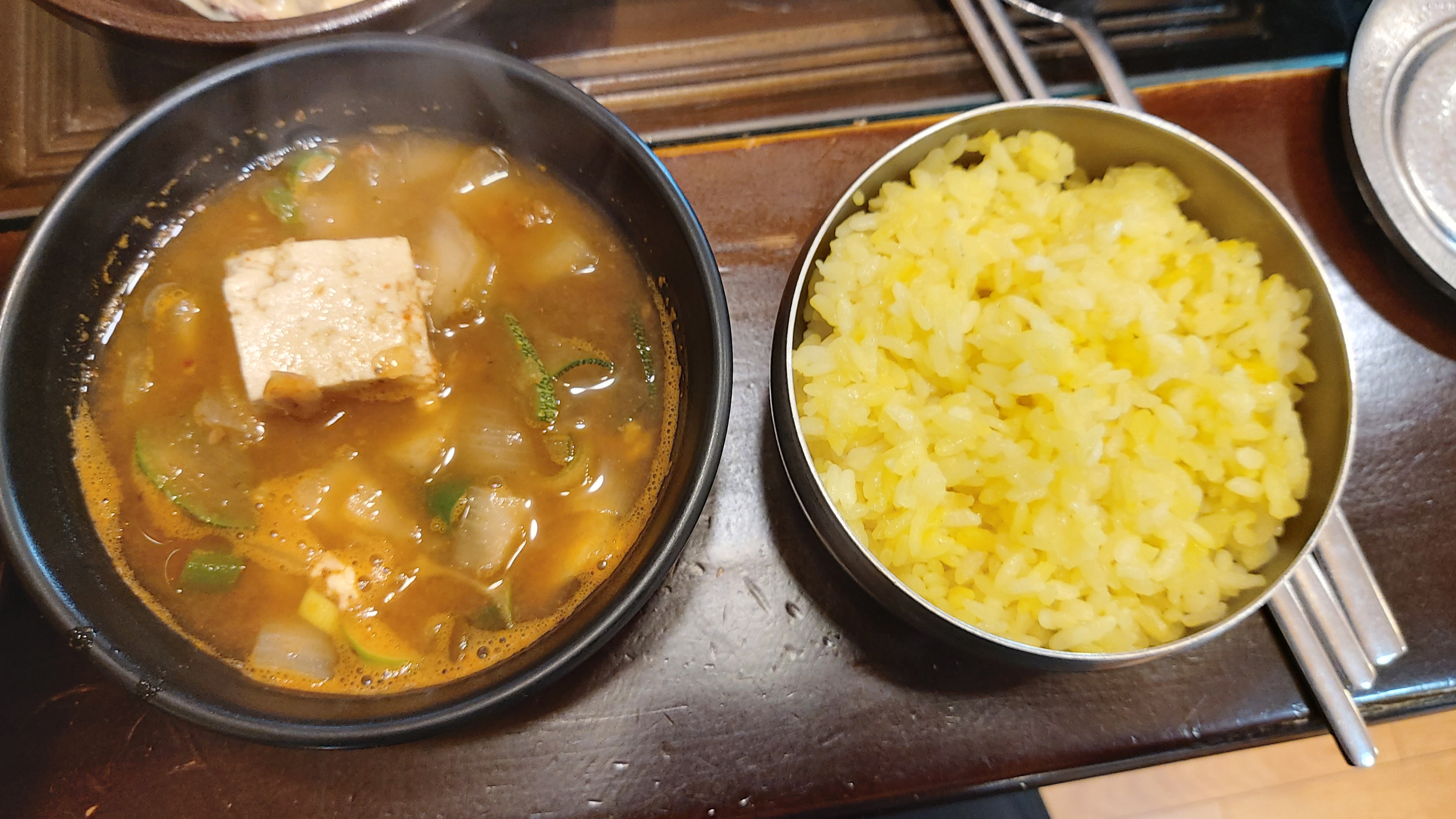 밥은 강황밥으로 나오고 3년 묵은 된장으로 끓인다는 된장찌개도 나옵니다.
