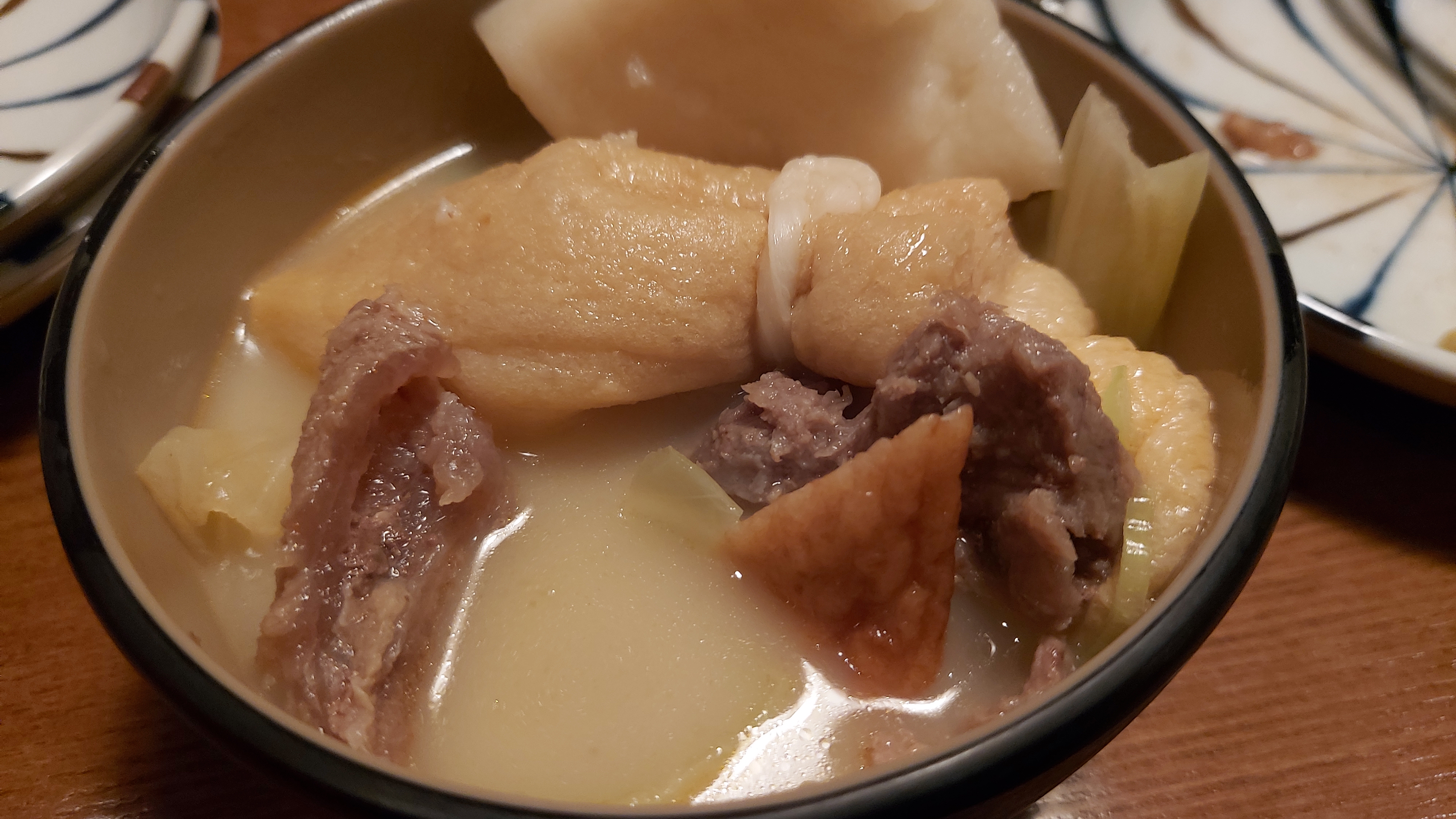 살짝 칼칼하면서도 부드럽고 맛있는 국물에 각종 오뎅이나 스지도 넉넉하게 들어 있습니다.