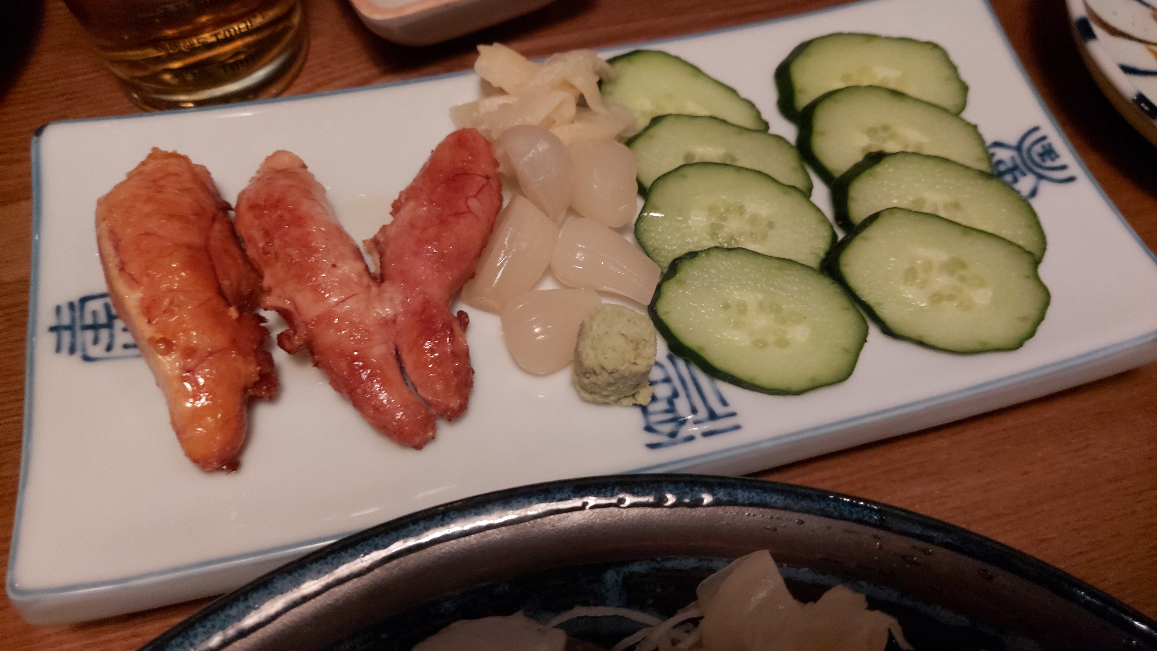 명란구이에 오이와 락교, 초생강, 고추냉이를 곁들여 내 왔는데 원탑까지는 그렇고 괜찮습니다 ㅎㅎㅎ