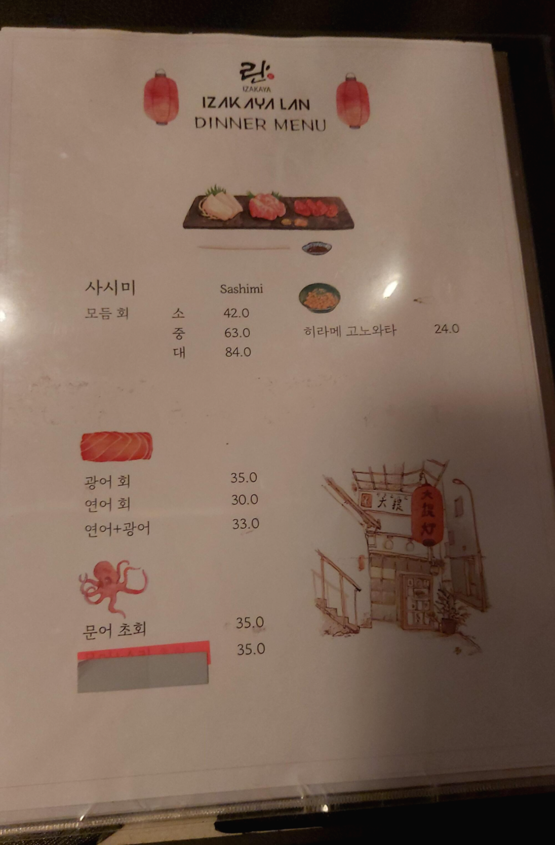 보통은 이자카야 란이라고 부를 텐데 이 집은 특이하게 란 이자카야라고 하는군요.