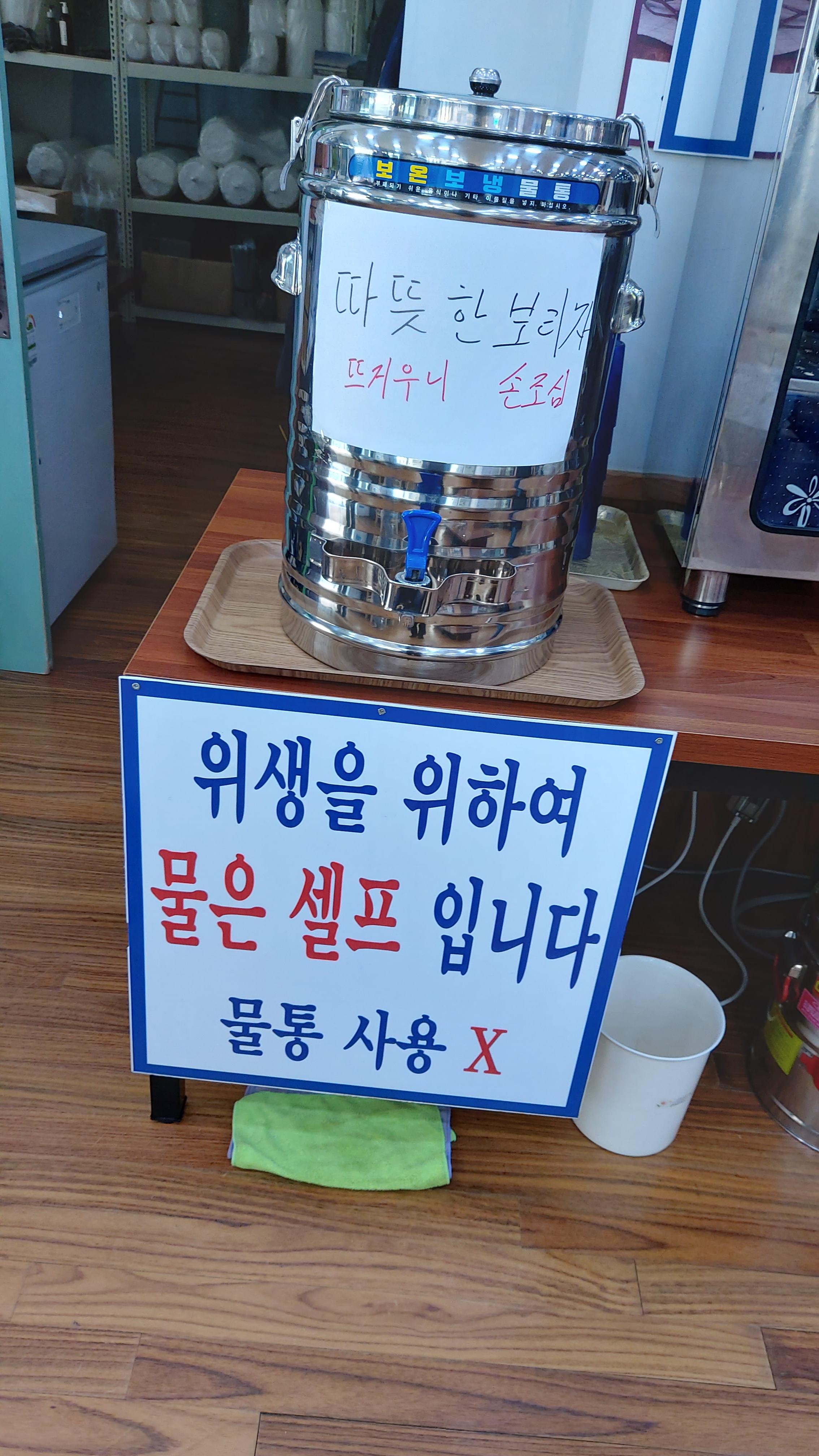 물은 따뜻한 보리차가 제공되는데 셀프입니다.