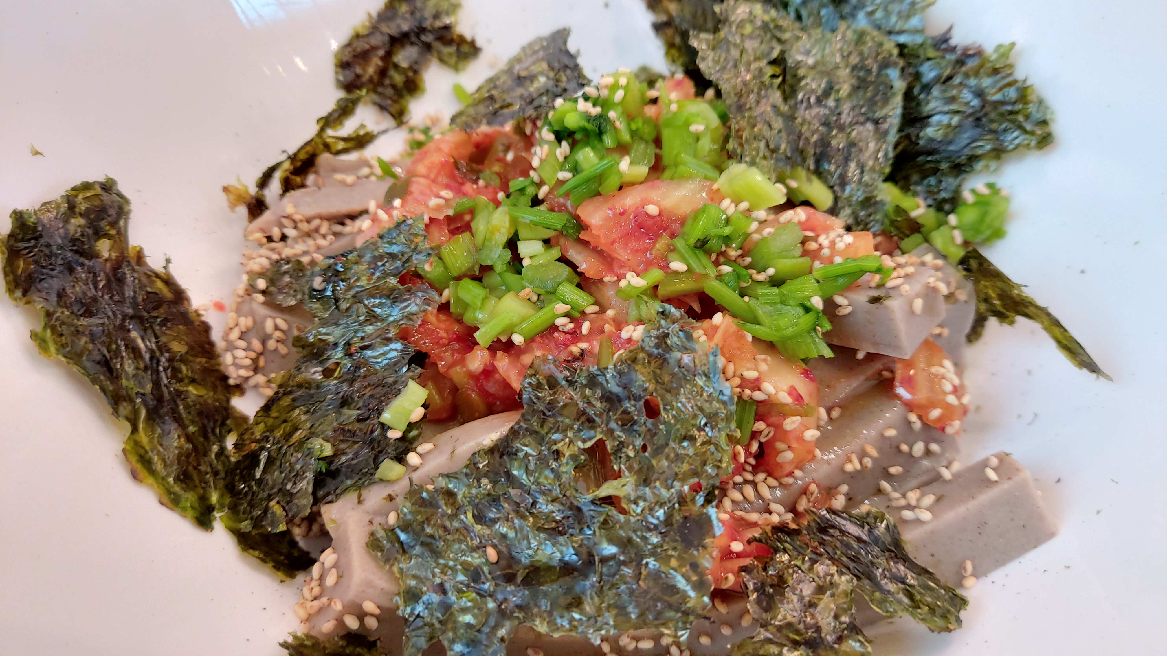 부드럽고 살짝은 푸석한 메밀묵으로 양념에 김치가 들어 있는데 상당히 잘 만드는 묵이로군요.