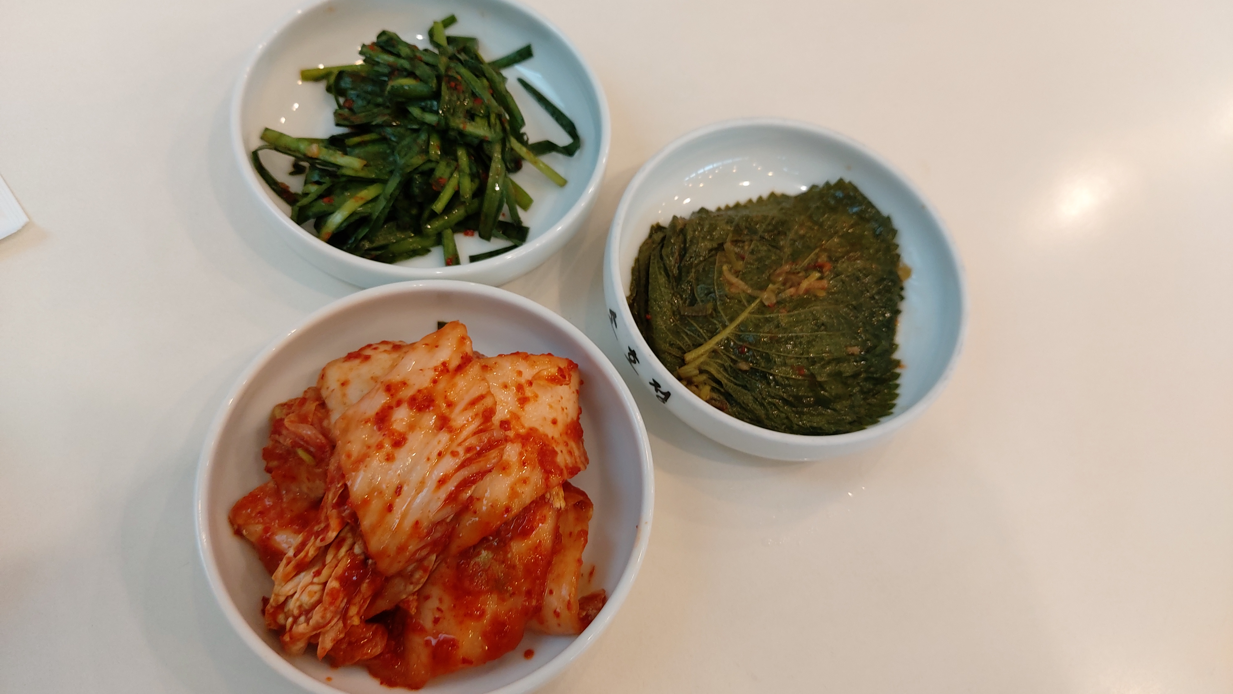 밑반찬은 깻잎절임, 부추무침, 김치가 나오는데 칼국수집 겉절이 김치가 아니고 숙성김치입니다.
