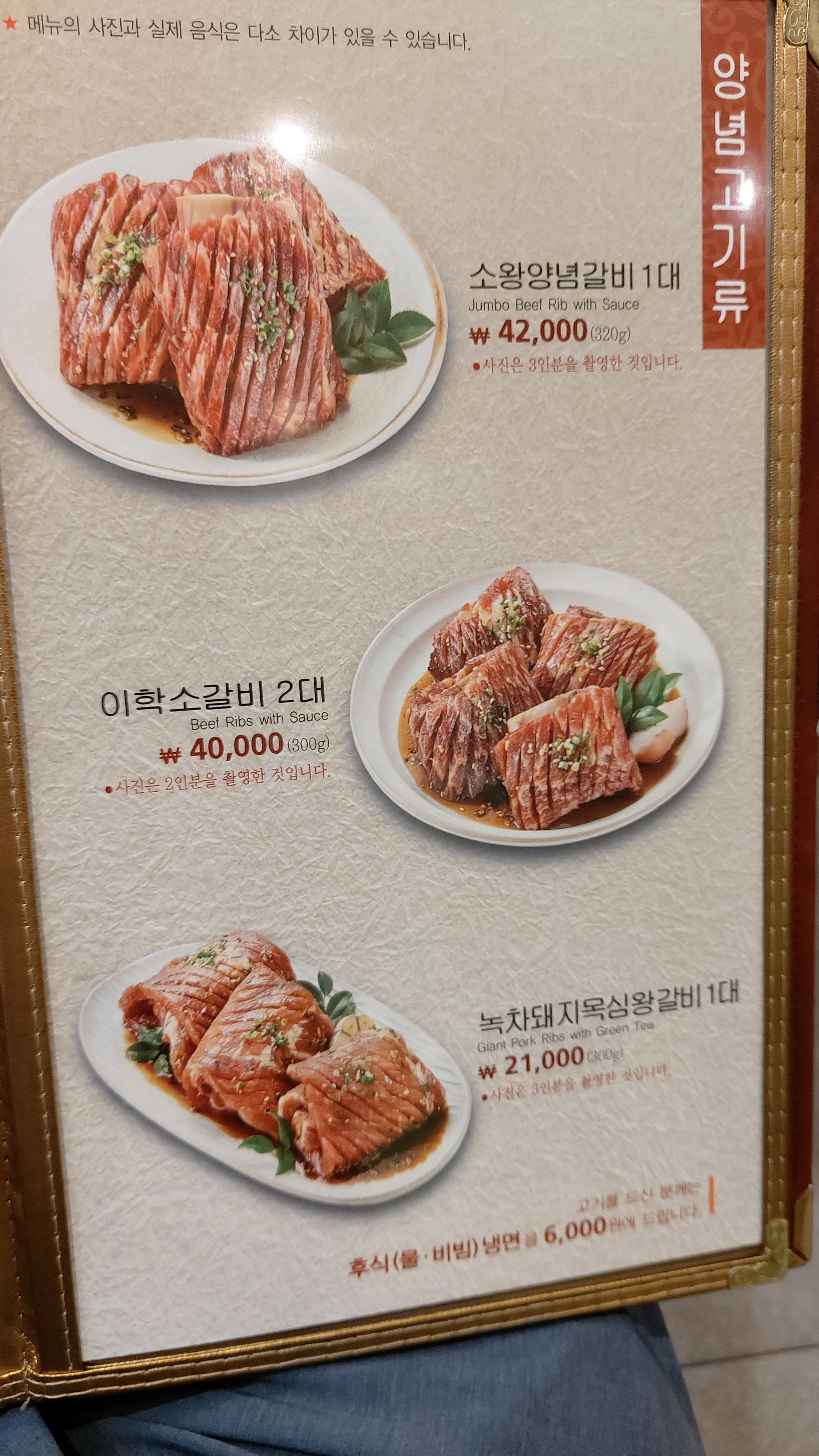 1인분이 320g으로 수원식 왕갈비 같은 커다란 왕갈비 한 대입니다.