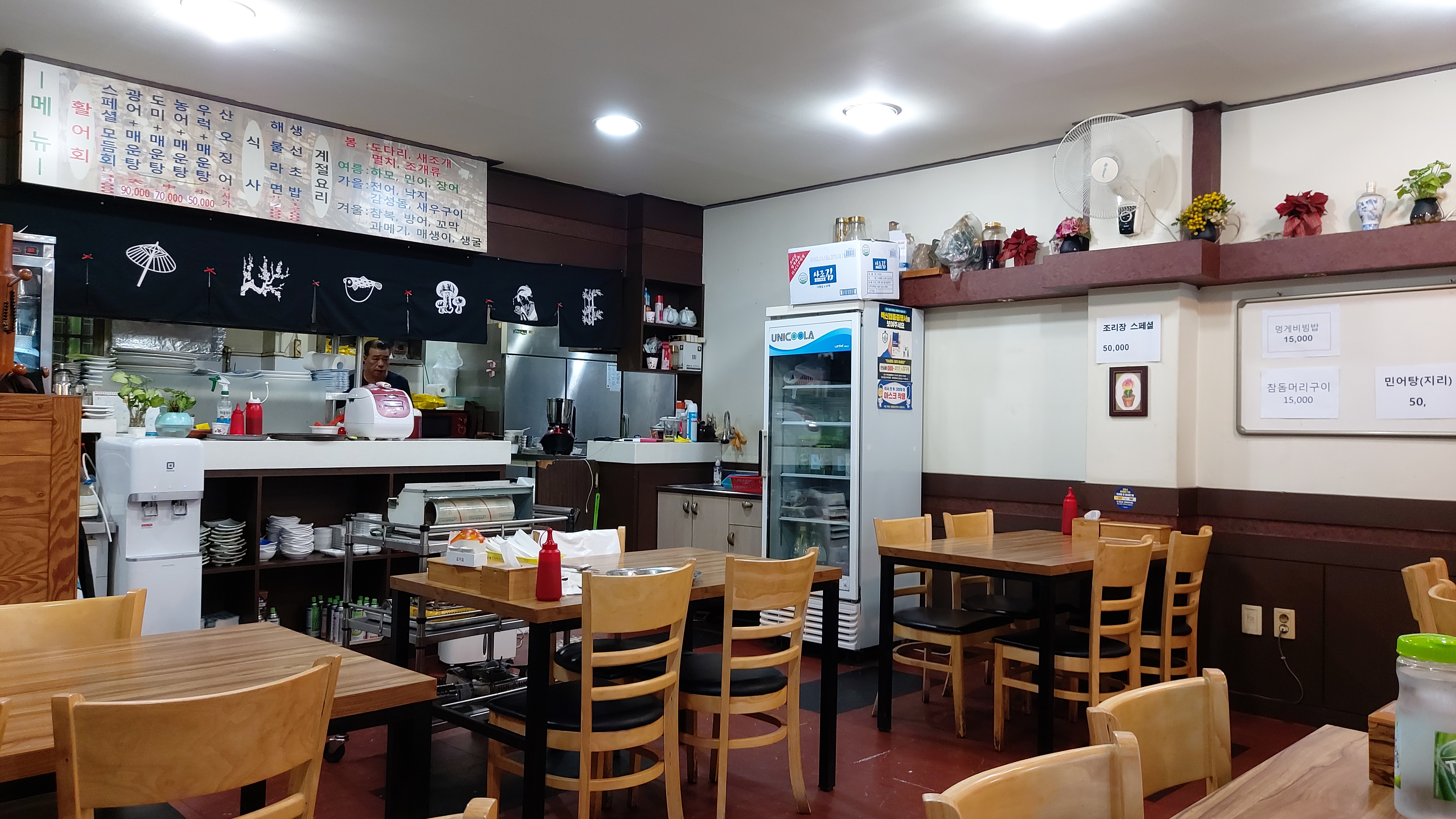 계절에 따라 민어, 방어 등 계절 특선도 있고 점심에는 20,000원 15,000원짜리 회정식도 있습니다.