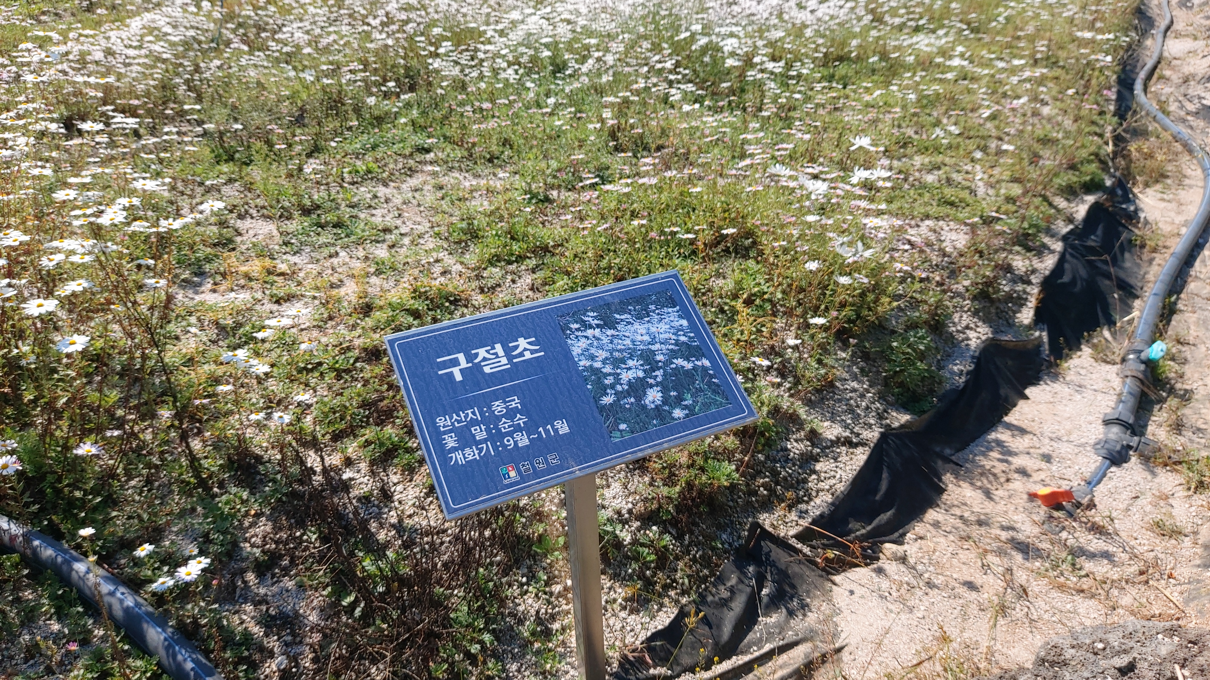 고석정 꽃밭에는 구절초, 버베나, 촛불맨드라미, 천일홍, 메밀꽃 등 18종의 꽃이 식재되어 있다고 하더군요.