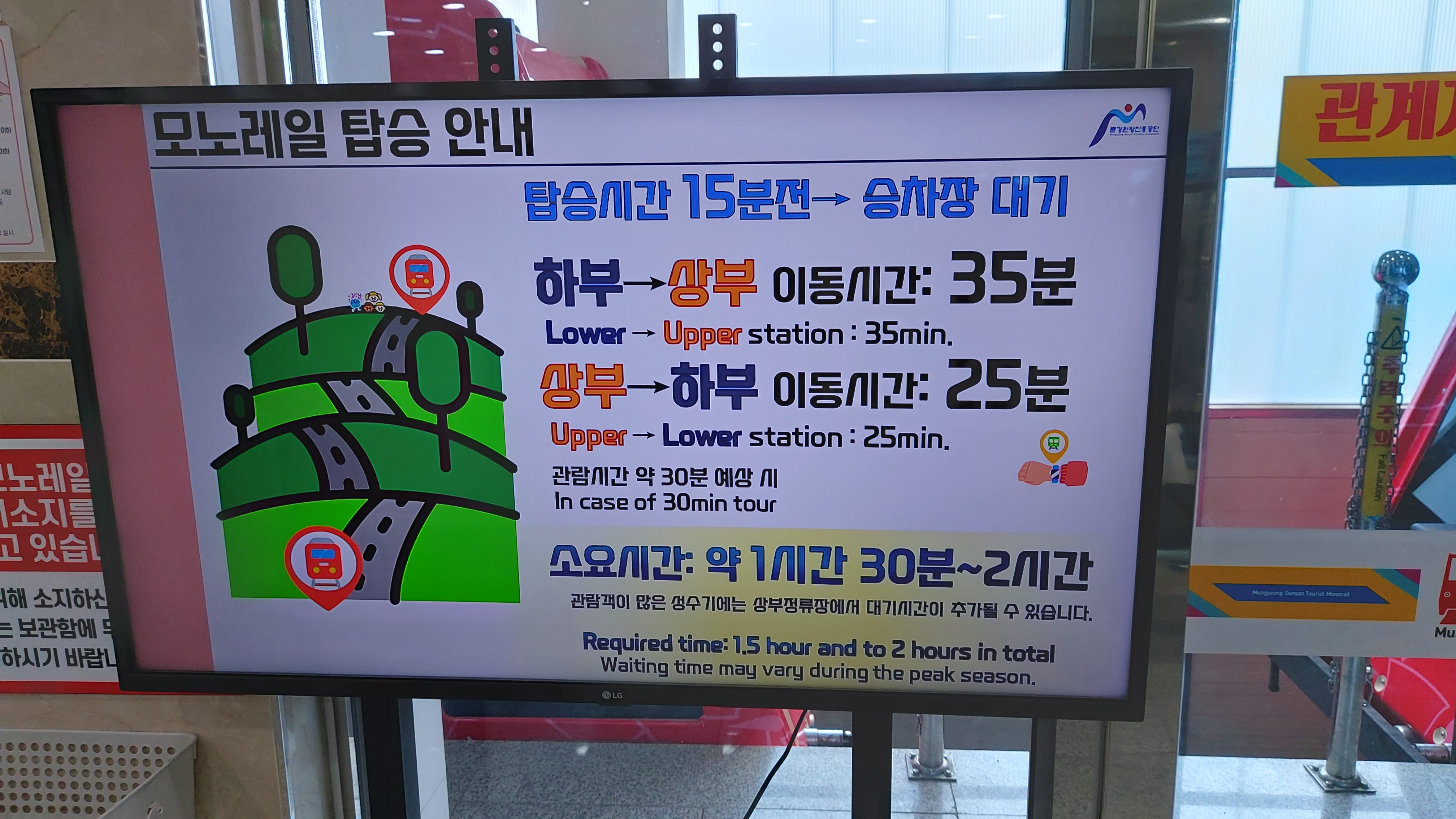 하행 35분 등 총 1시간 정도 걸리는데 상부 전망대를 돌아보고 대기 시간 등을 고려하면