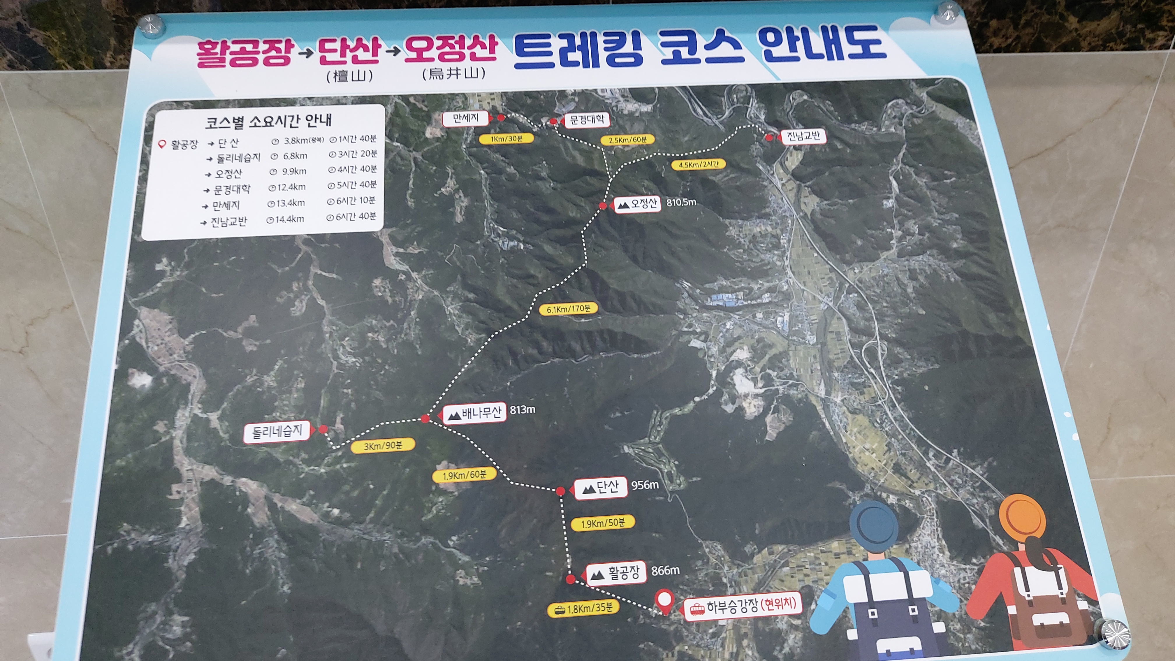 하부 승강장에서부터 활공장, 단산, 오정산을 잇는 트레킹 코스 안내도입니다.