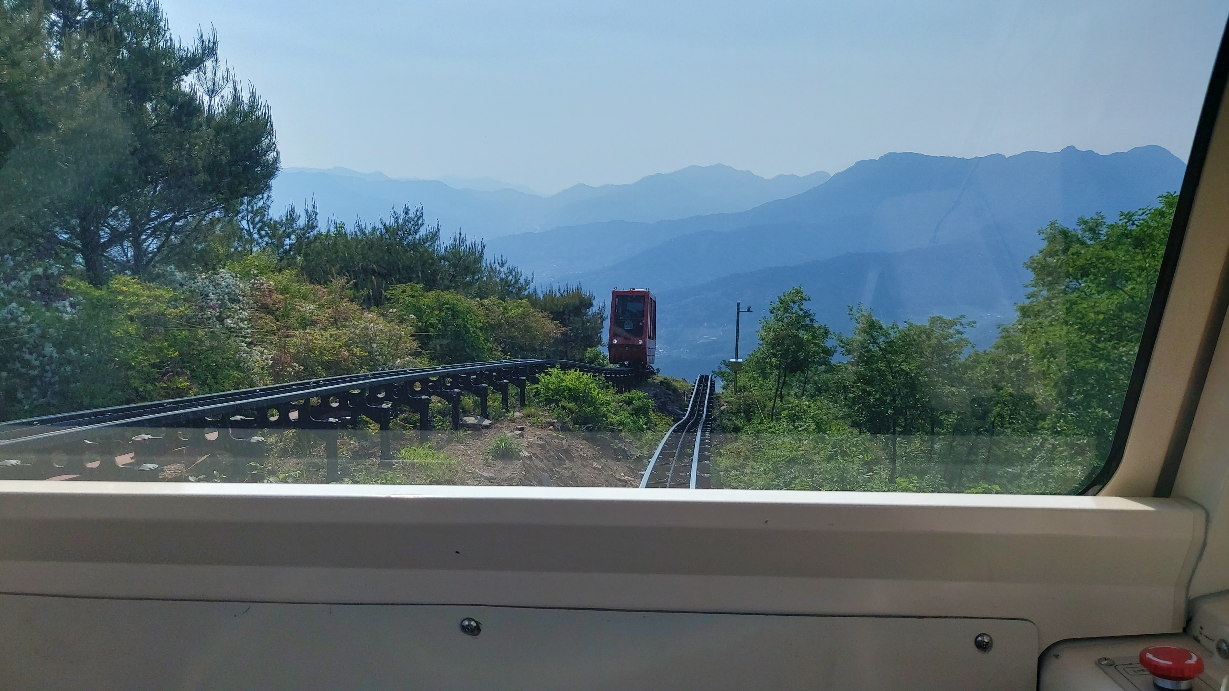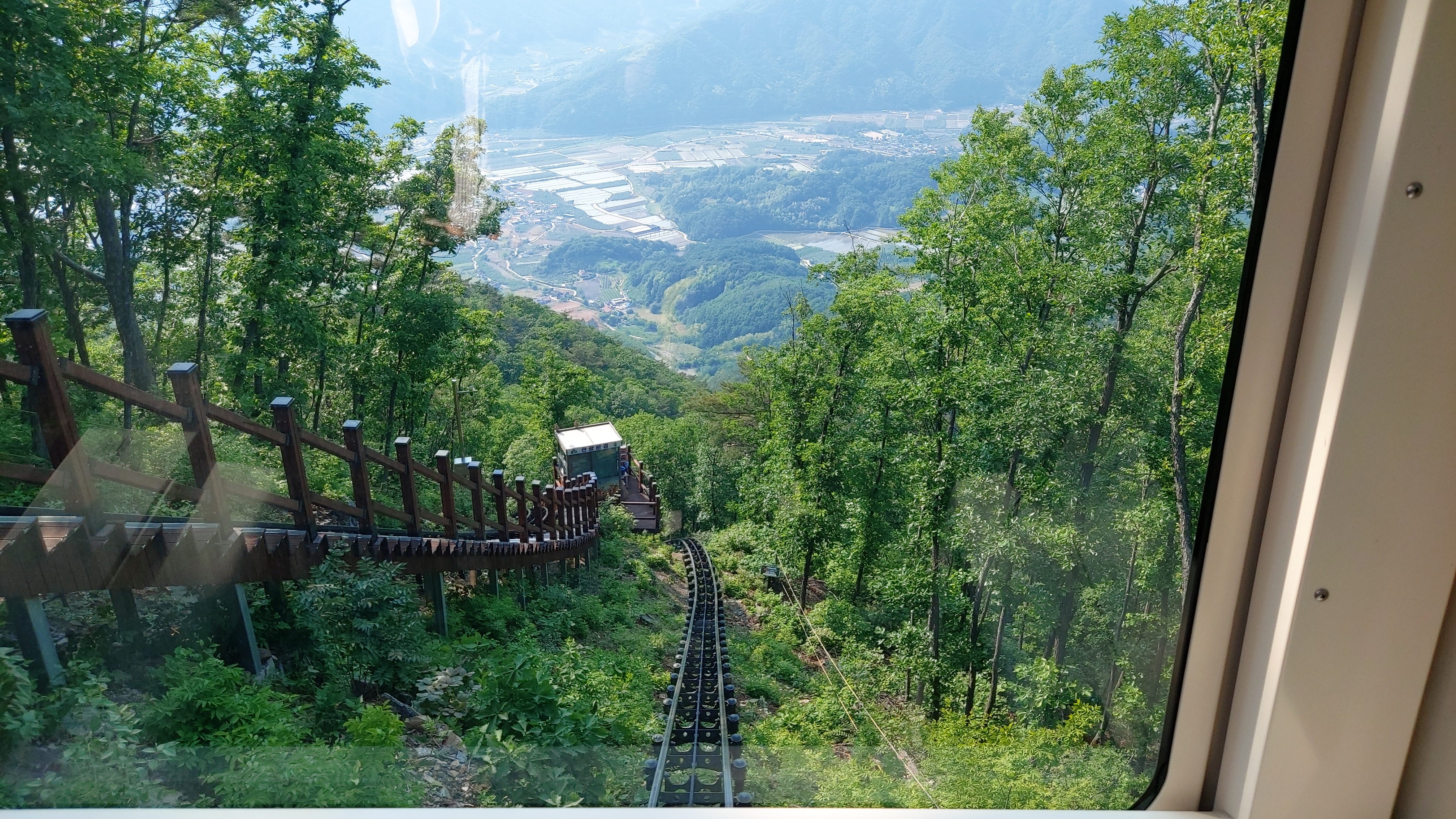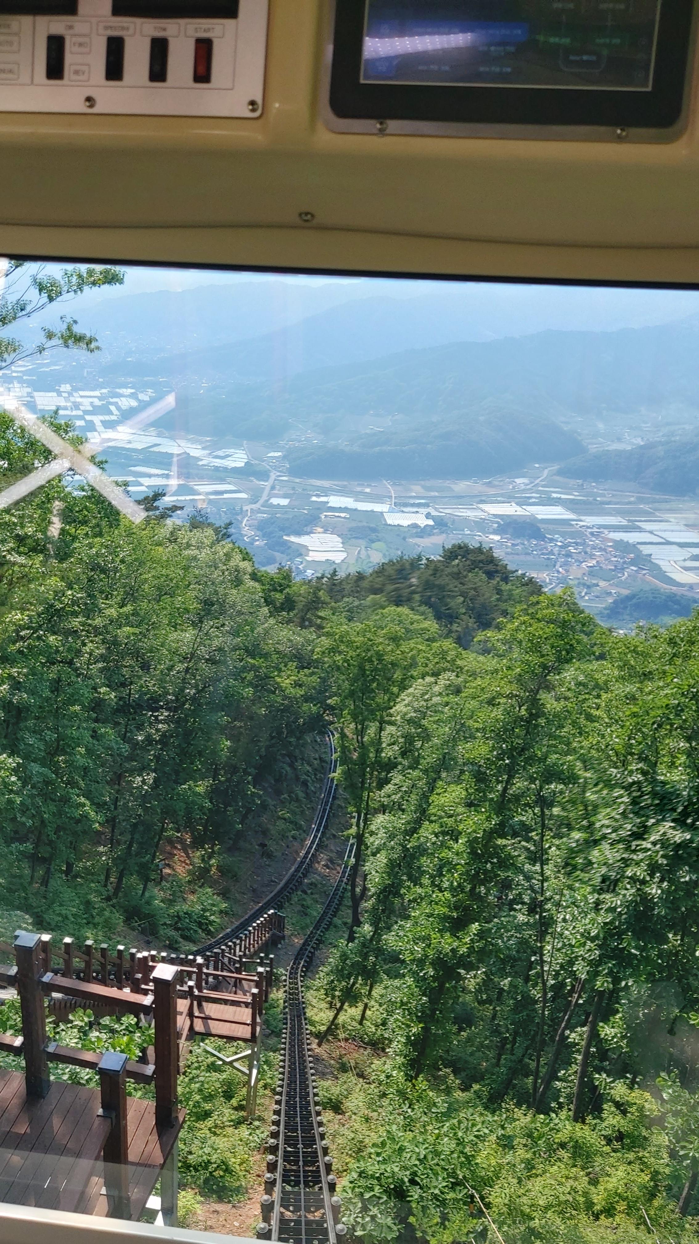 문경 단산관광모노레일의 42도의 경사각은 체험 느낌으로는 거의 직각에 가까운 경사로