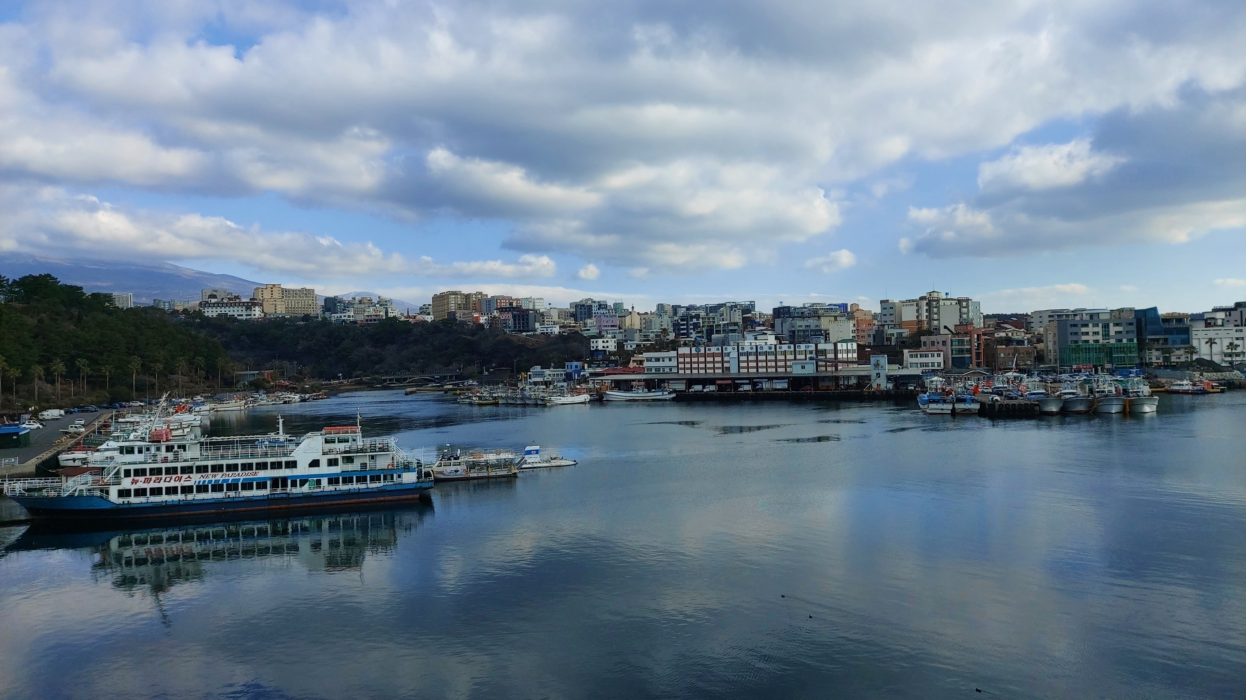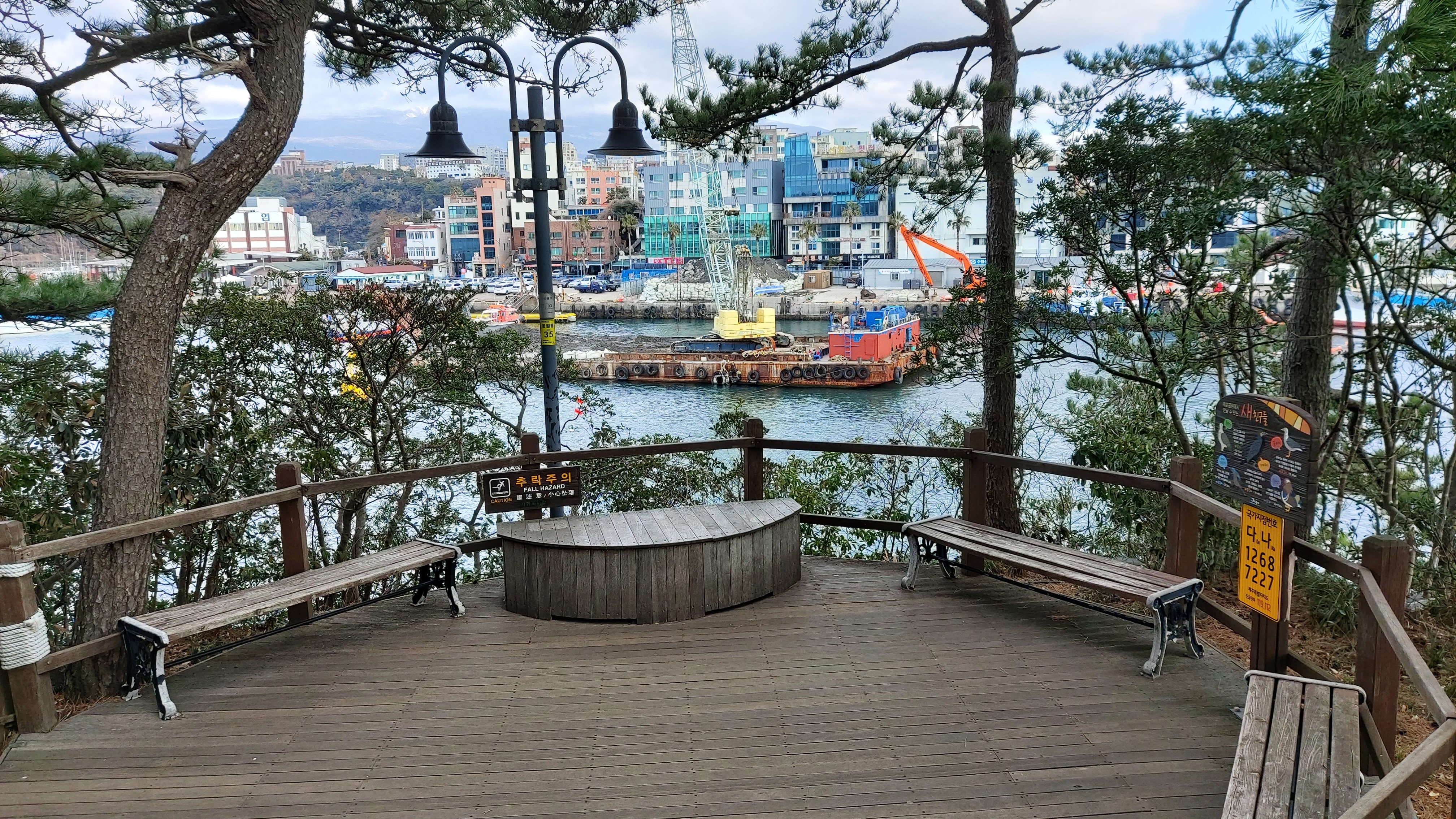 서귀포항이 바라 보이는 의자에 앉아 잠시 쉬어 봅니다.