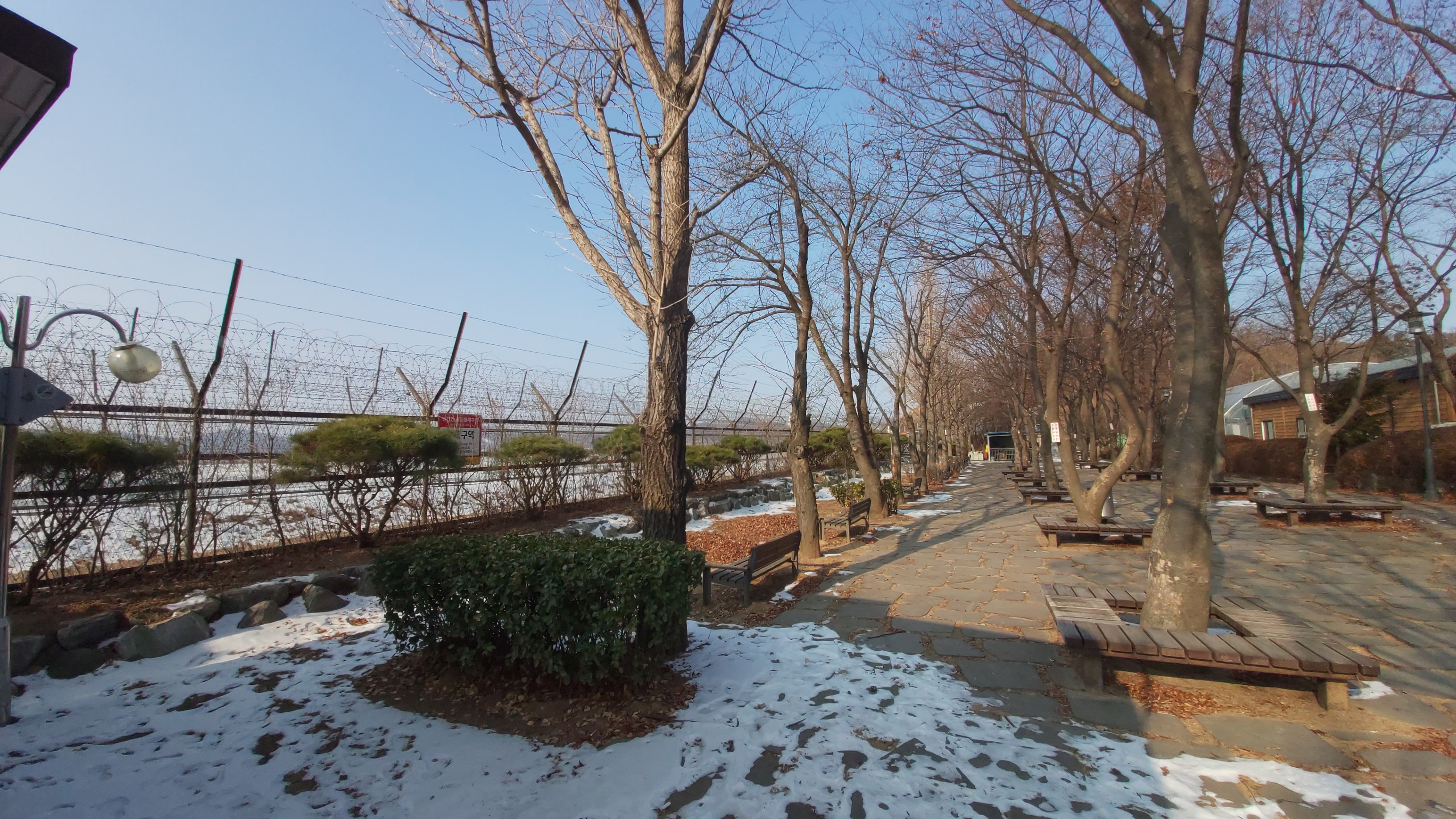 특히 임진강변으로 만들어 놓은 방갈로 같은 방들이 눈에 띄는데 겨울이라 사용은 안 하나 봅니다.