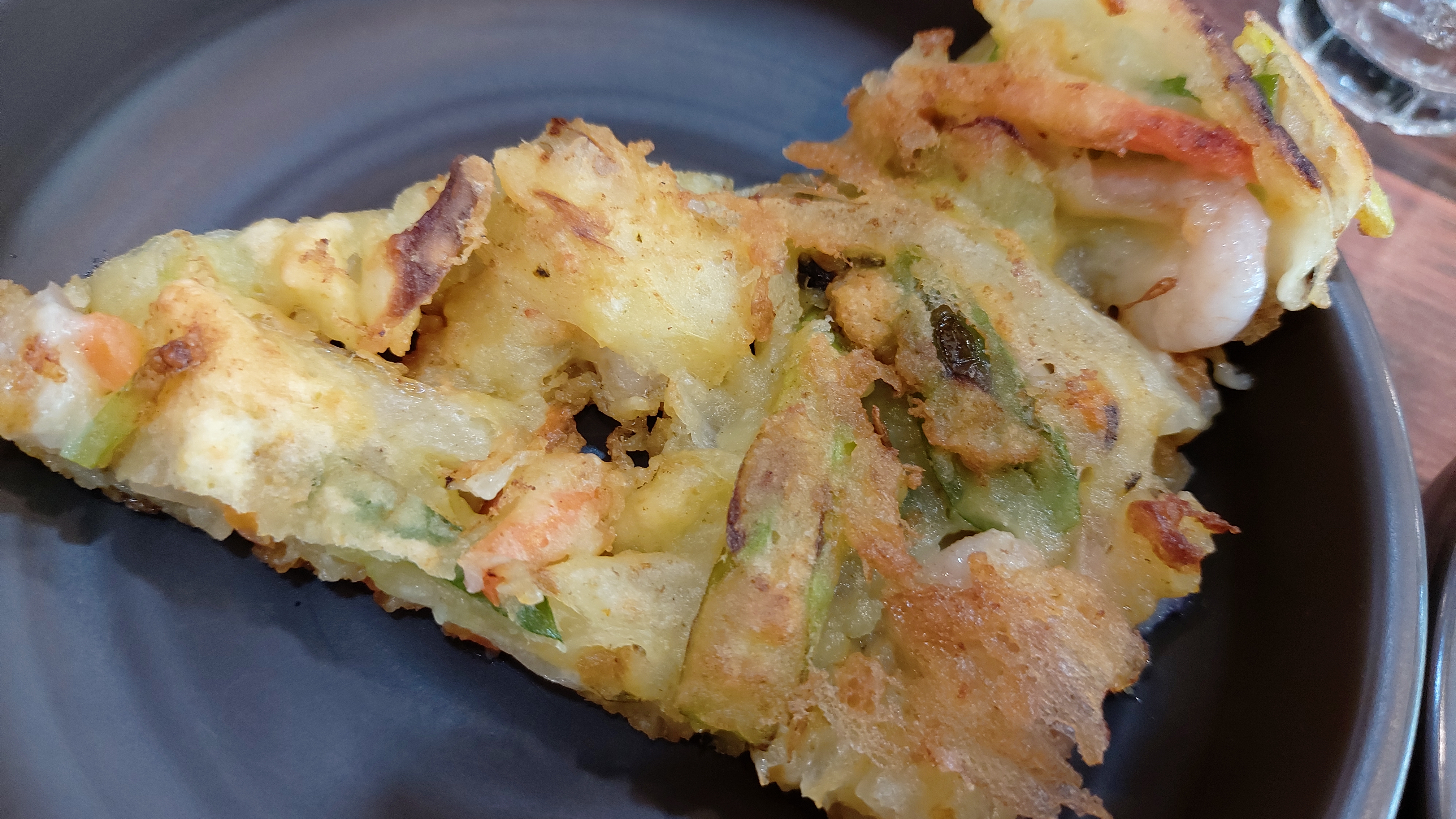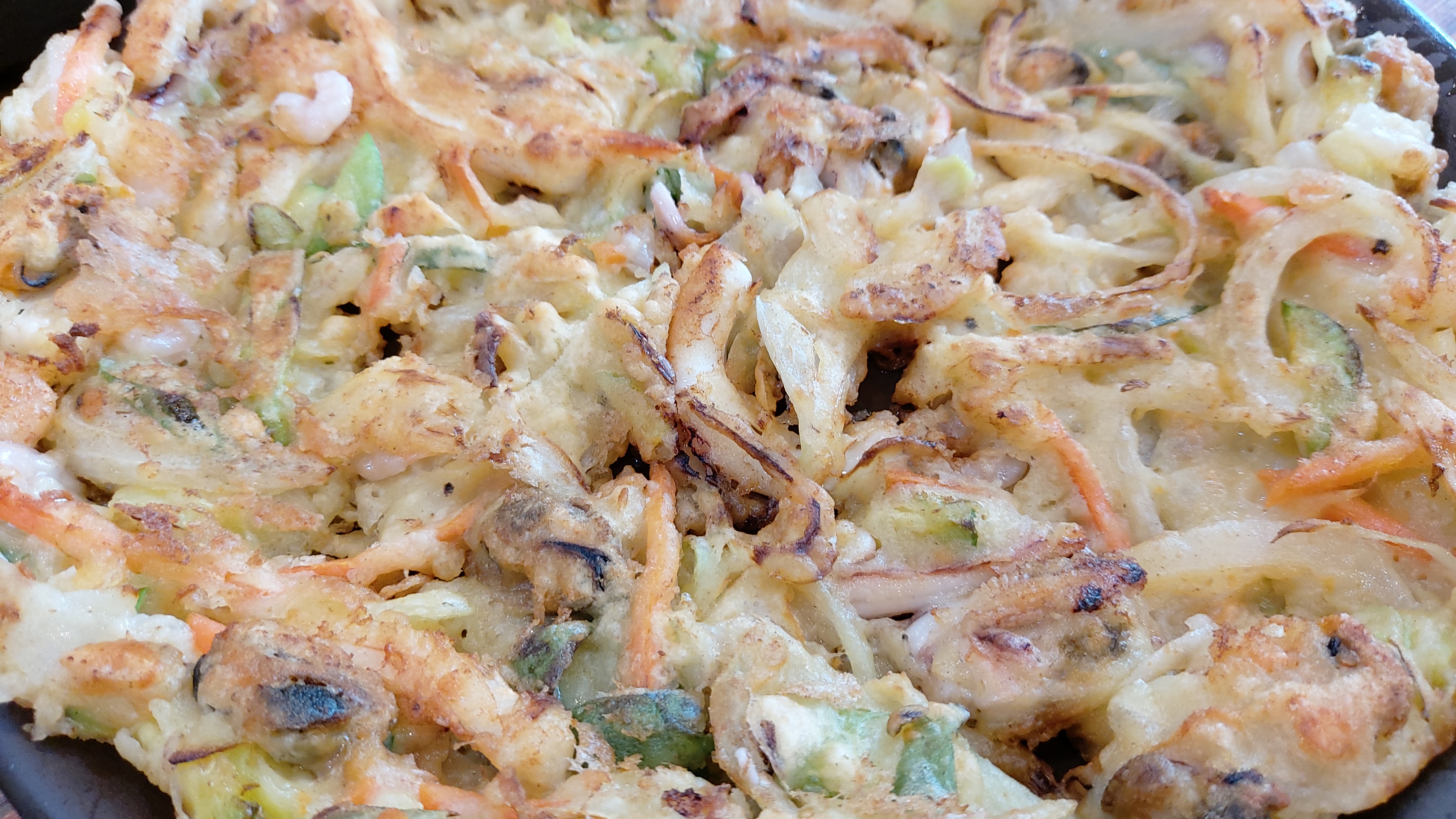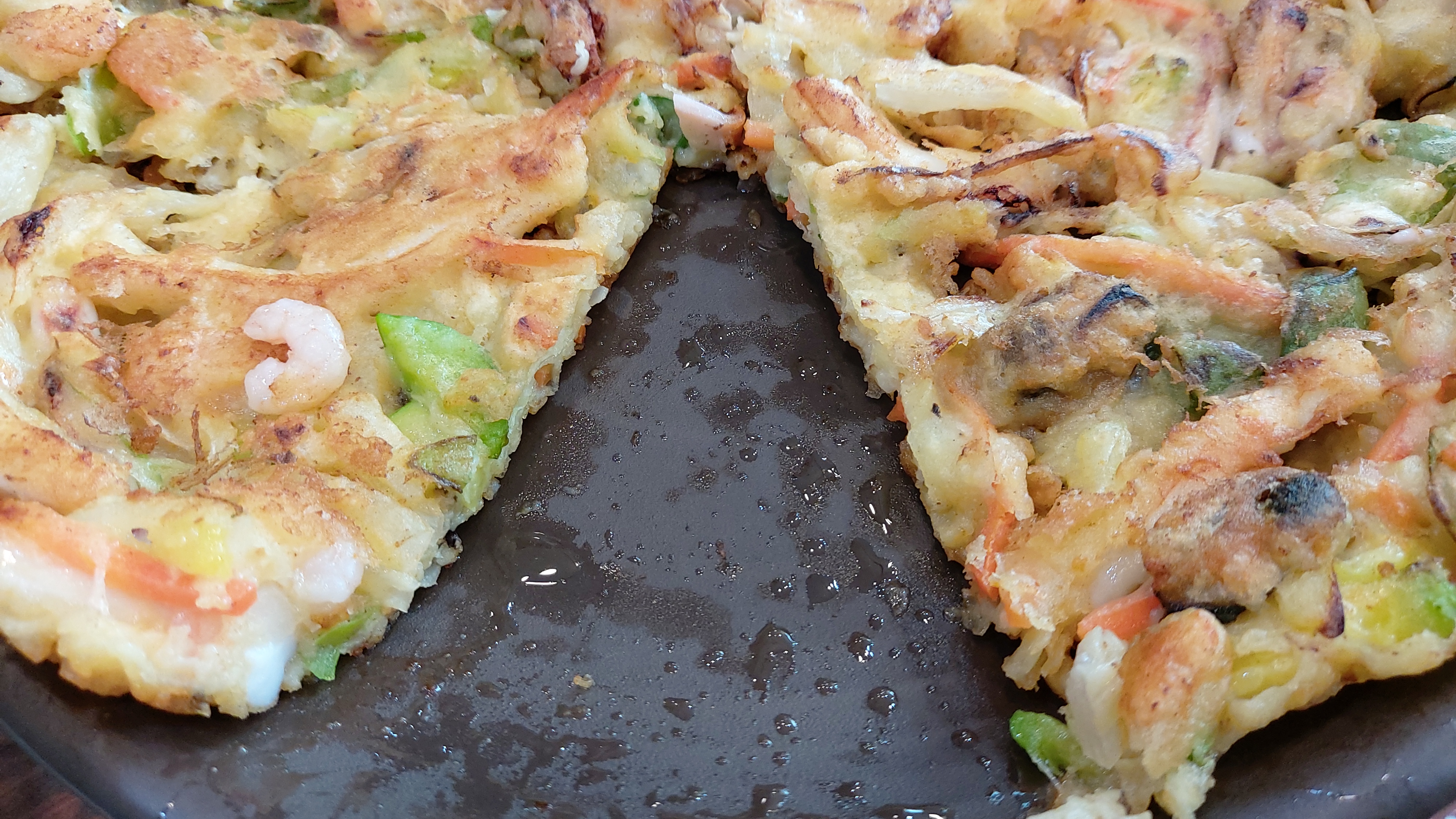 오징어, 새우, 야채 등으로 두툼하게 부쳐 왔는데 양도 많고 바삭하게 잘 부쳐 왔더군요.