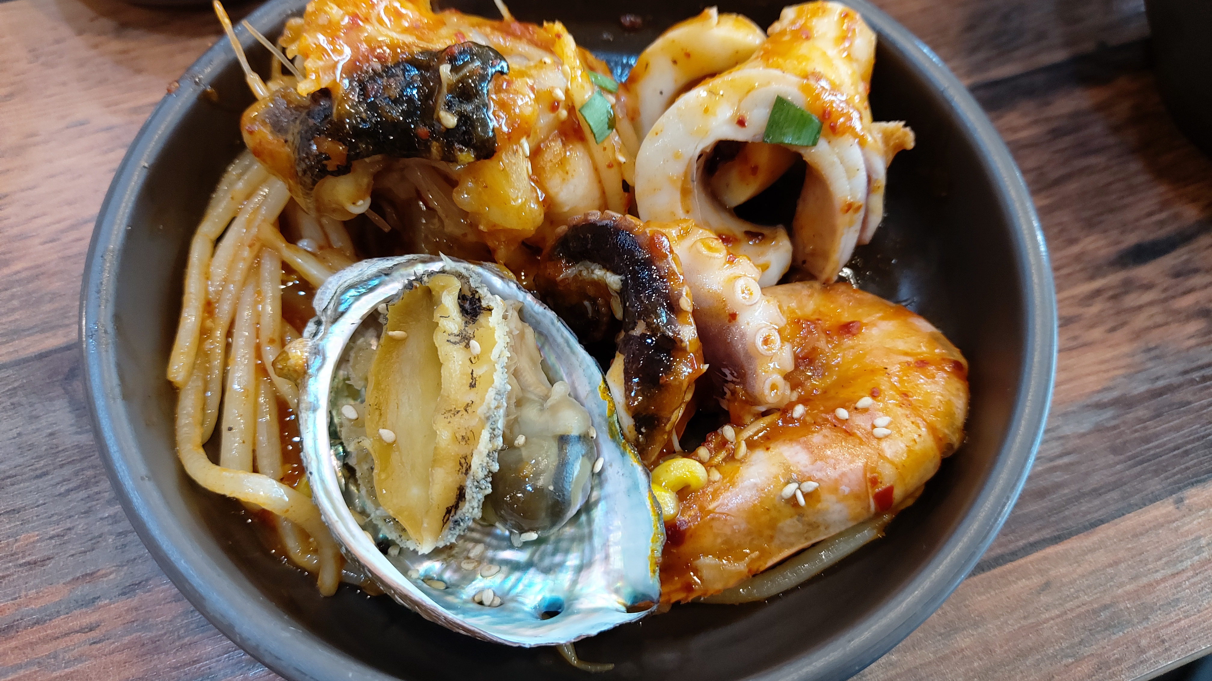 전복, 낙지, 오징어, 꽃게, 아귀, 새우, 미더덕, 알과 고니 등 다양하면서도 푸짐합니다.