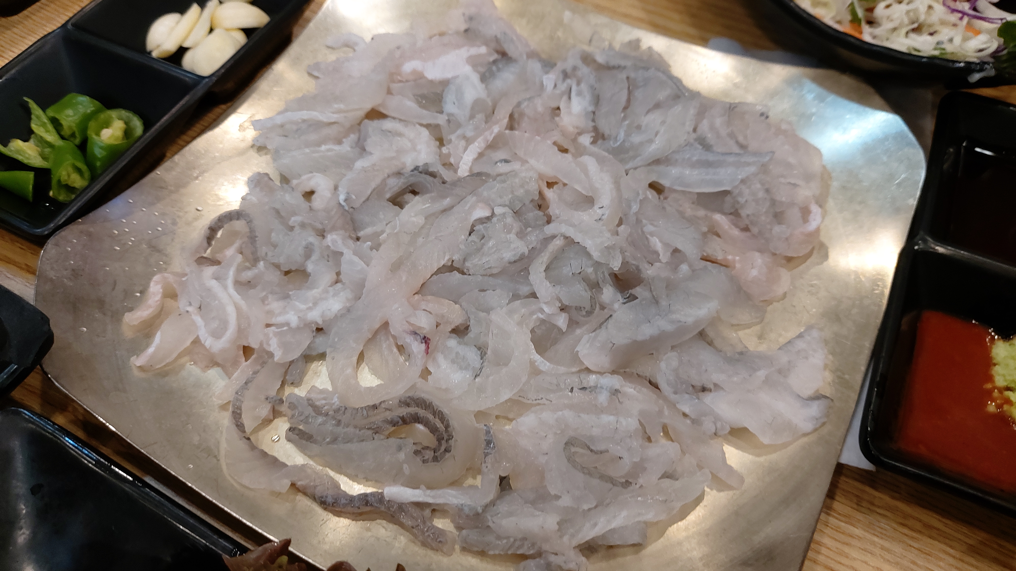 뼈가 씹히는 고소한 맛으로 먹는다는데 노병은 그냥 숙성회가 더 좋습니다 ㅎㅎㅎ