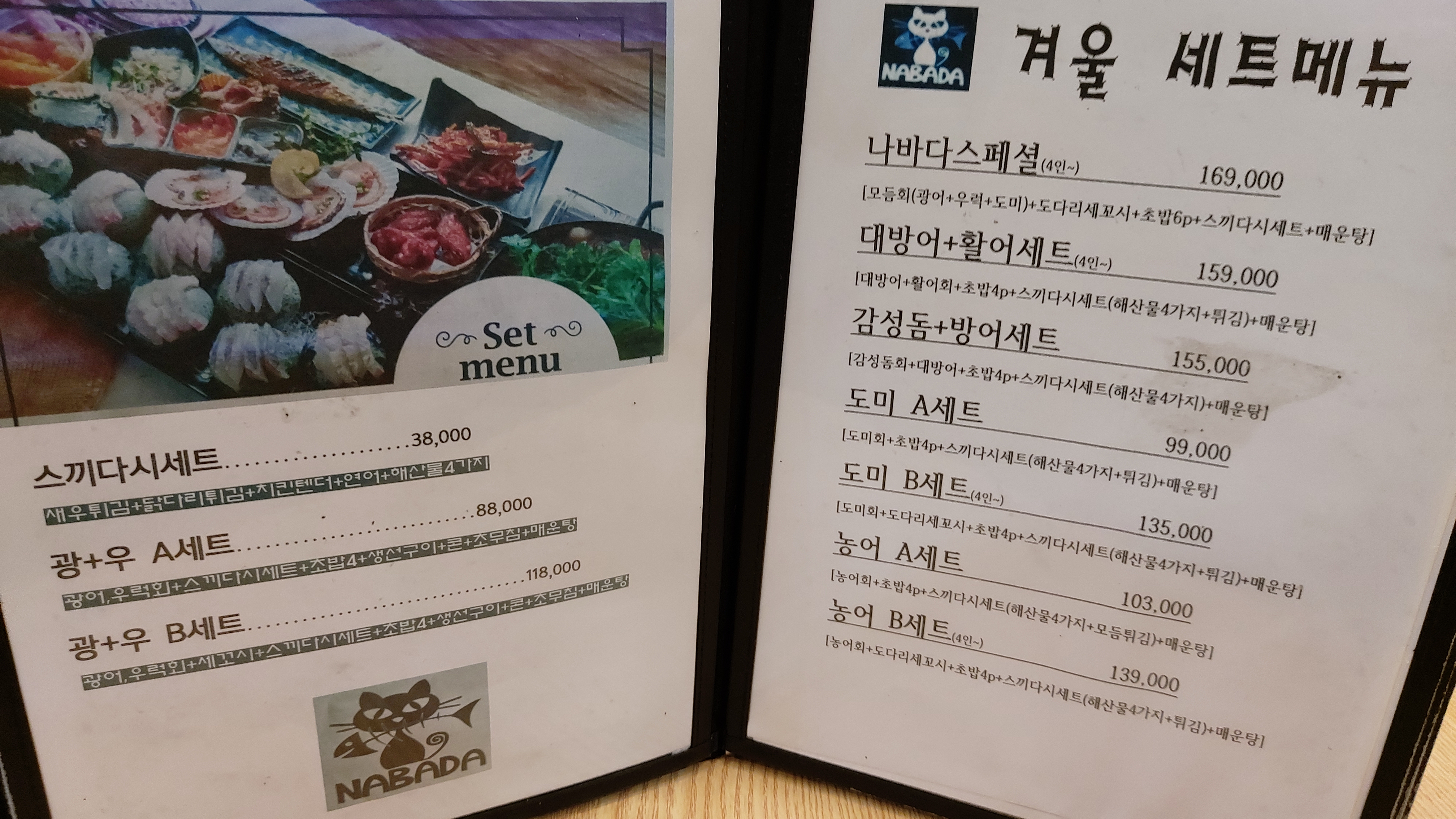 나바다의 메뉴판입니다.