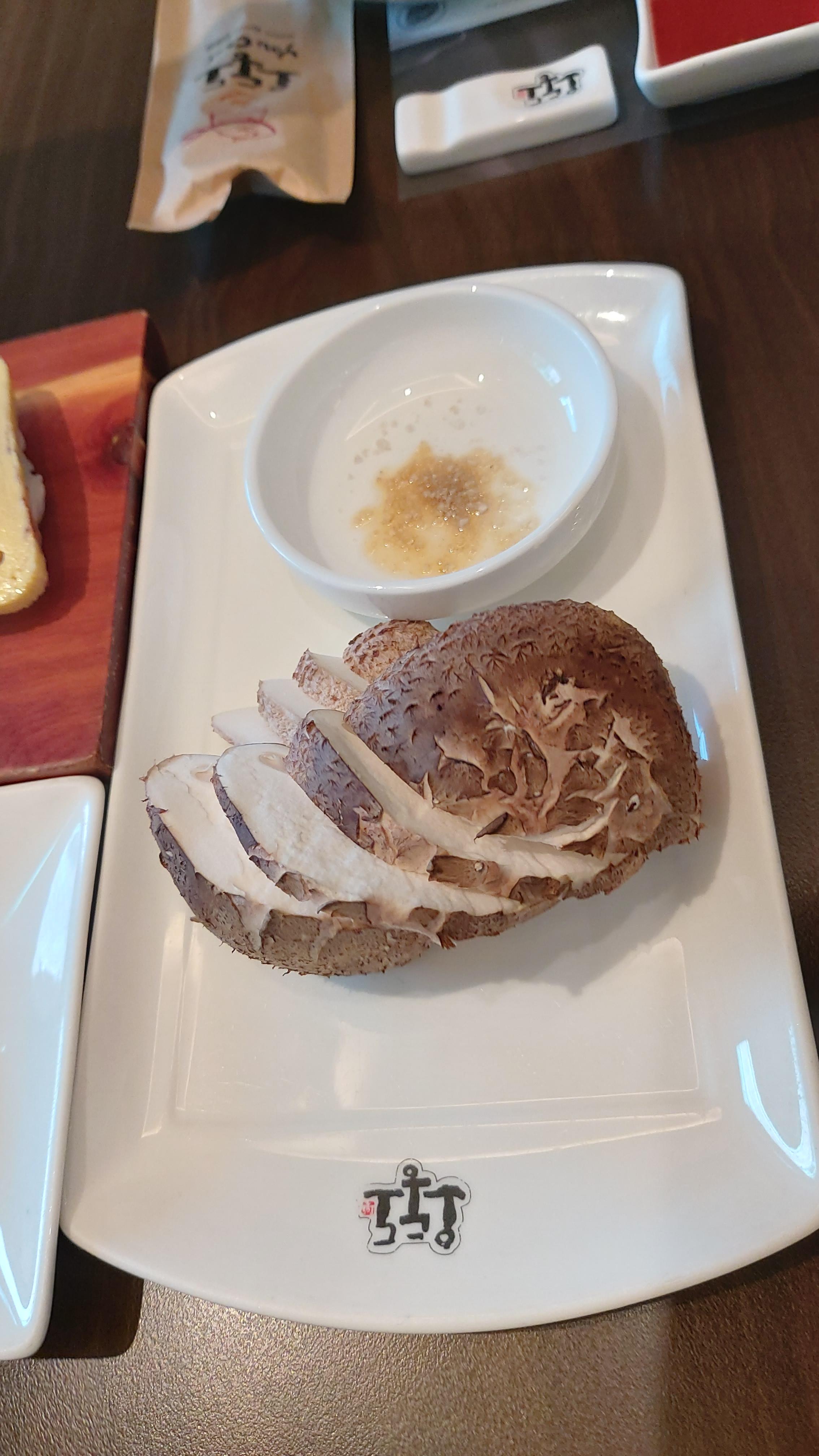 기름소금을 찍어 먹으니 송이버섯 느낌이 나기는 하더군요.