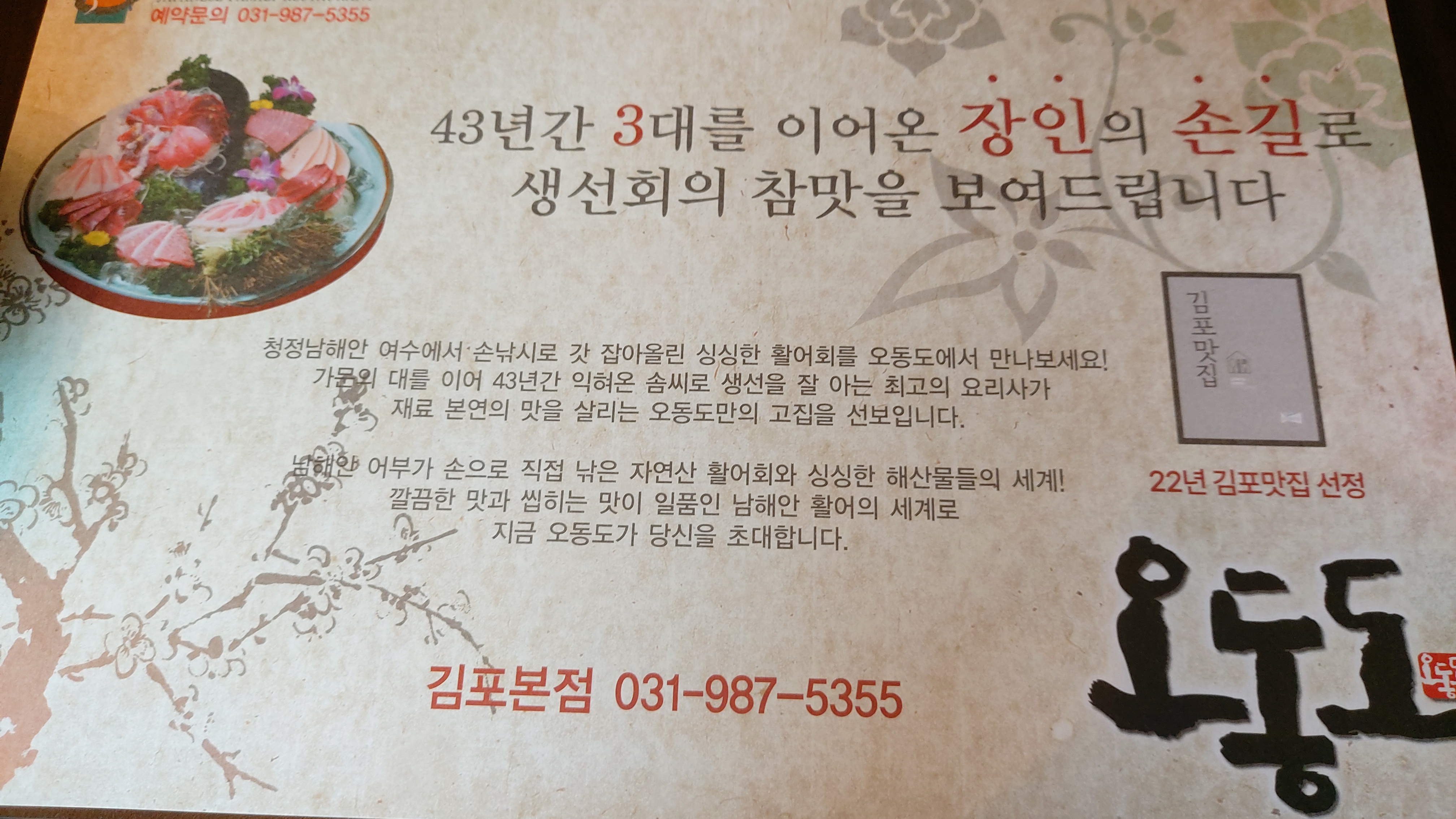 김포 정통 일식 전문점 김포 오동도