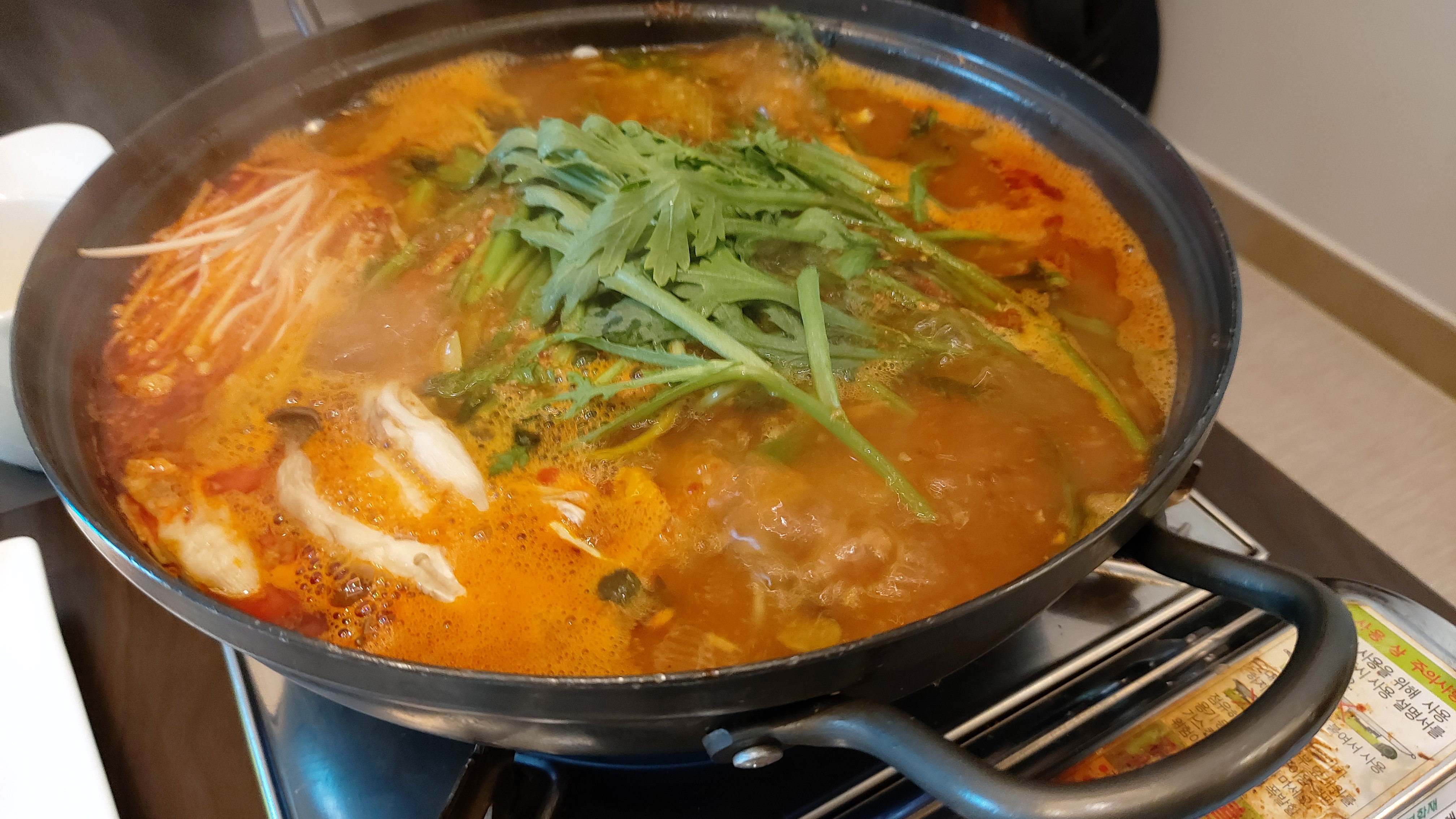 밥은 즉석밥으로 지어다 주고 밥을 푼 후에 눌은밥을 만들어 줍니다.