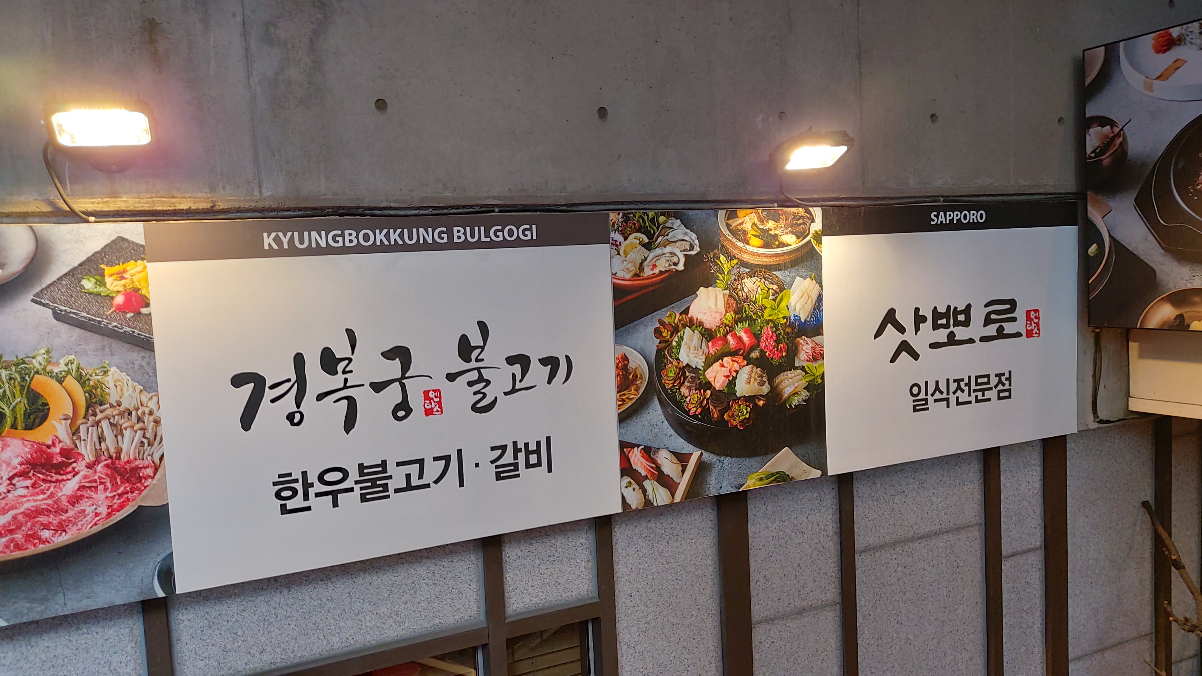 삿포로는 오래 된 프랜차이즈 일식집으로 같은 계열인 한식 체인 경복궁불고기와 함께 있습니다.
