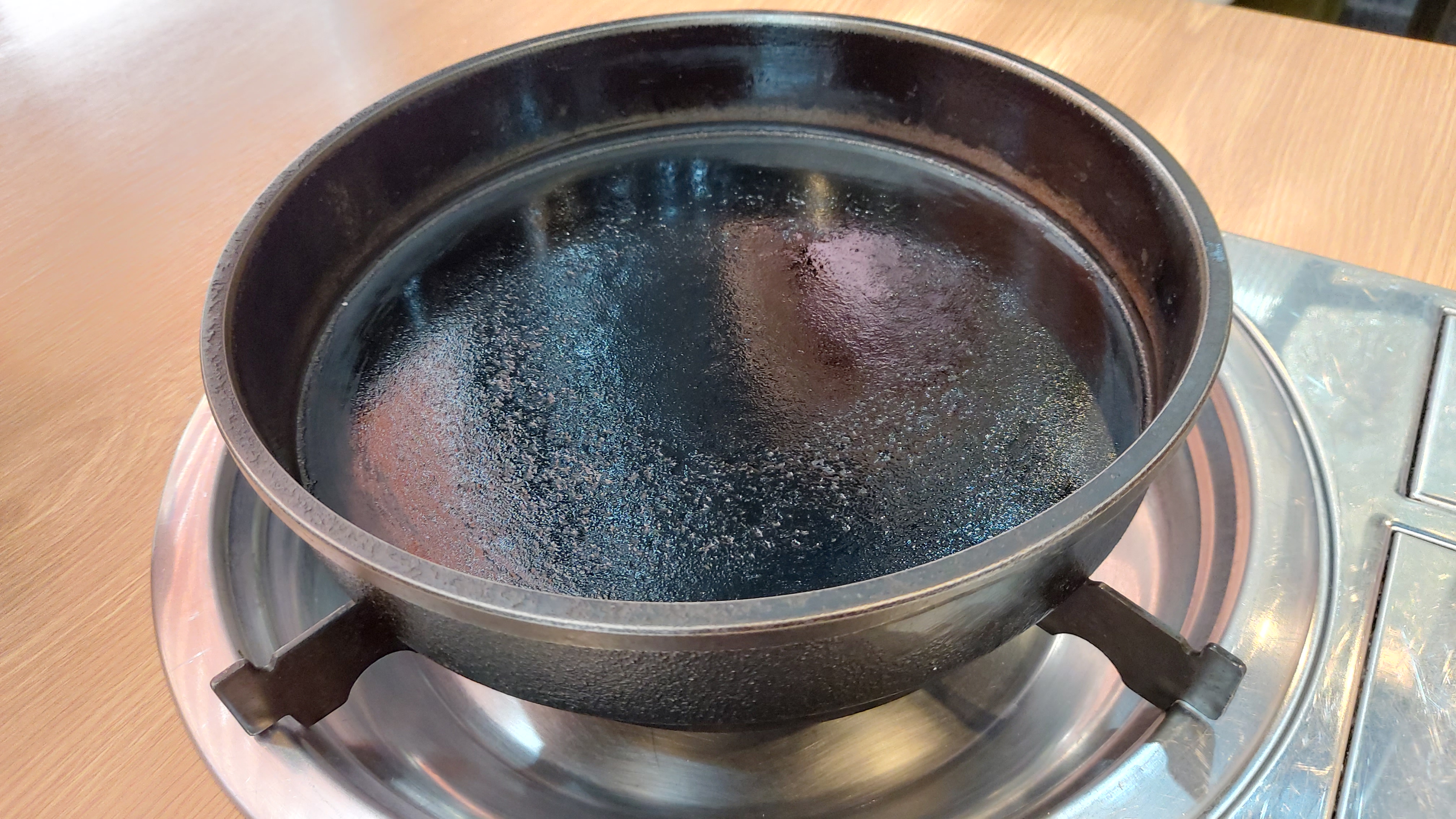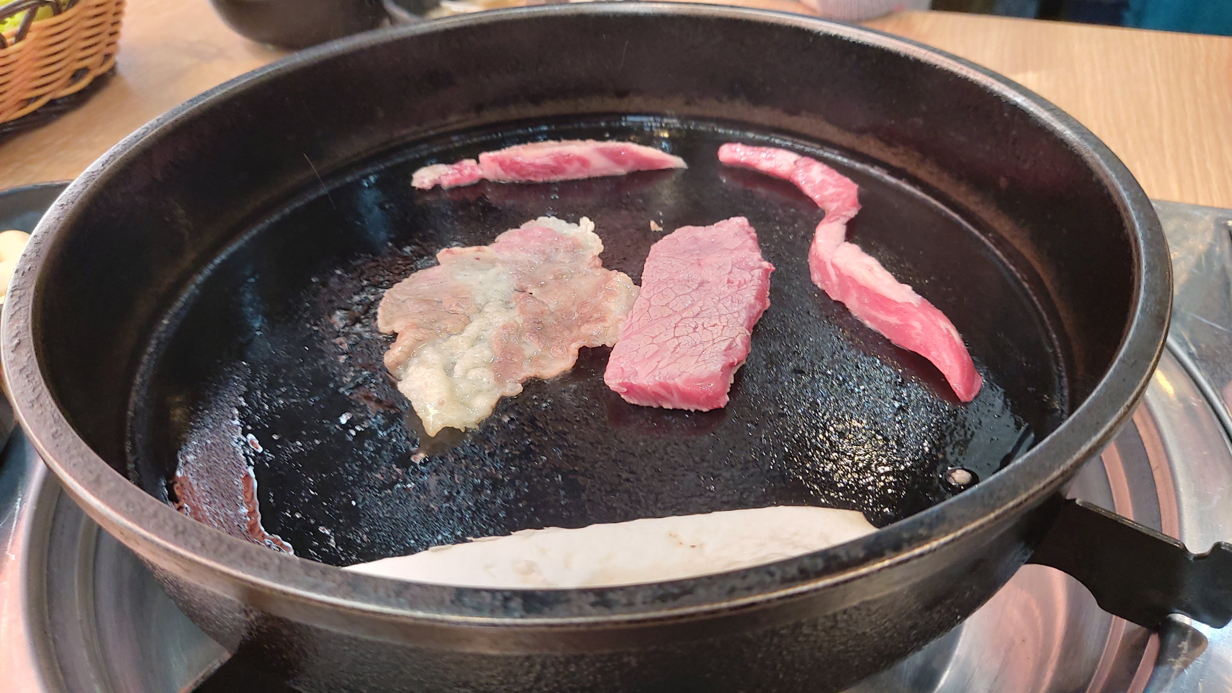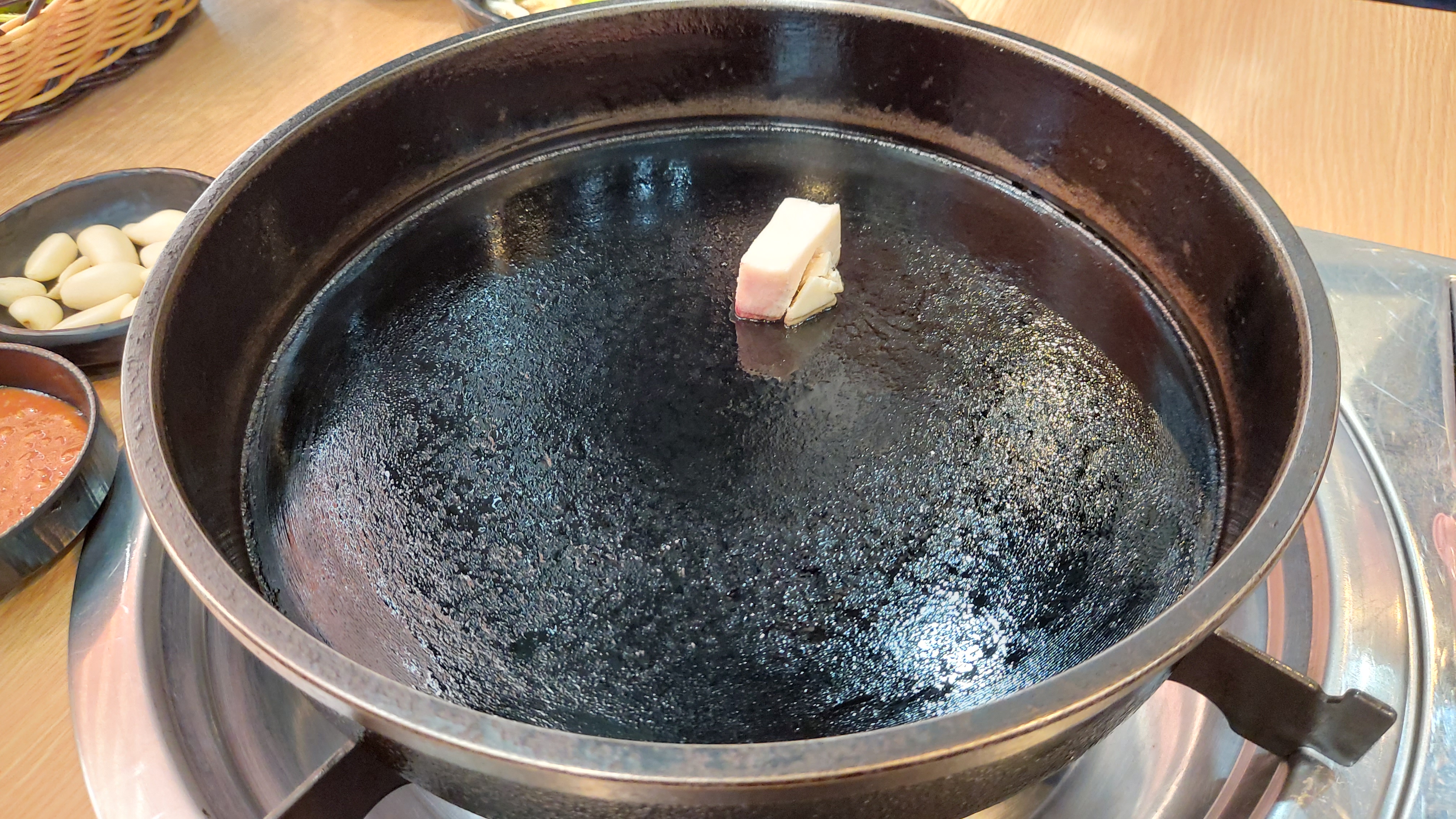 고기를 굽는 불판은 무쇠철판 불판을 사용 하는군요.