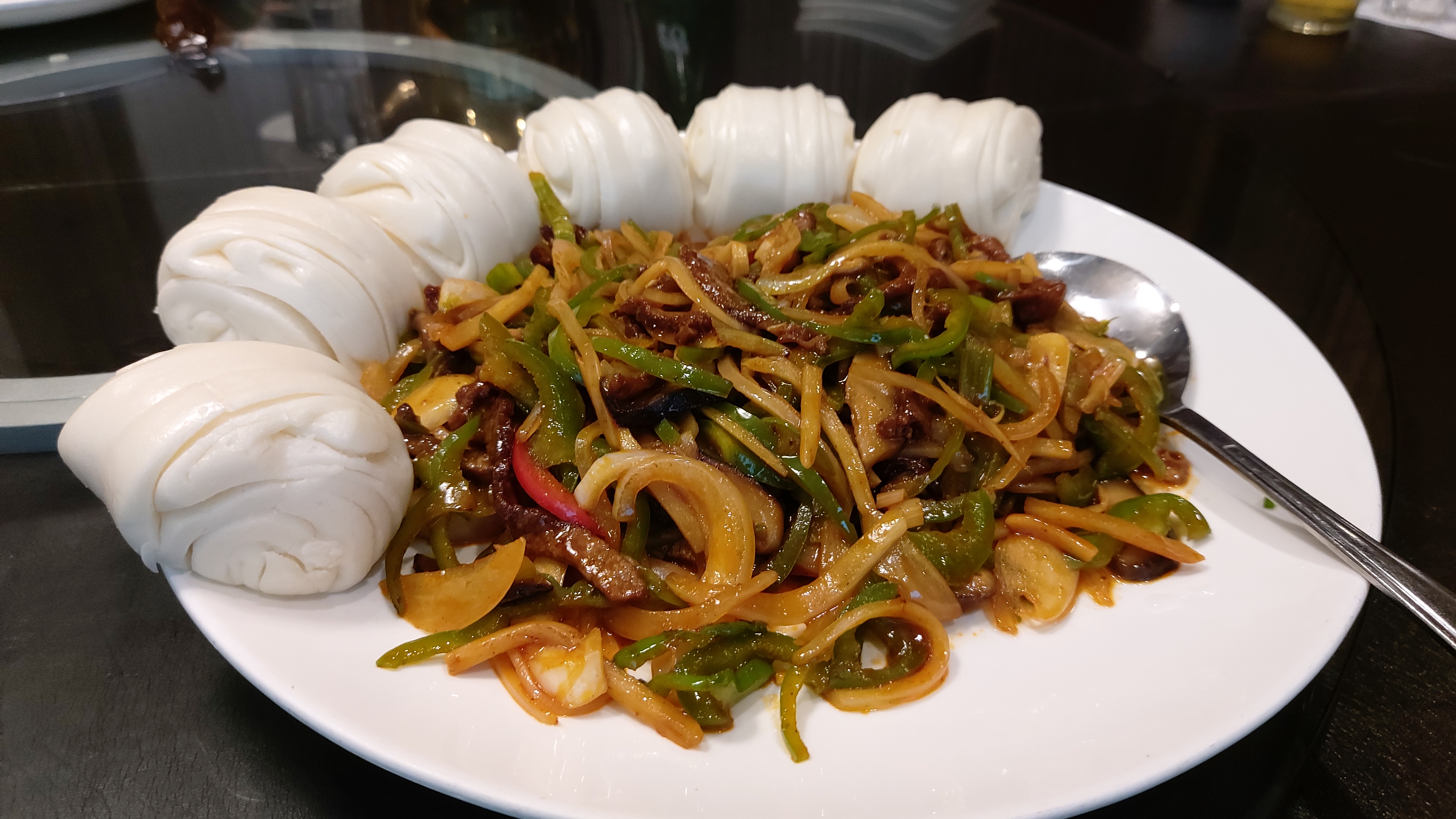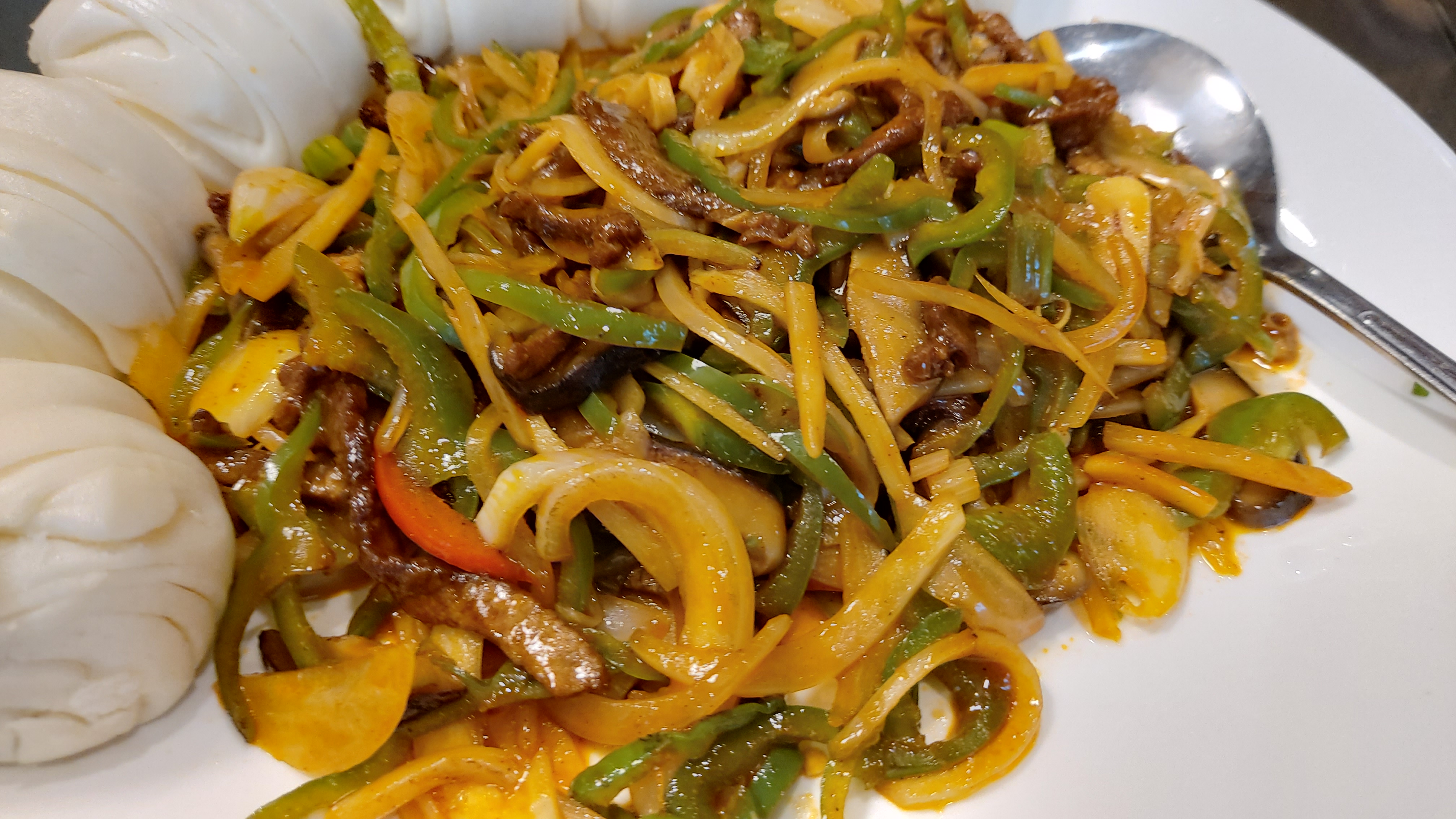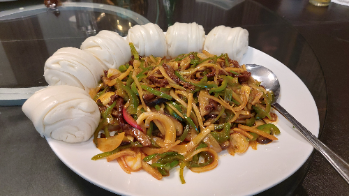 요리의 마지막은 꽃빵과 함께 나온 고추잡채입니다.