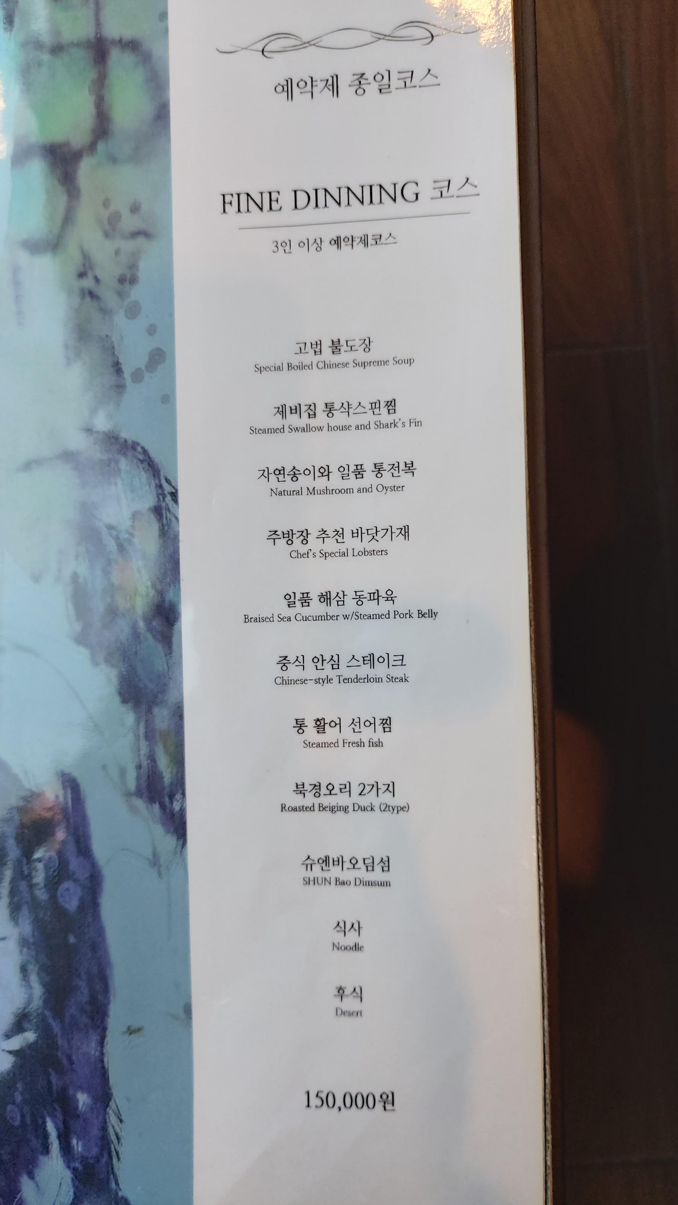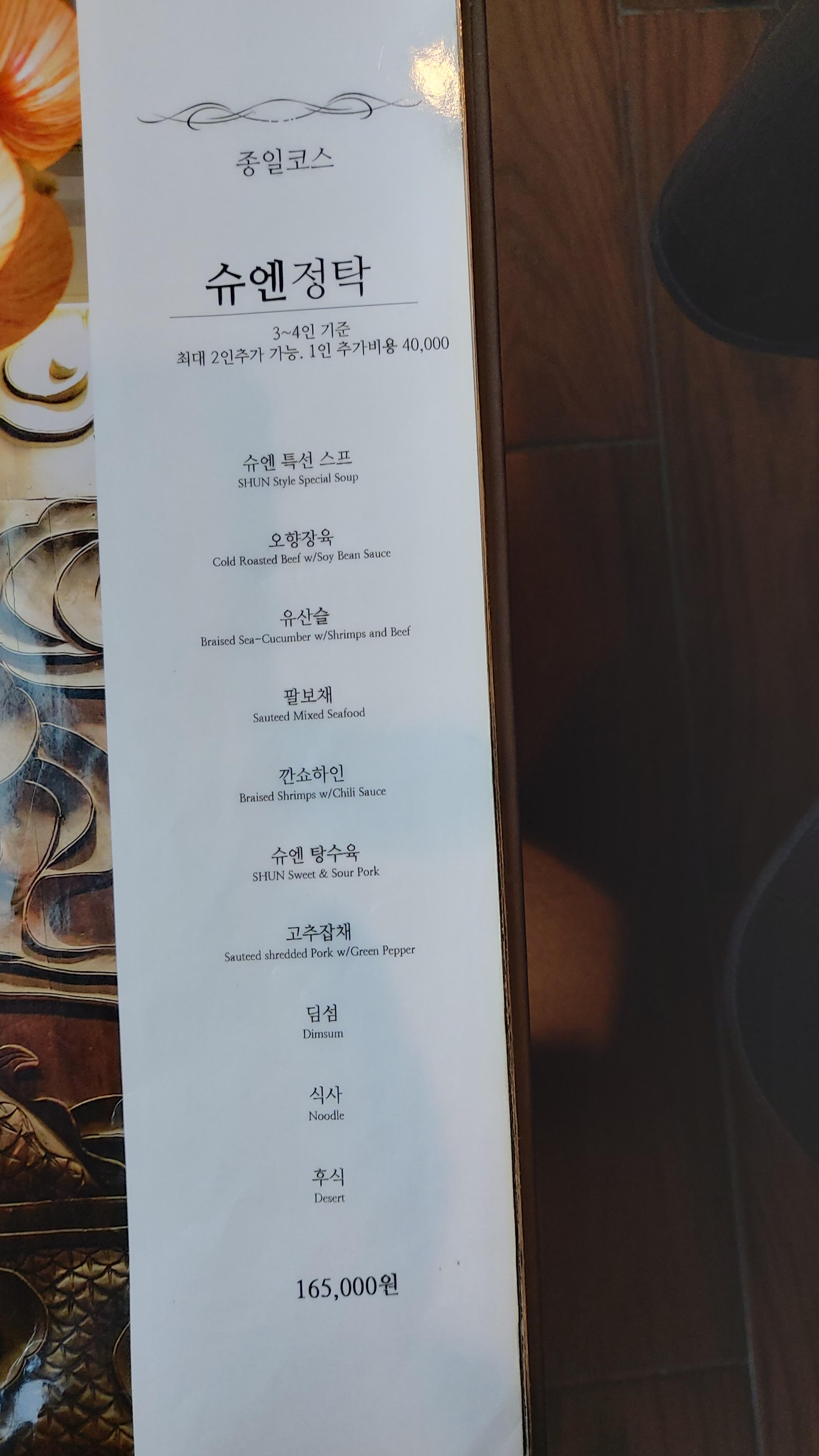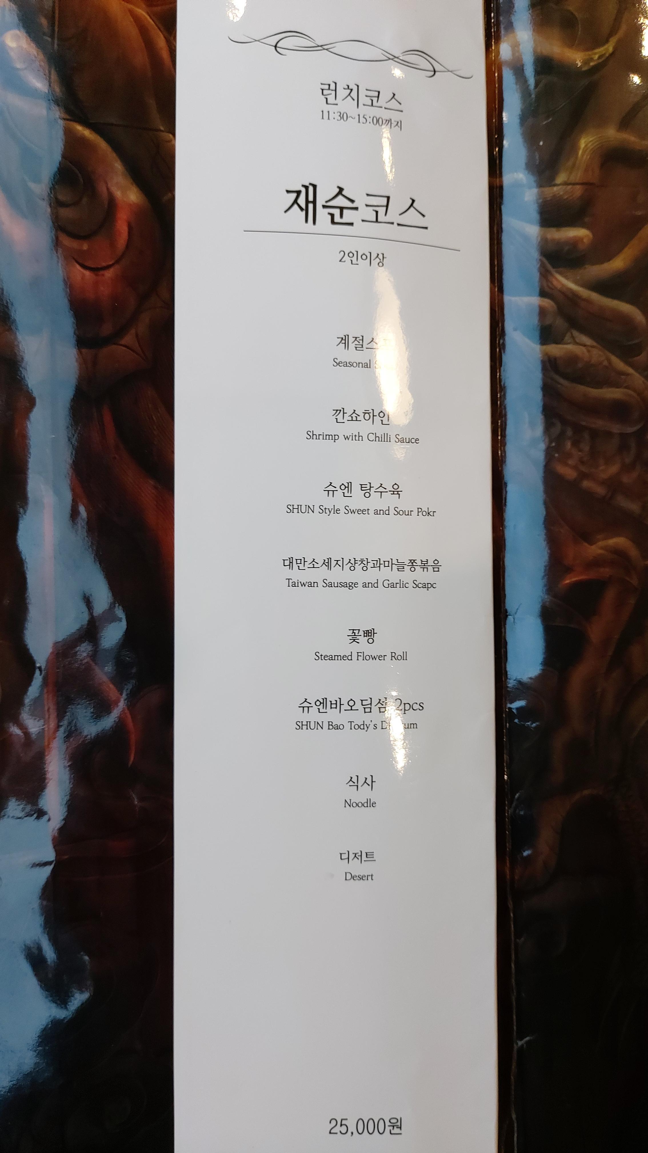 코스 요리로는 점심 특선부터 슈엔 정탁, 파인 다이닝 코스까지 여러 가지가 있습니다.