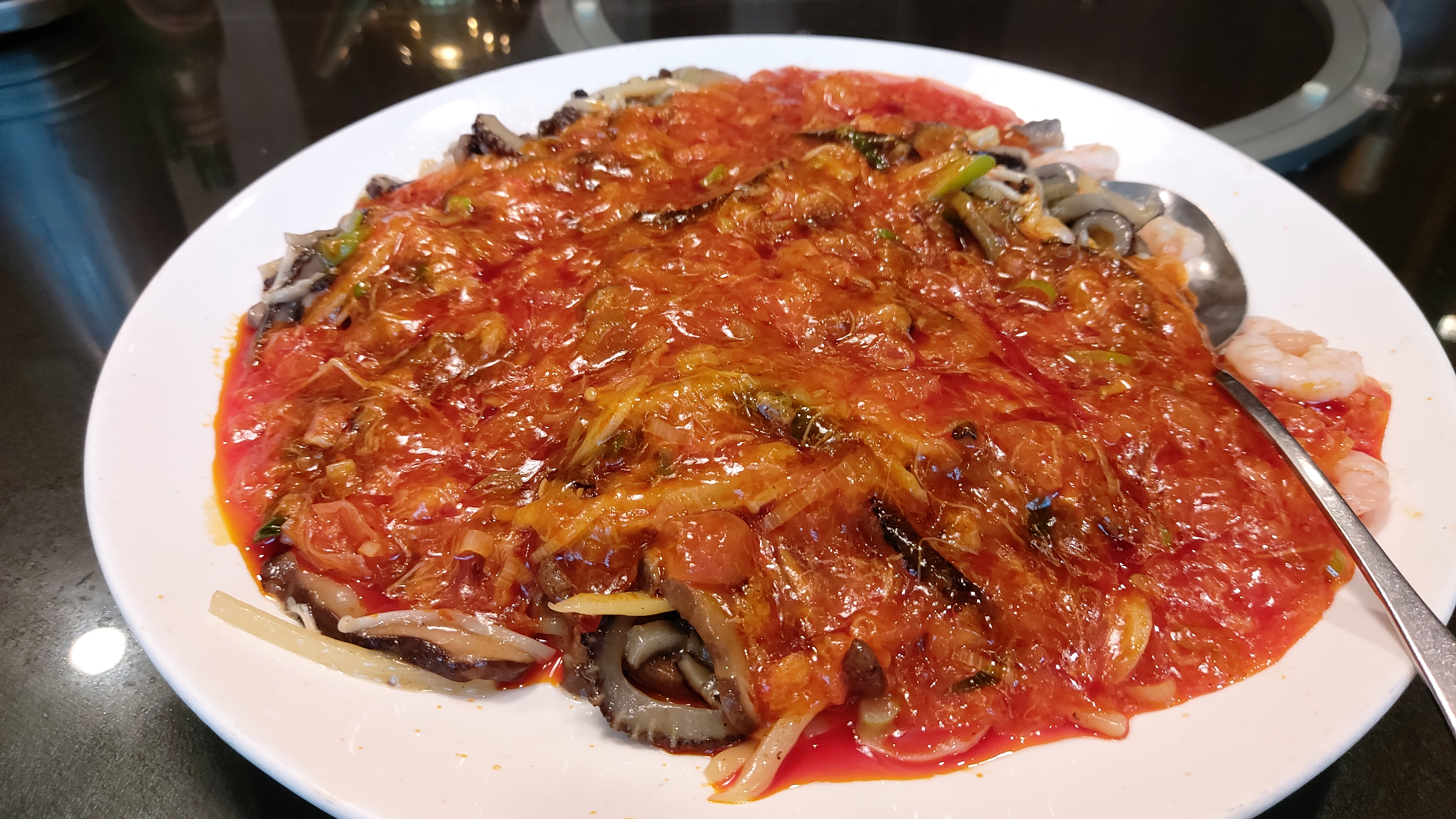 표고, 죽순, 해삼을 넣고 매콤하게 볶은 고급 중국 수프로 우리나라에서는 해분 샥스핀으로 부른다는군요.