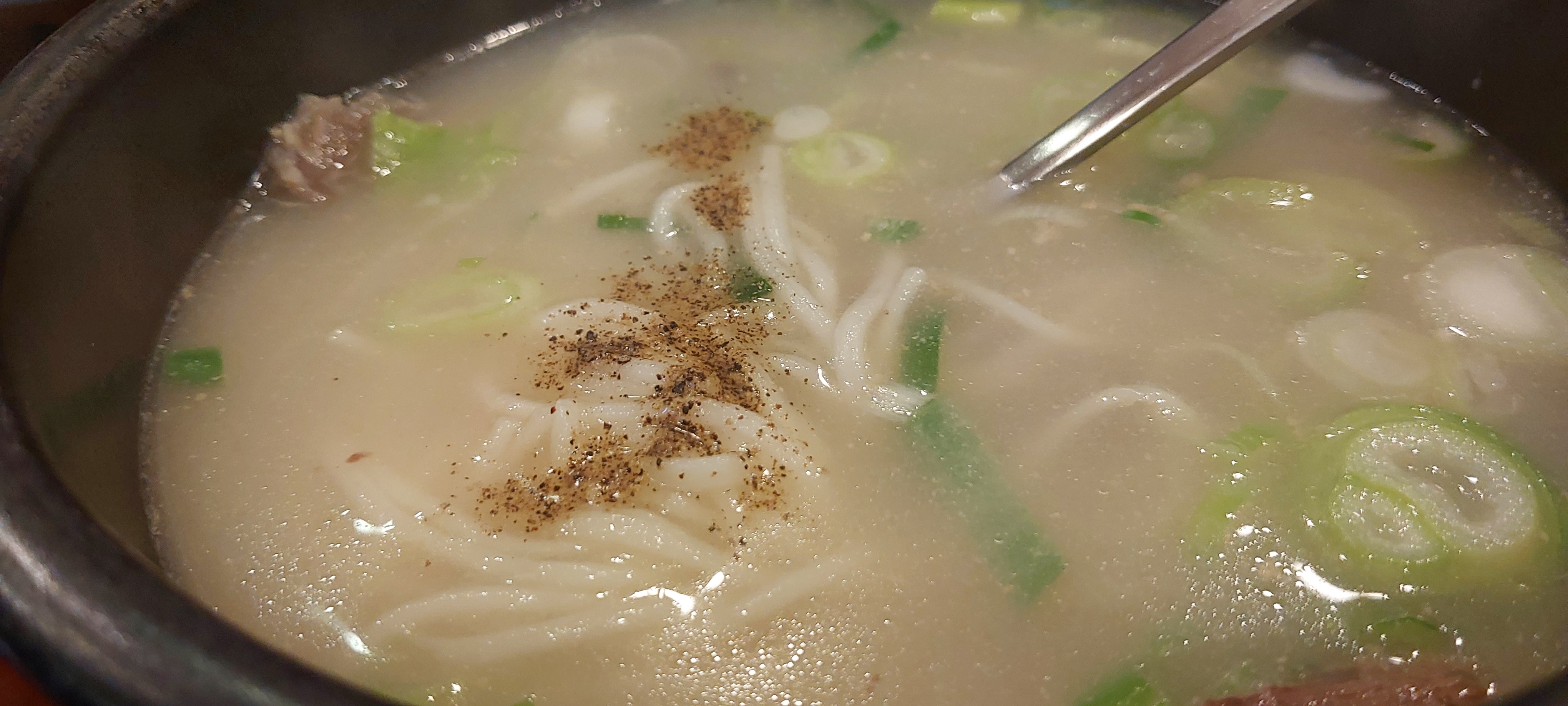 국수사리가 들어가 있는데 후추 조금 뿌려서 먹으니 더욱 좋습니다.
