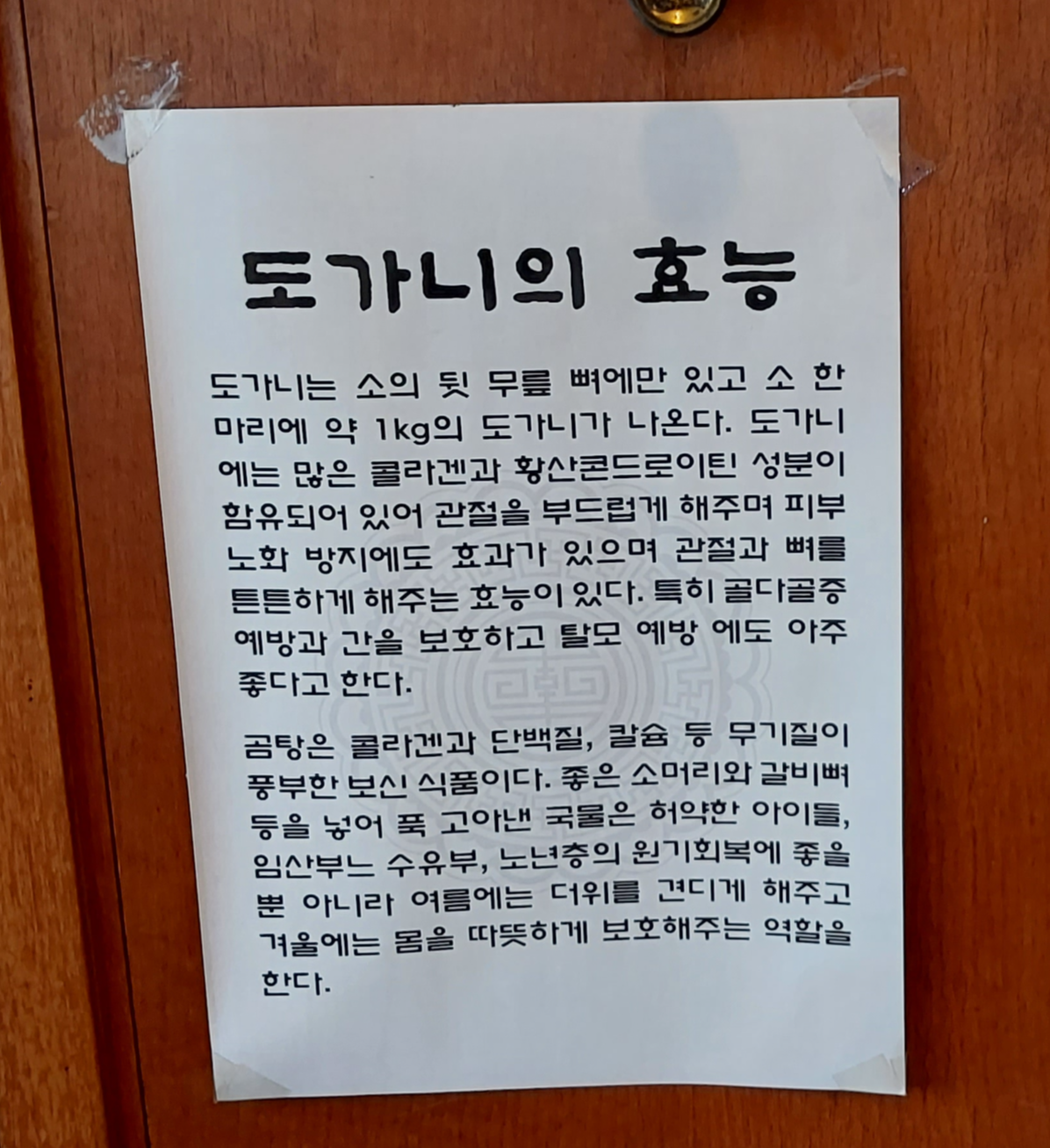 도가니탕과 꼬리곰탕, 그리고 설렁탕과 해장국, 육개장, 만둣국 등이 주요 식사 품목입니다.