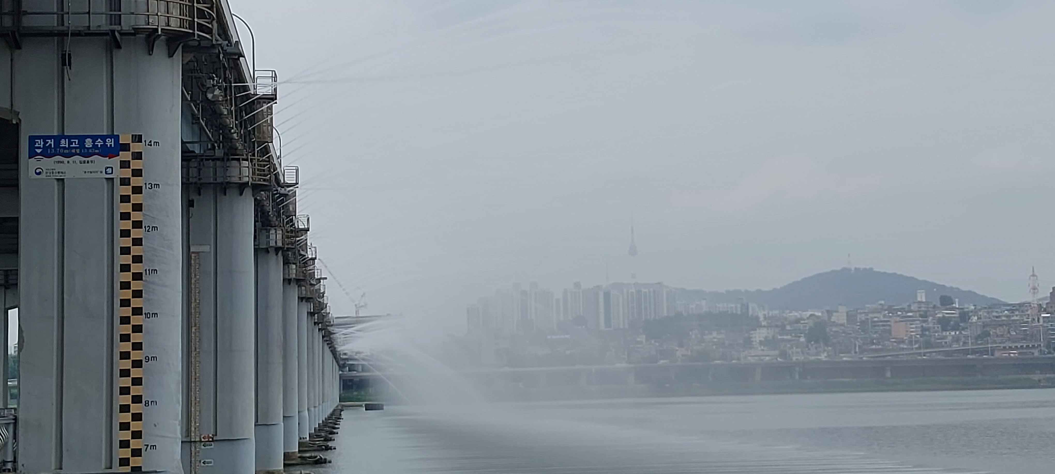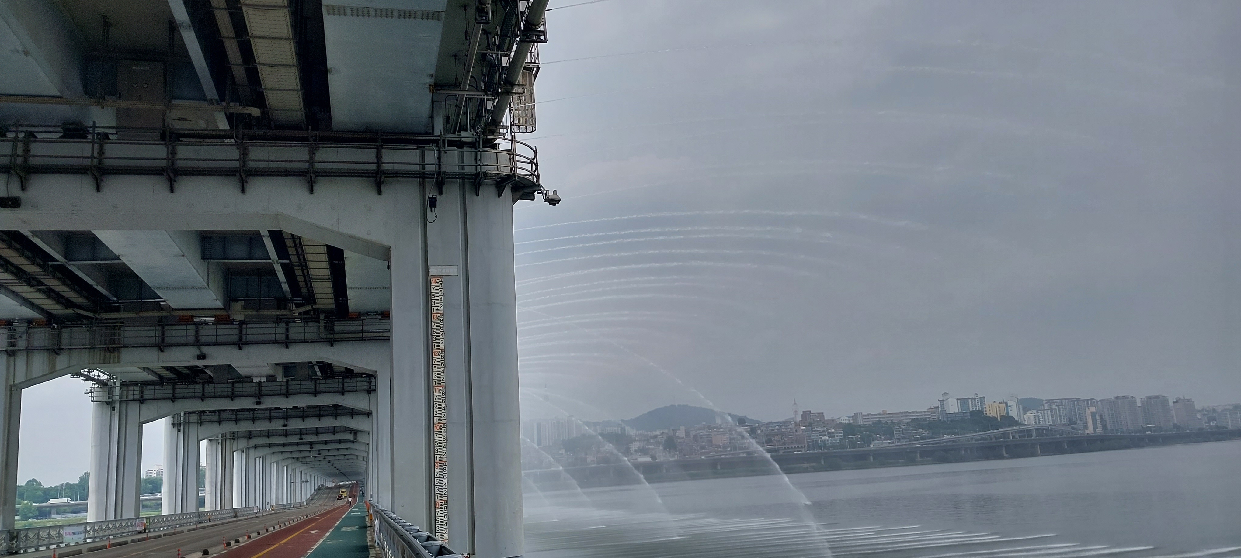 가다가 반포대교에서 보니 다리에서 분수쇼를 진행하고 있군요.