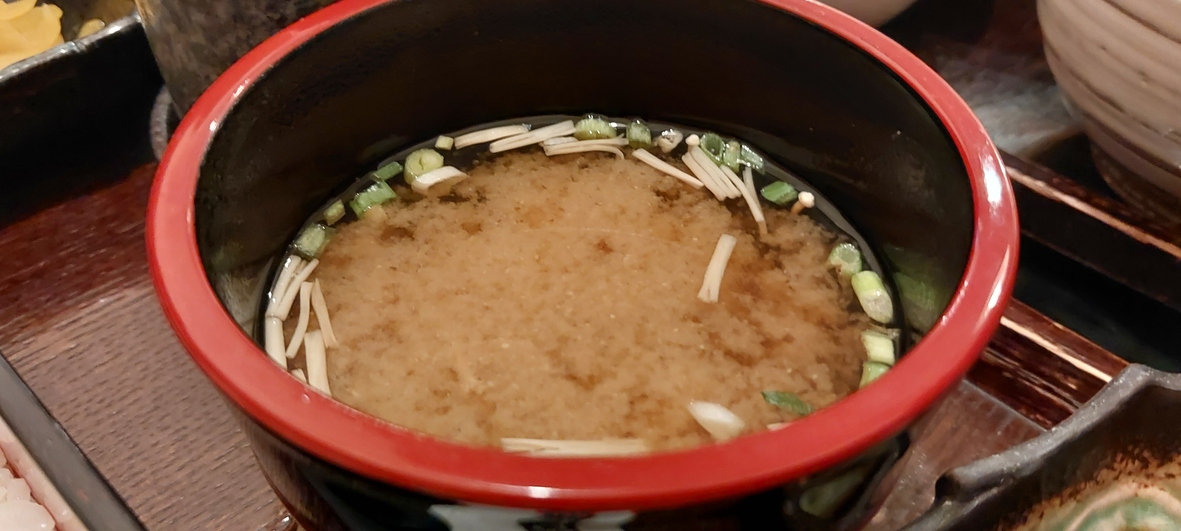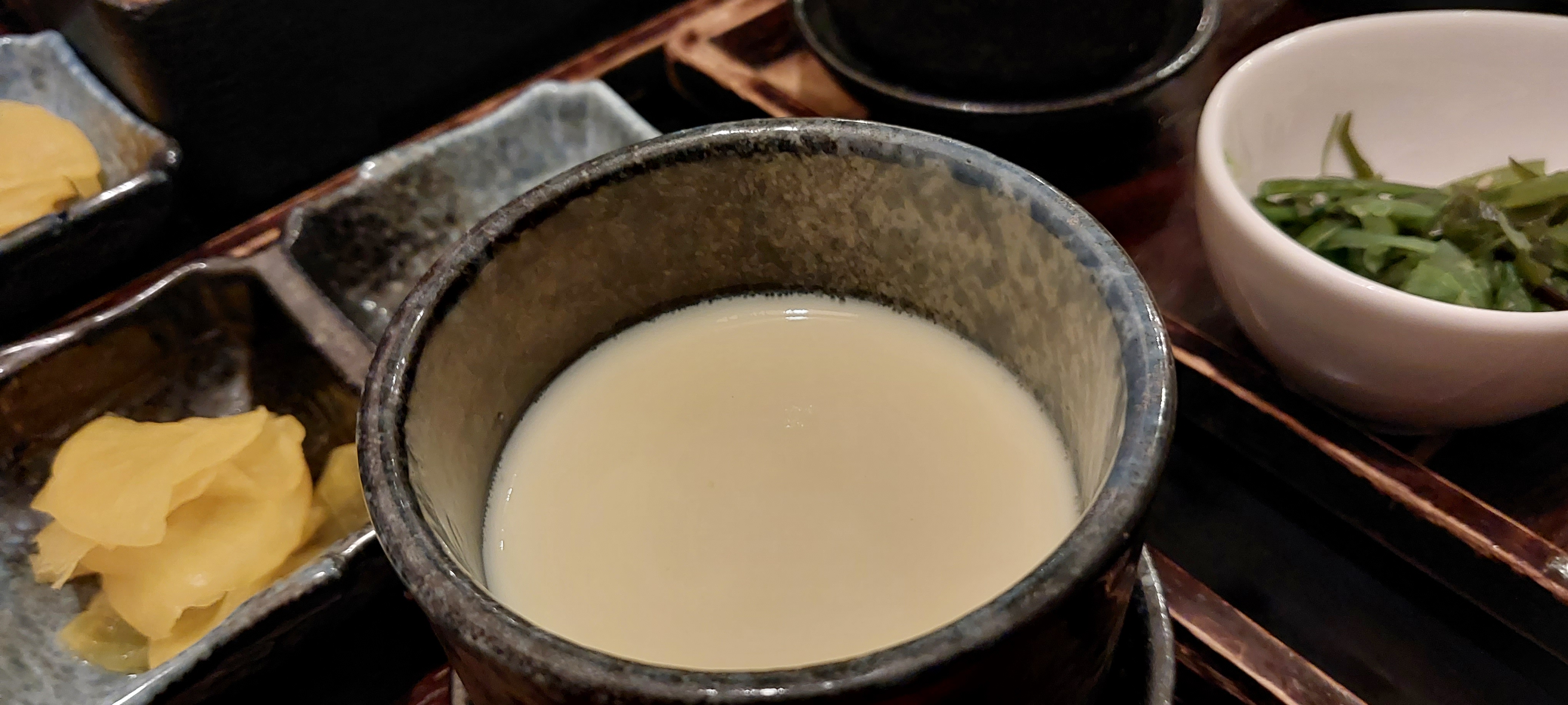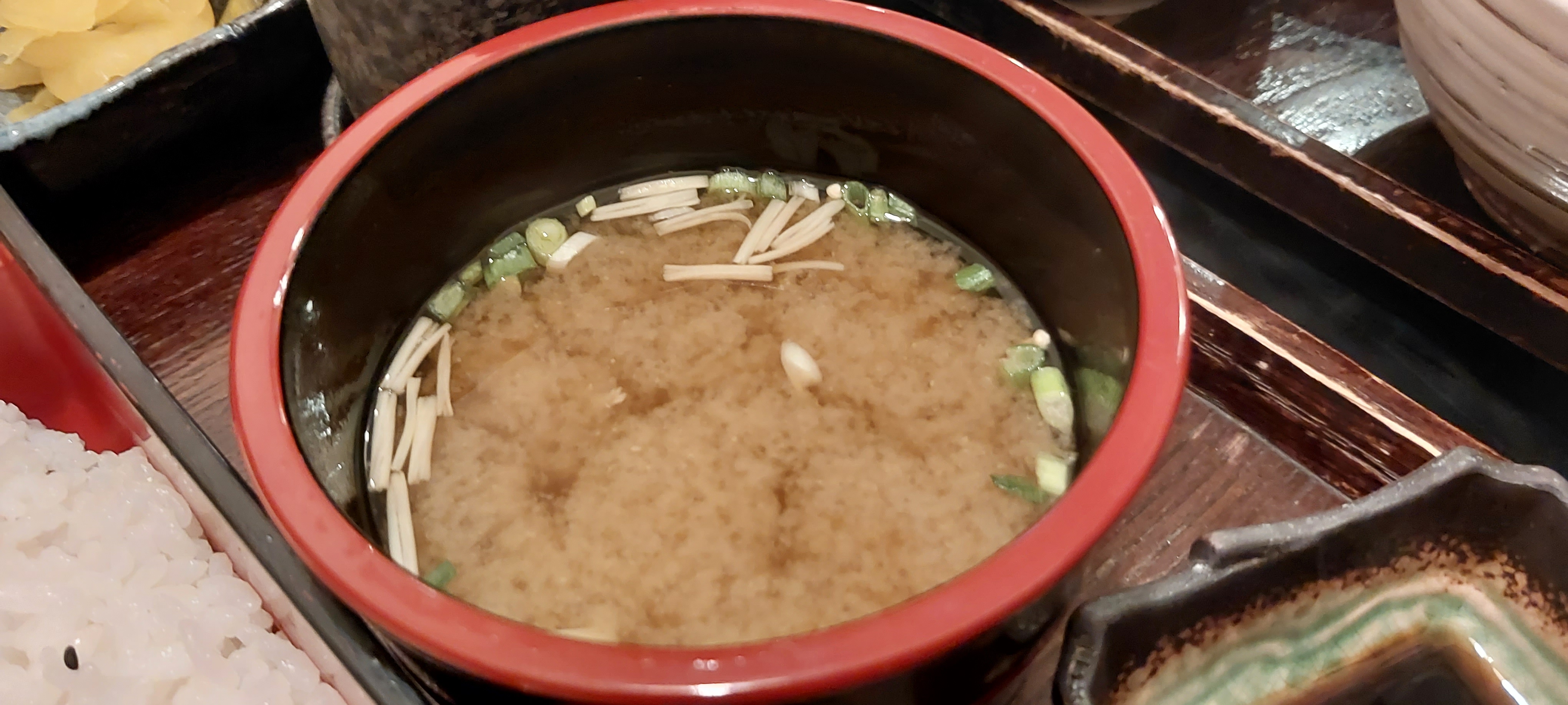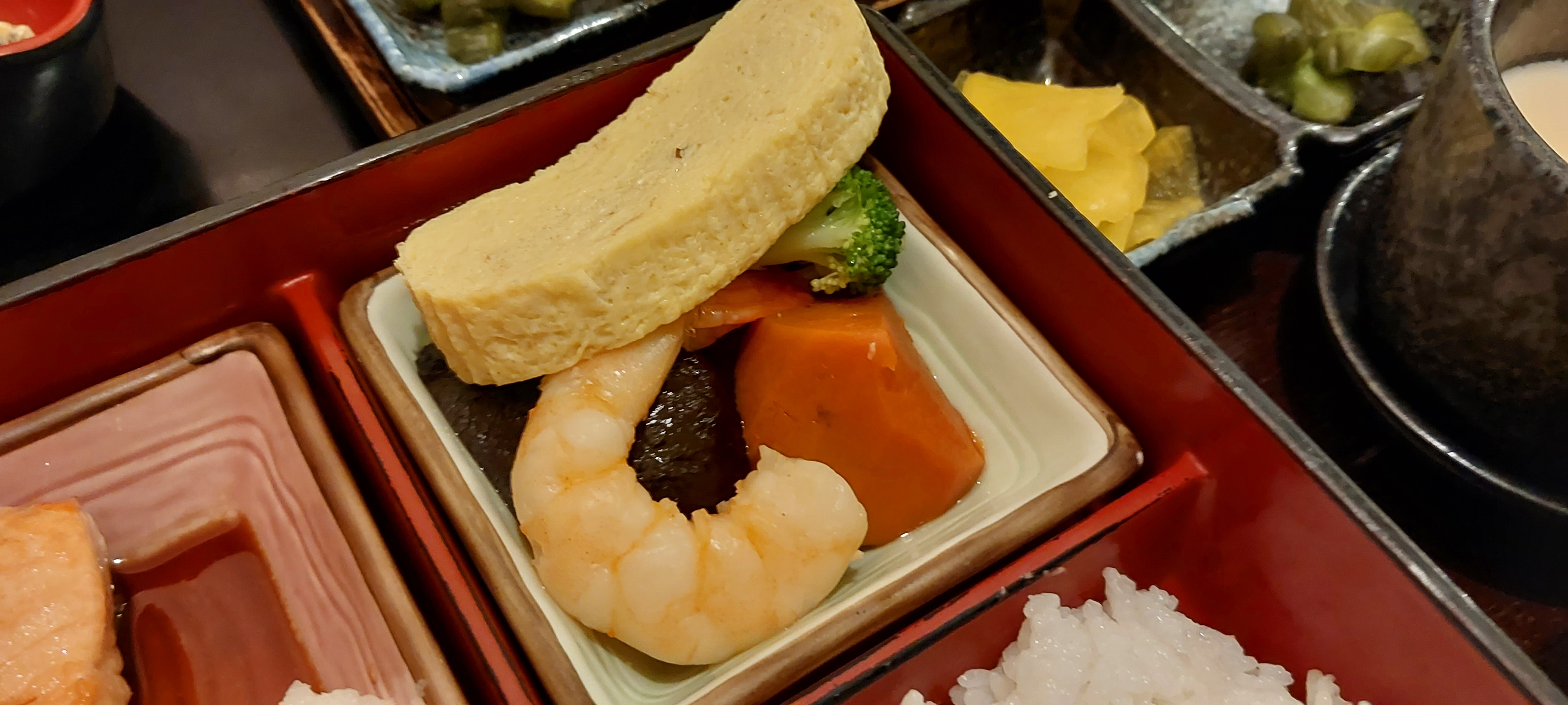 자왕무시(일본식 계란찜), 츠케모노(야채절임) 등에 밥과 미소 된장국으로 구성되어 있습니다.