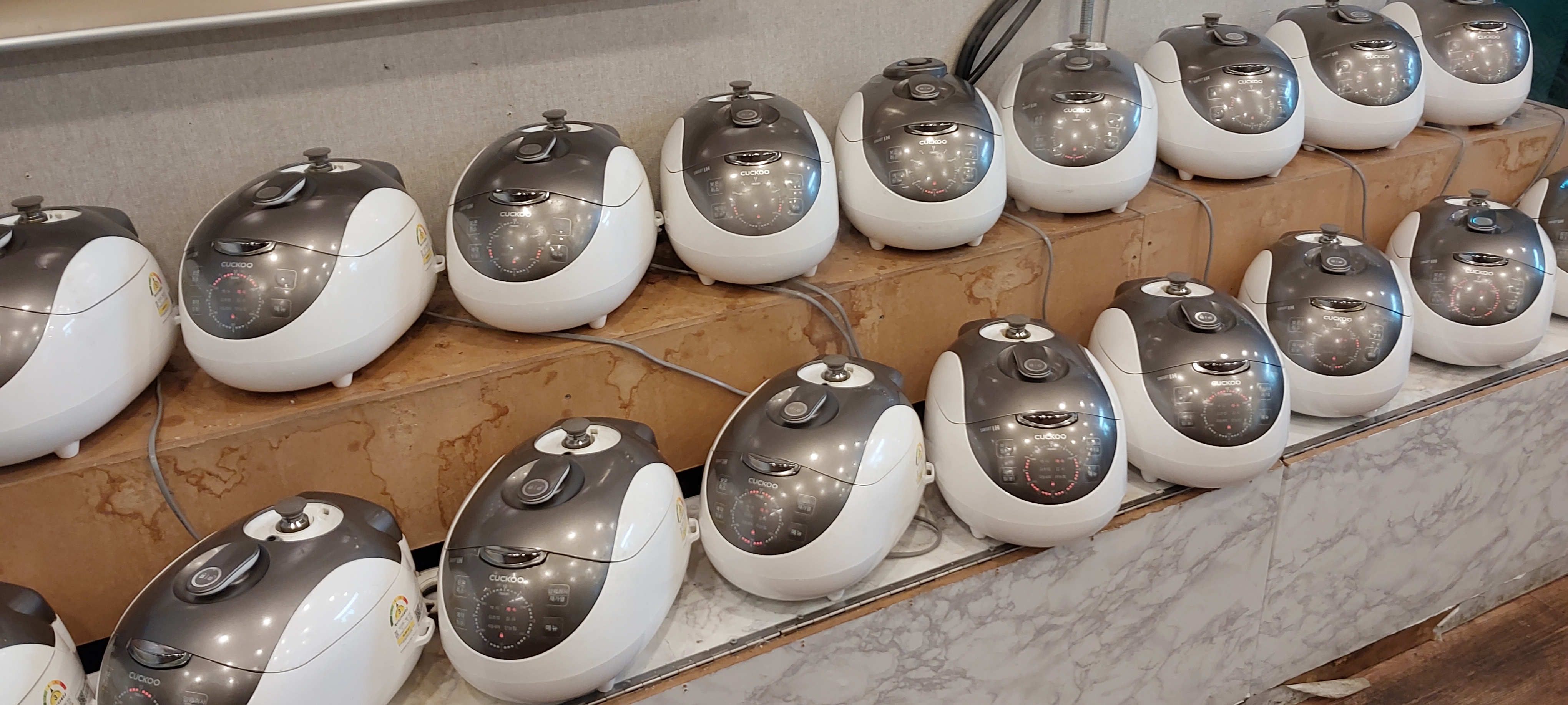 수많은 밥솥들이 준비되어 있는데 주문을 하면 바로바로 밥을 지어 솥째로 가져다줍니다.