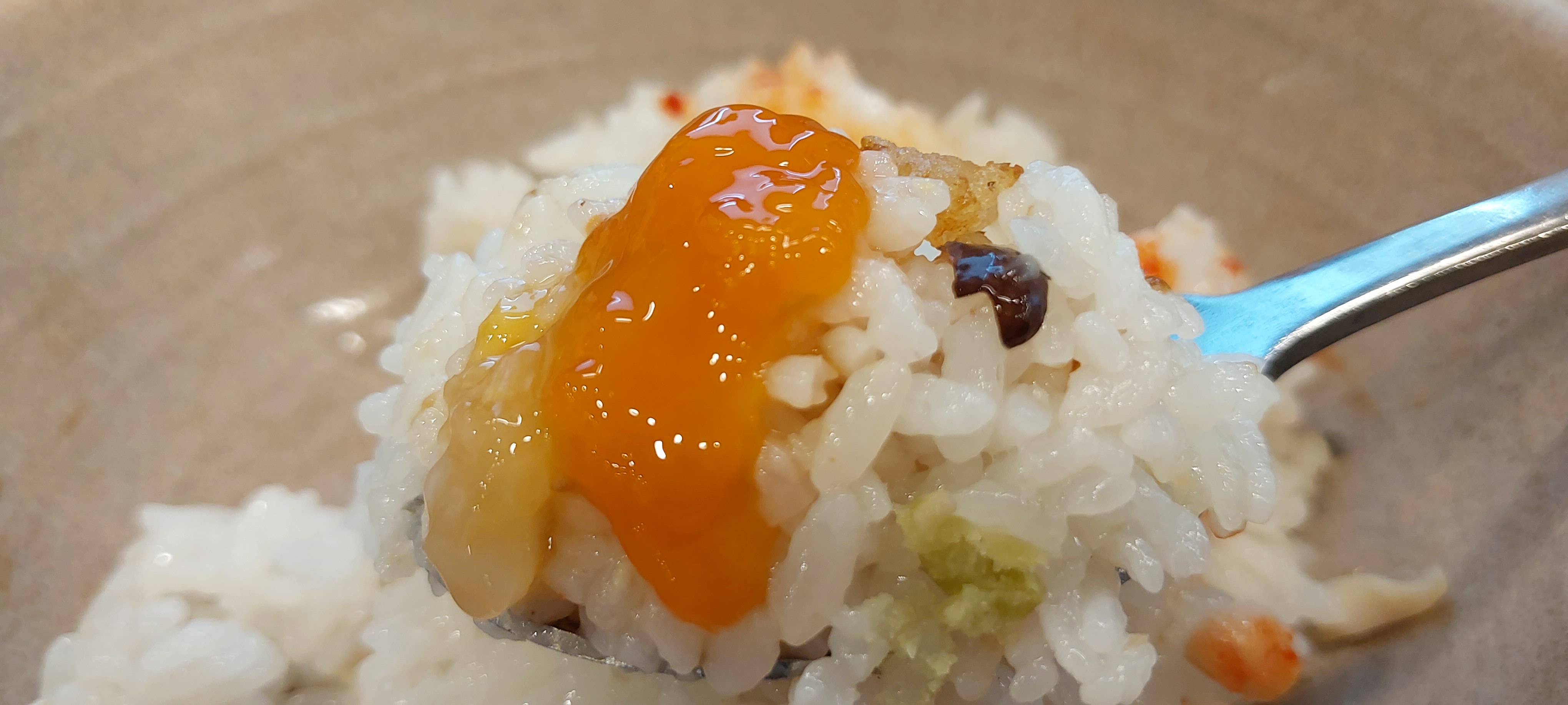 그리고 게딱지 비벼 먹을 때 같이 비벼 먹으라고 계란 노른자도 같이 나옵니다.