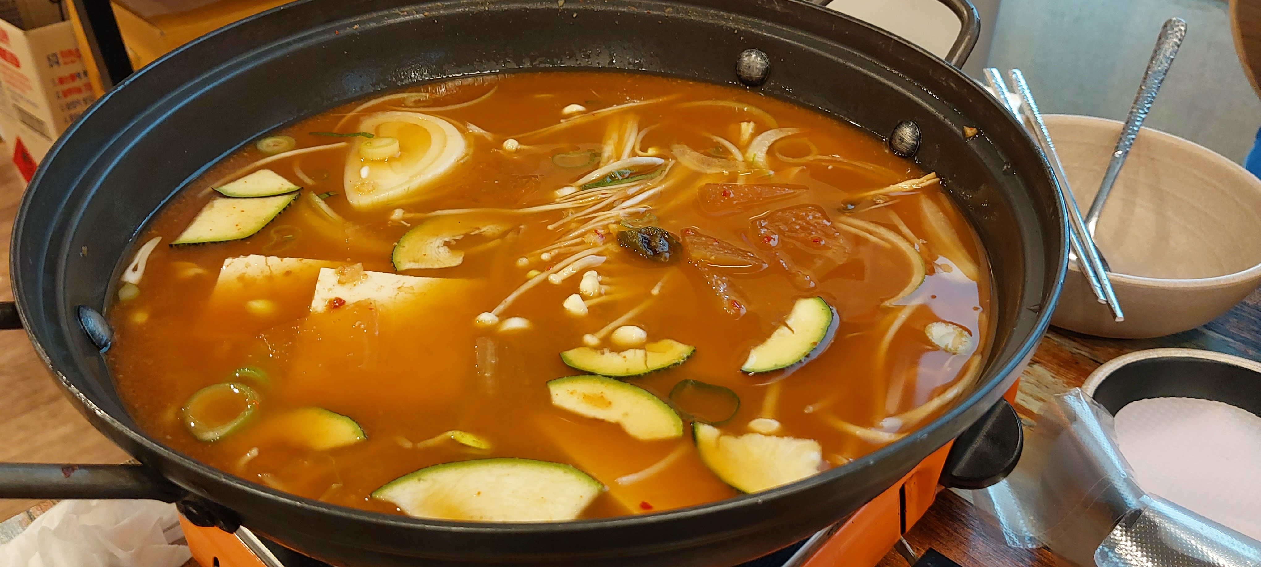두부, 버섯, 애호박, 콩나물 등 여러 가지 재료들이 들어간 된장찌개도 제대로 잘 만들어 왔습니다.