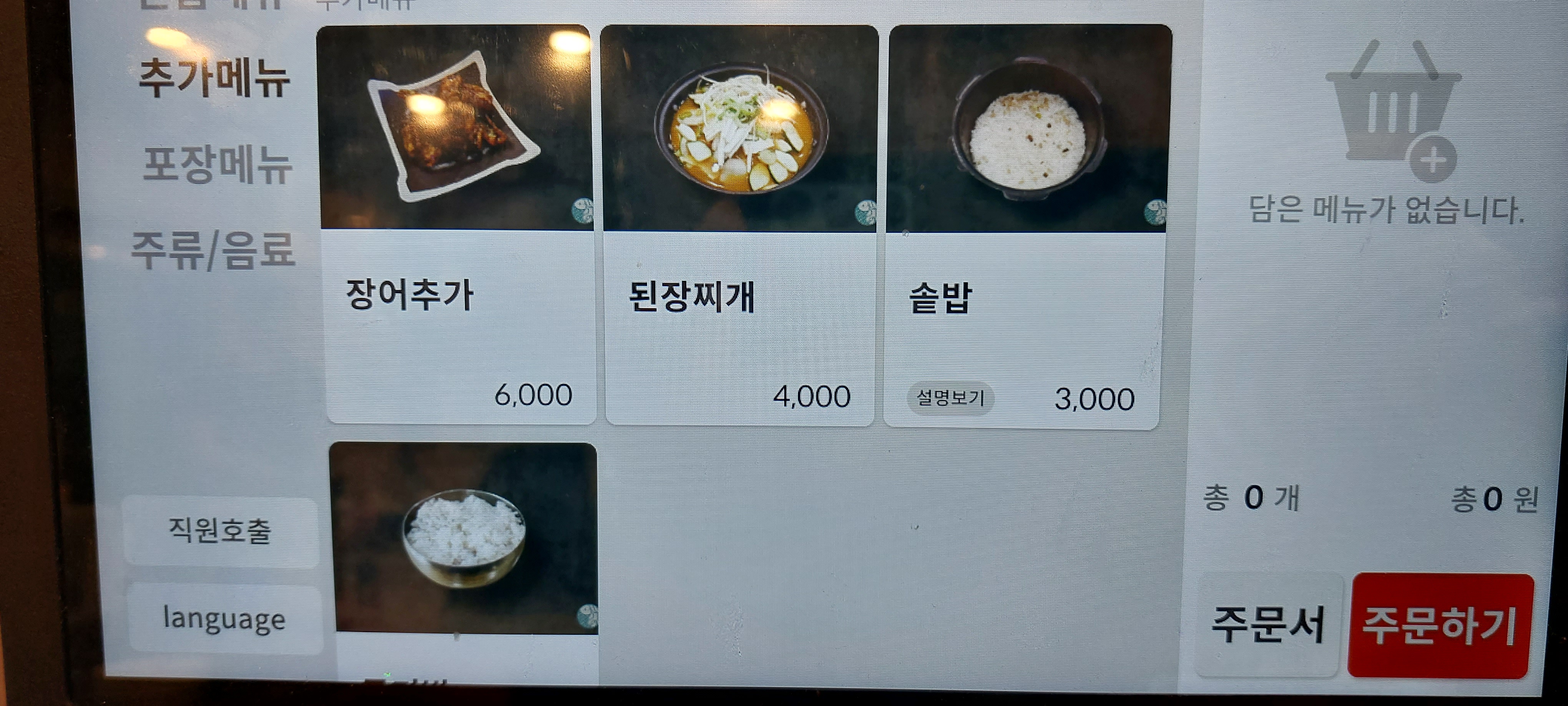 노병은 한 눈에 훑어 볼 수 있는 메뉴판이 좋은데 태블릿은 보기도, 주문하기도 쉽지가 않네요.