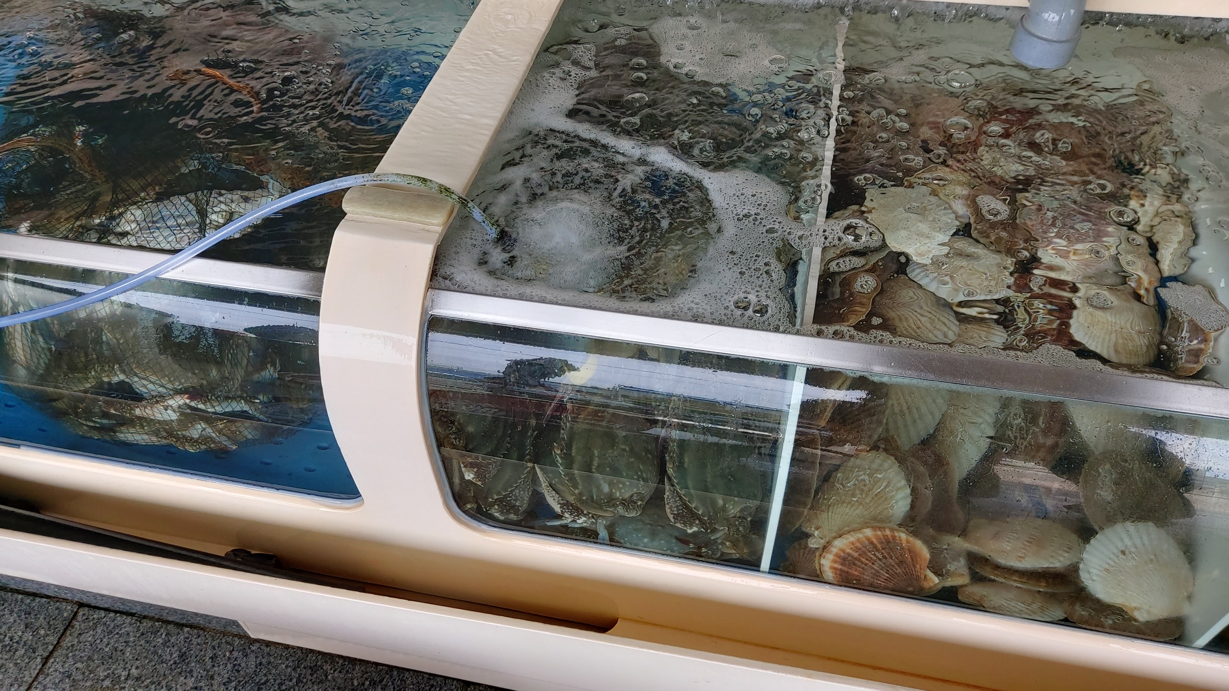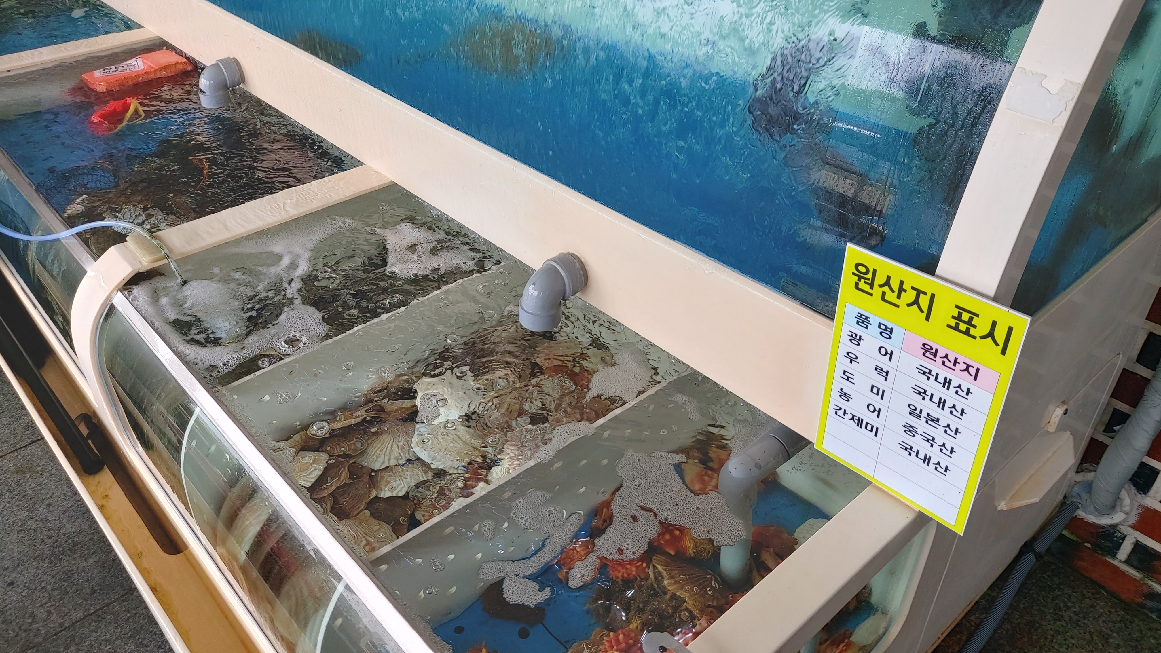 오천항수산물센터 8호점에도 커다란 수족관들이 있어 각종 생선들과 조개 등 어패류들이