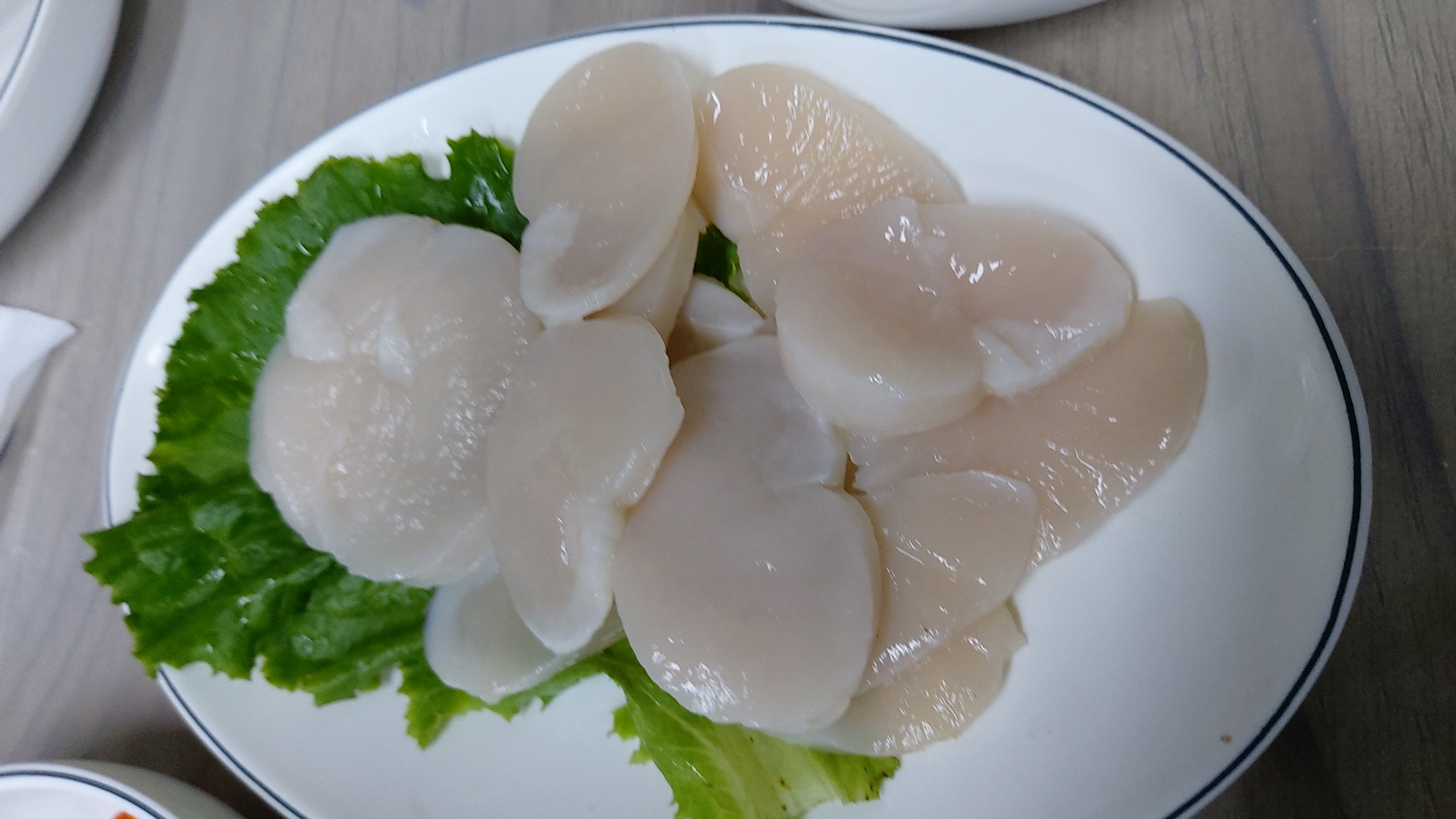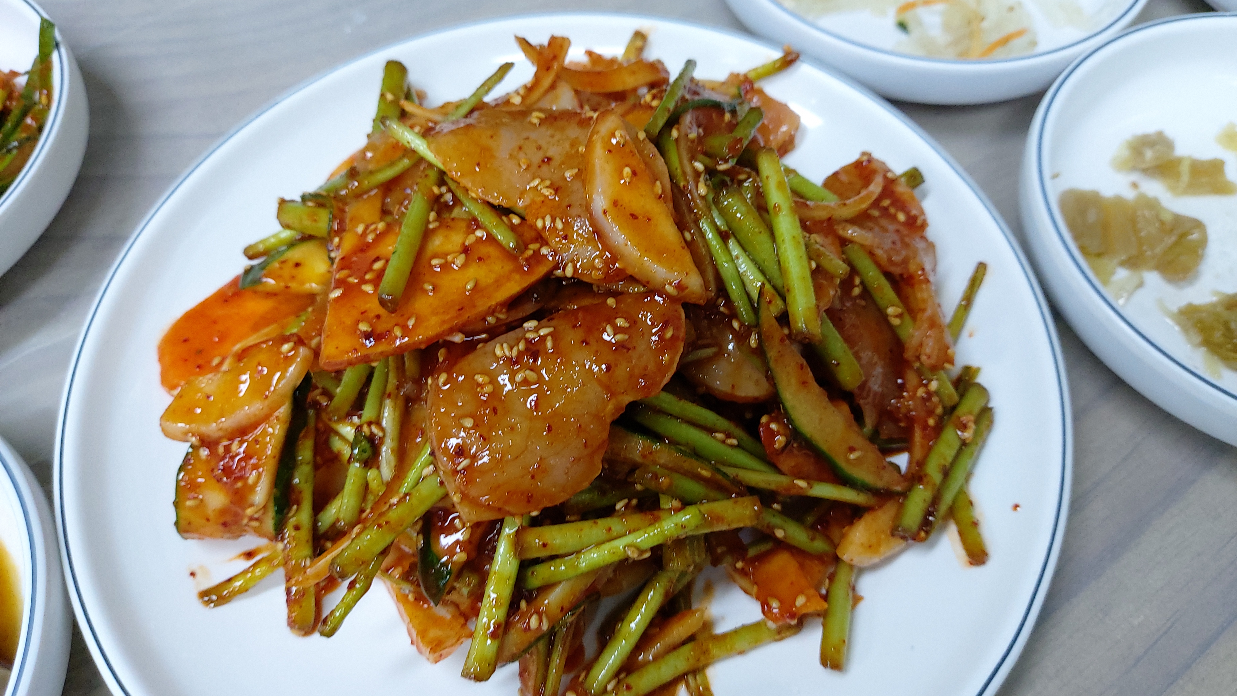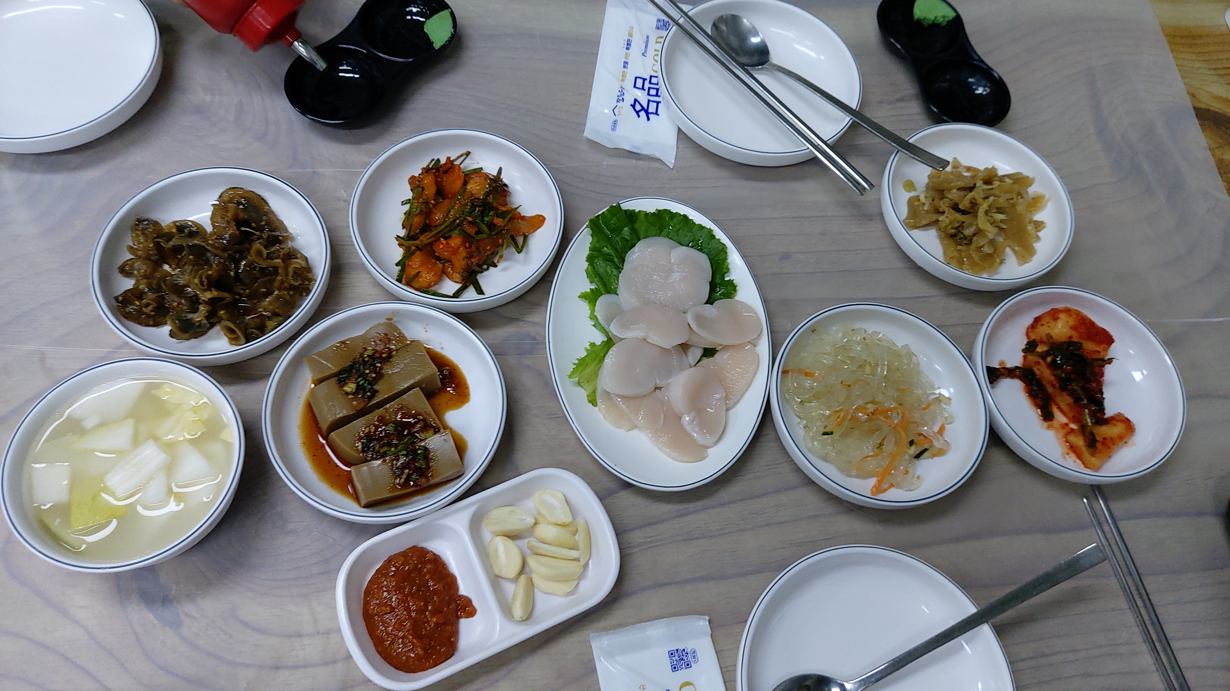 난생처음 보는 밑반찬이 훌륭했고 키조개 관자회가 중앙에 있어 서비스인 줄 알았더니