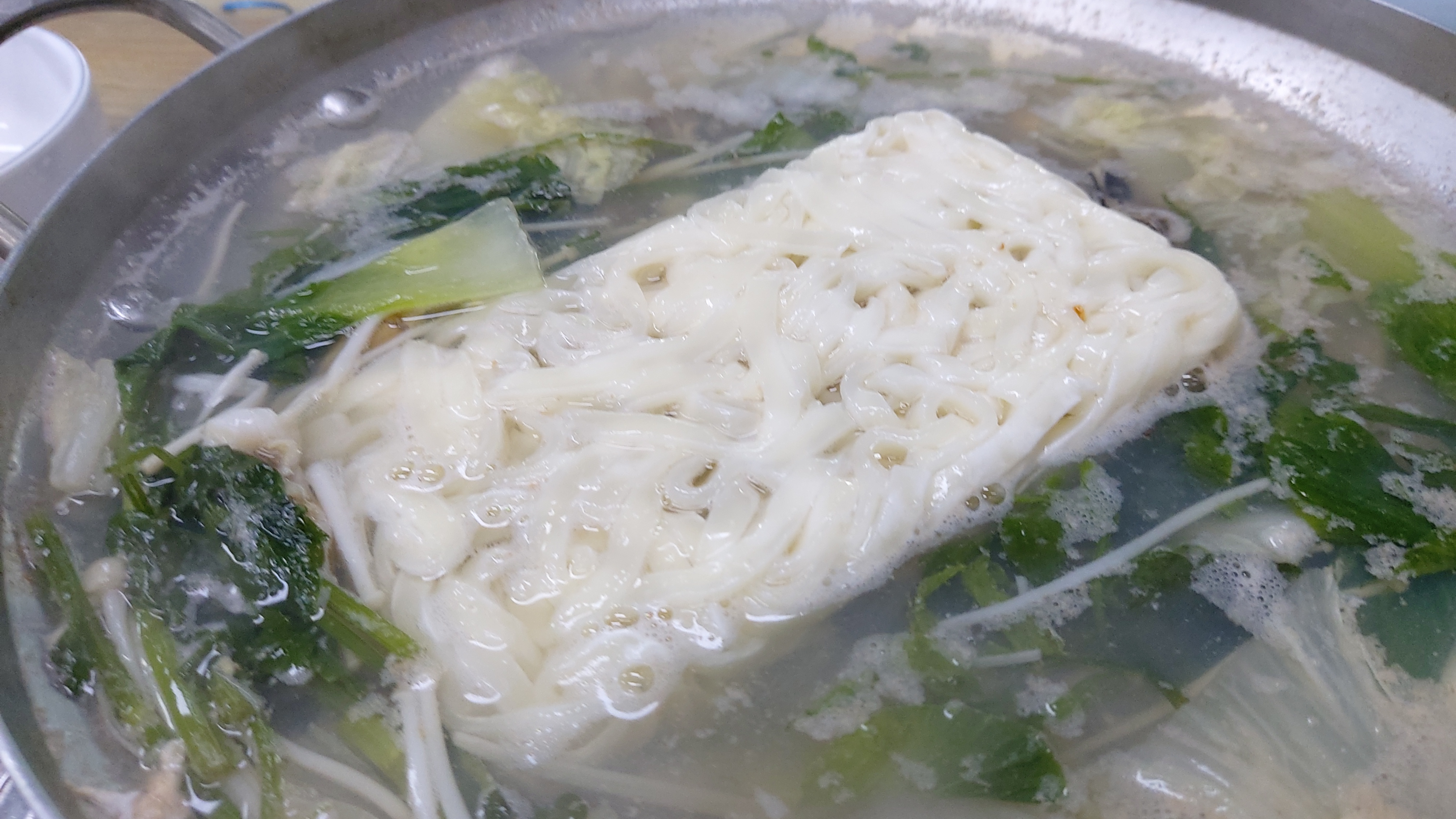 이왕에 잘 먹는 특별한 기회이니 면사리도 주문해서 샤브 국물에 넣어 봅니다.