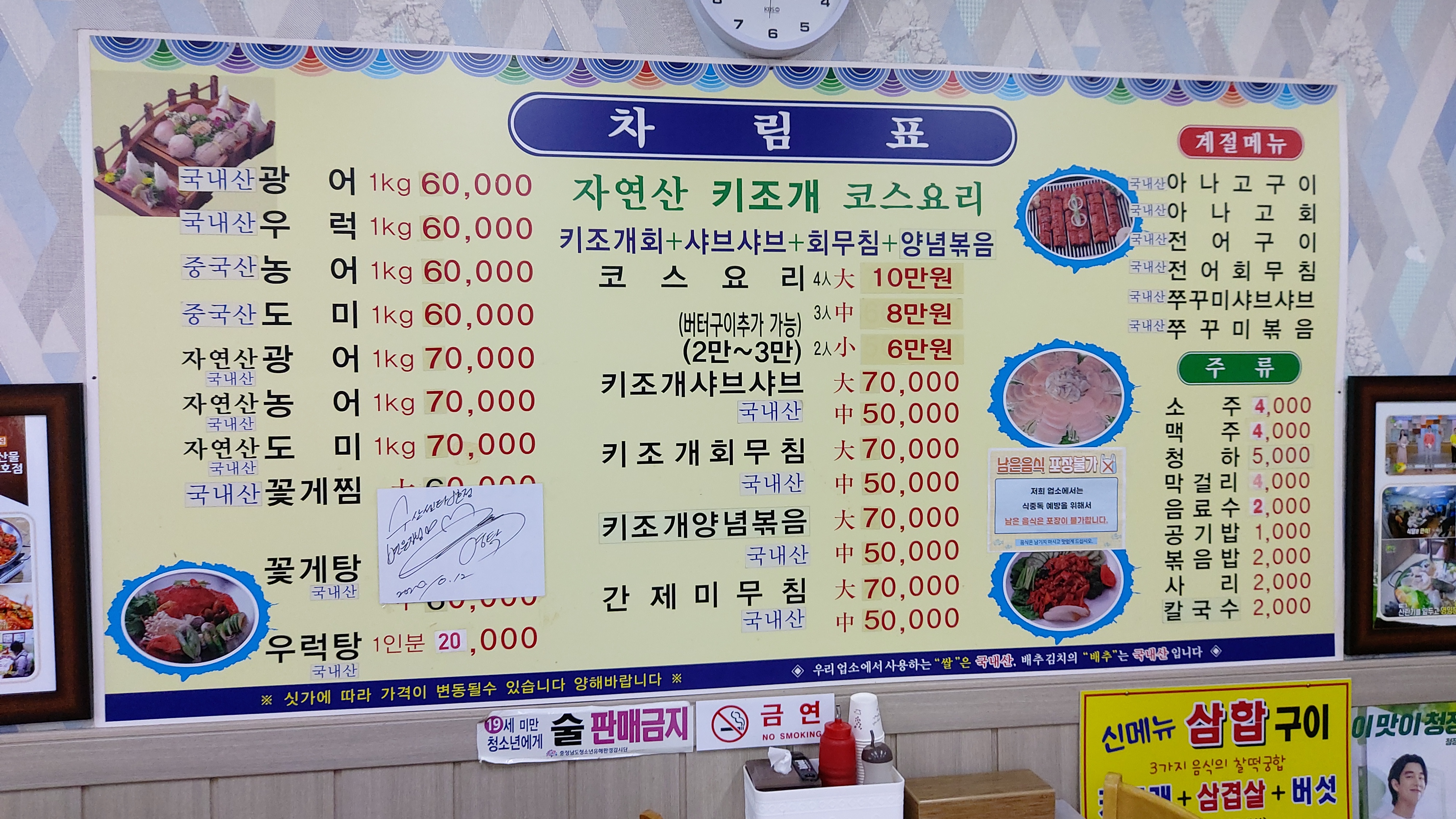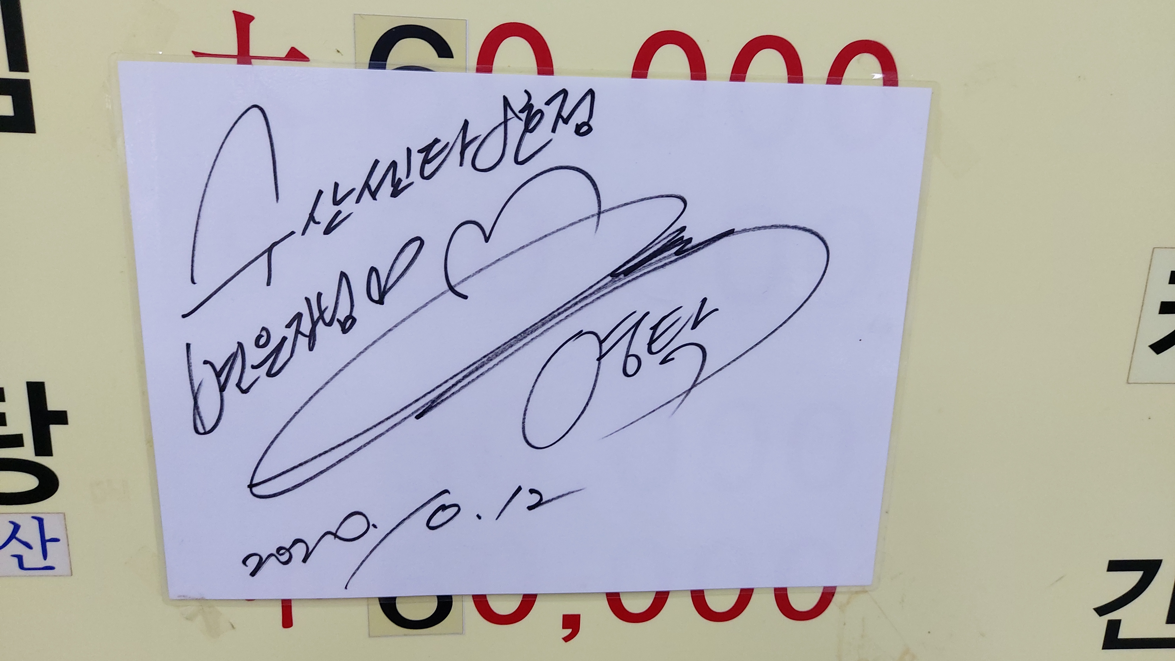 메뉴판에 생뚱맞게 트로트 가수 영탁 씨 싸인이 있군요.