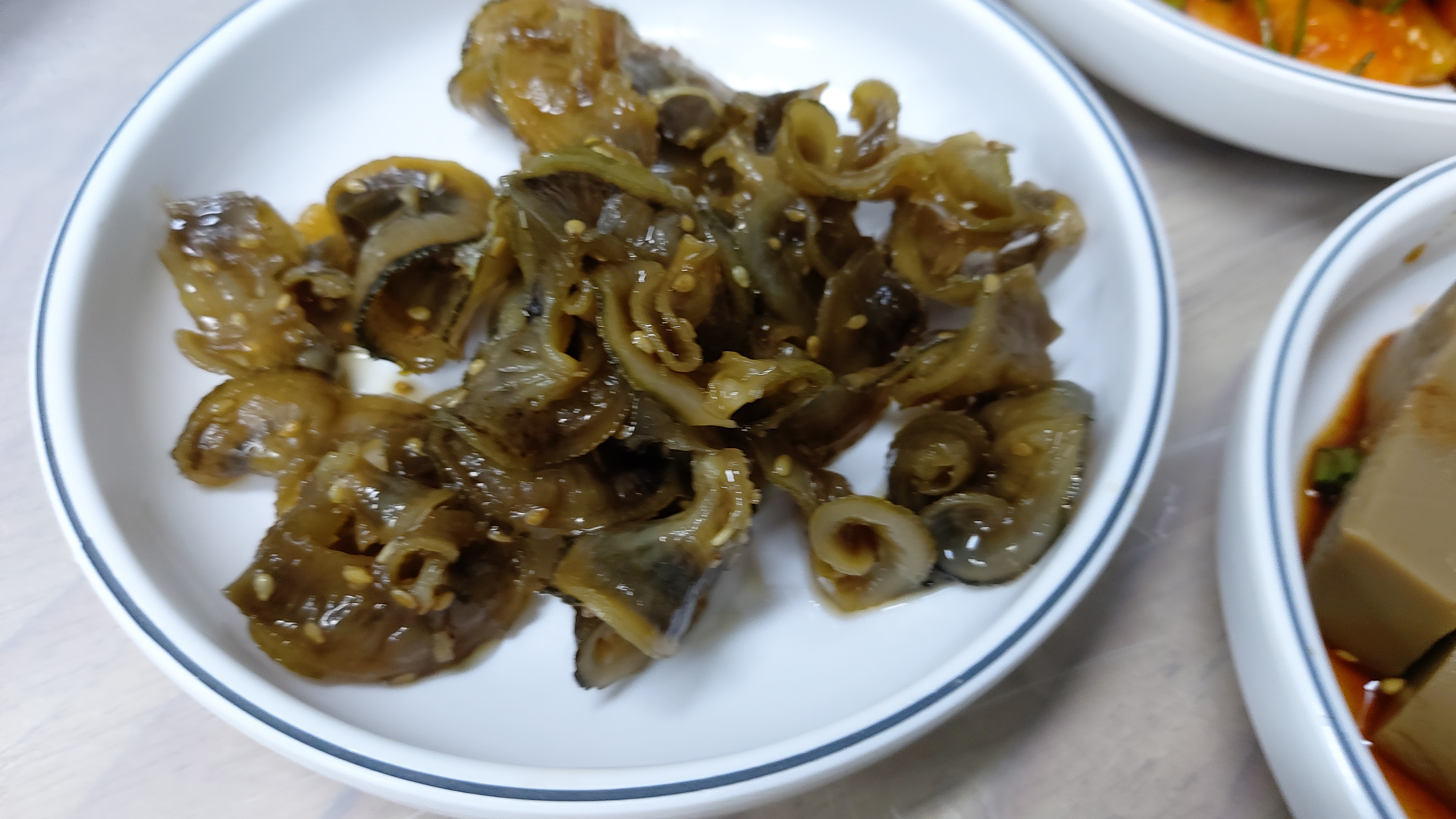나름 상당히 괜찮은 밑반찬인데 특히 맨 위 키조개 날개살과 관자 기둥으로 졸여 만든다는