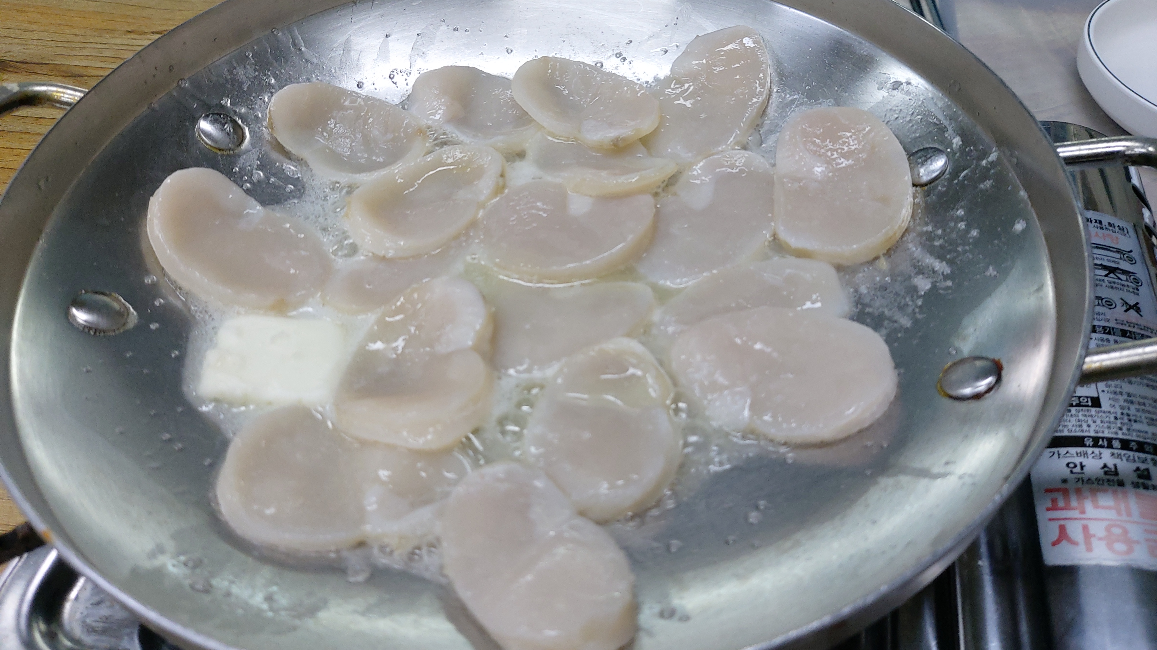 뜨거운 국물에 관자를 살짝 데쳐서 먹어도 좋고 잘 익혀서 먹어도 맛있습니다.