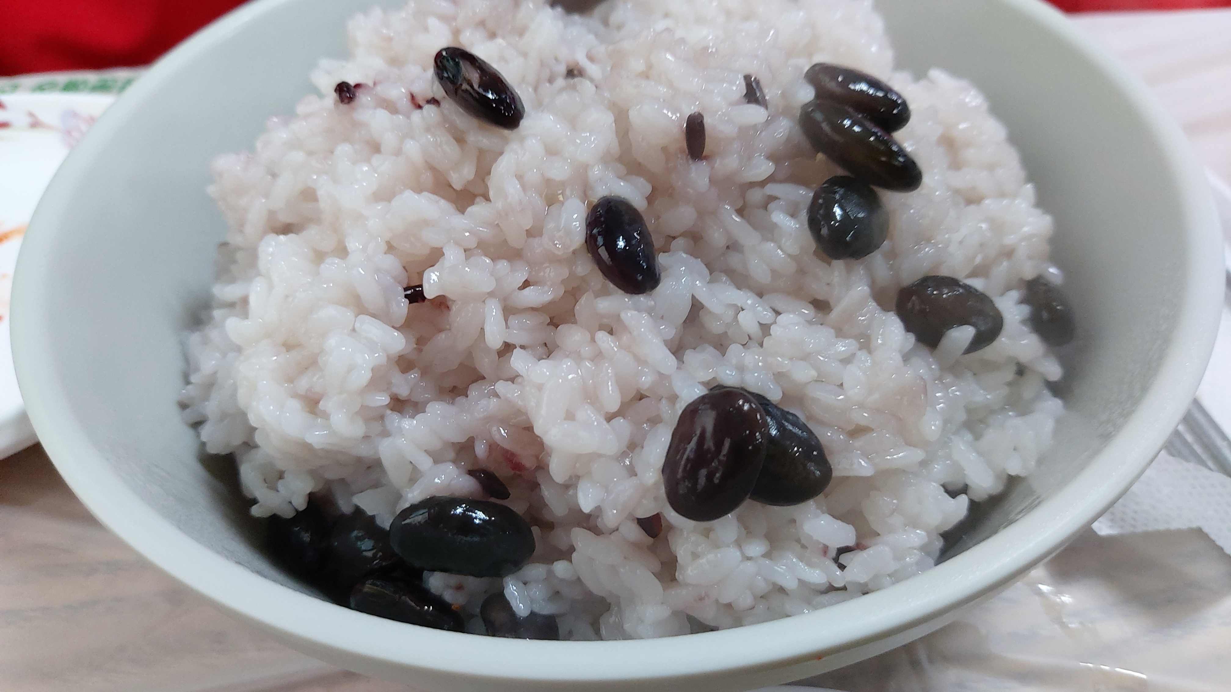 평택쌀에 현미와 검은콩을 넣고 바로 지어다 주는 것처럼 보이는 밥은 윤기 있고 맛도 좋습니다.