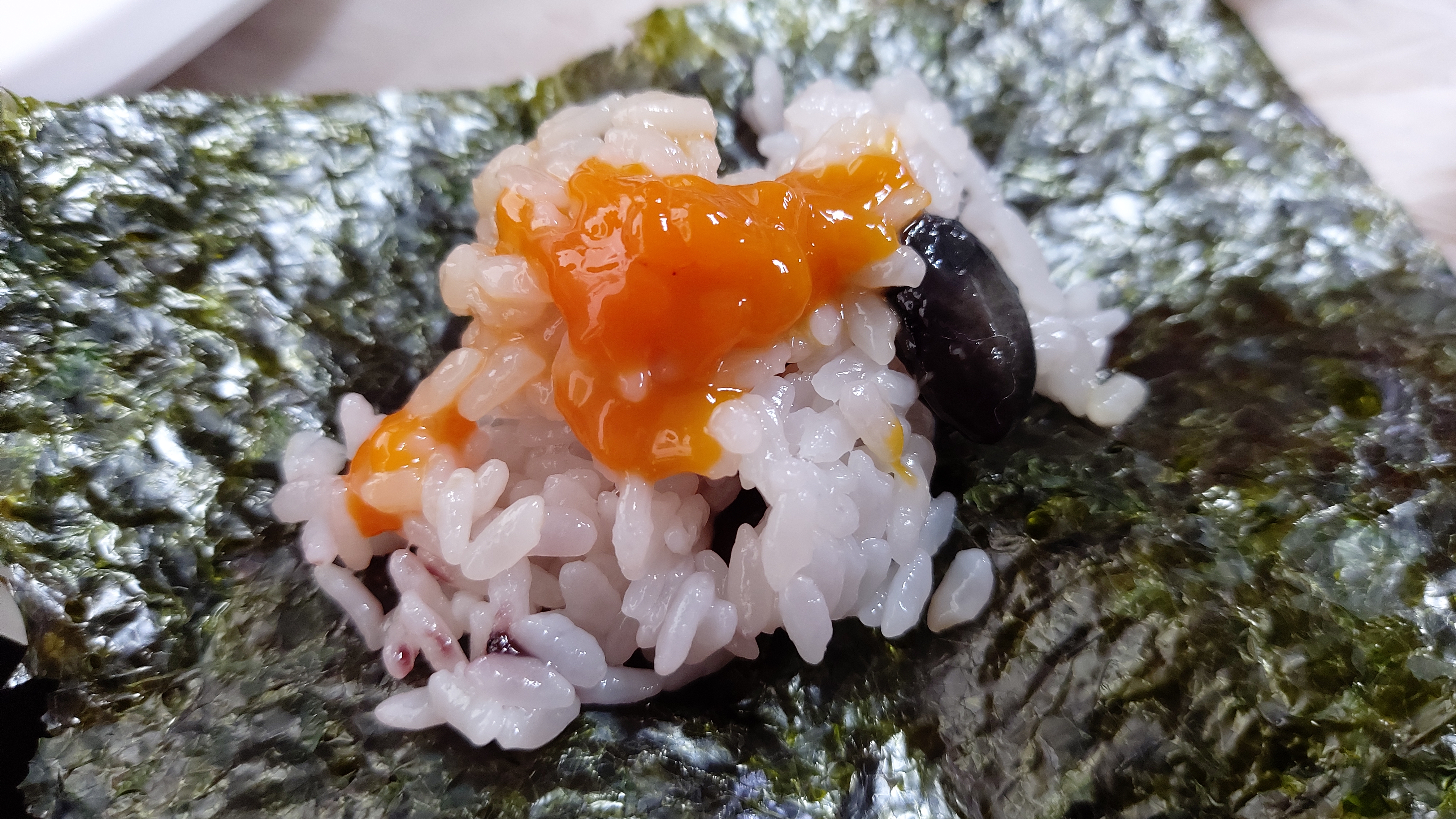 게딱지 속에 밥을 넣고 비벼 먹어도 좋지만 김 위에 밥을 놓고 게장을 조금 얹어 먹어도 좋습니다.