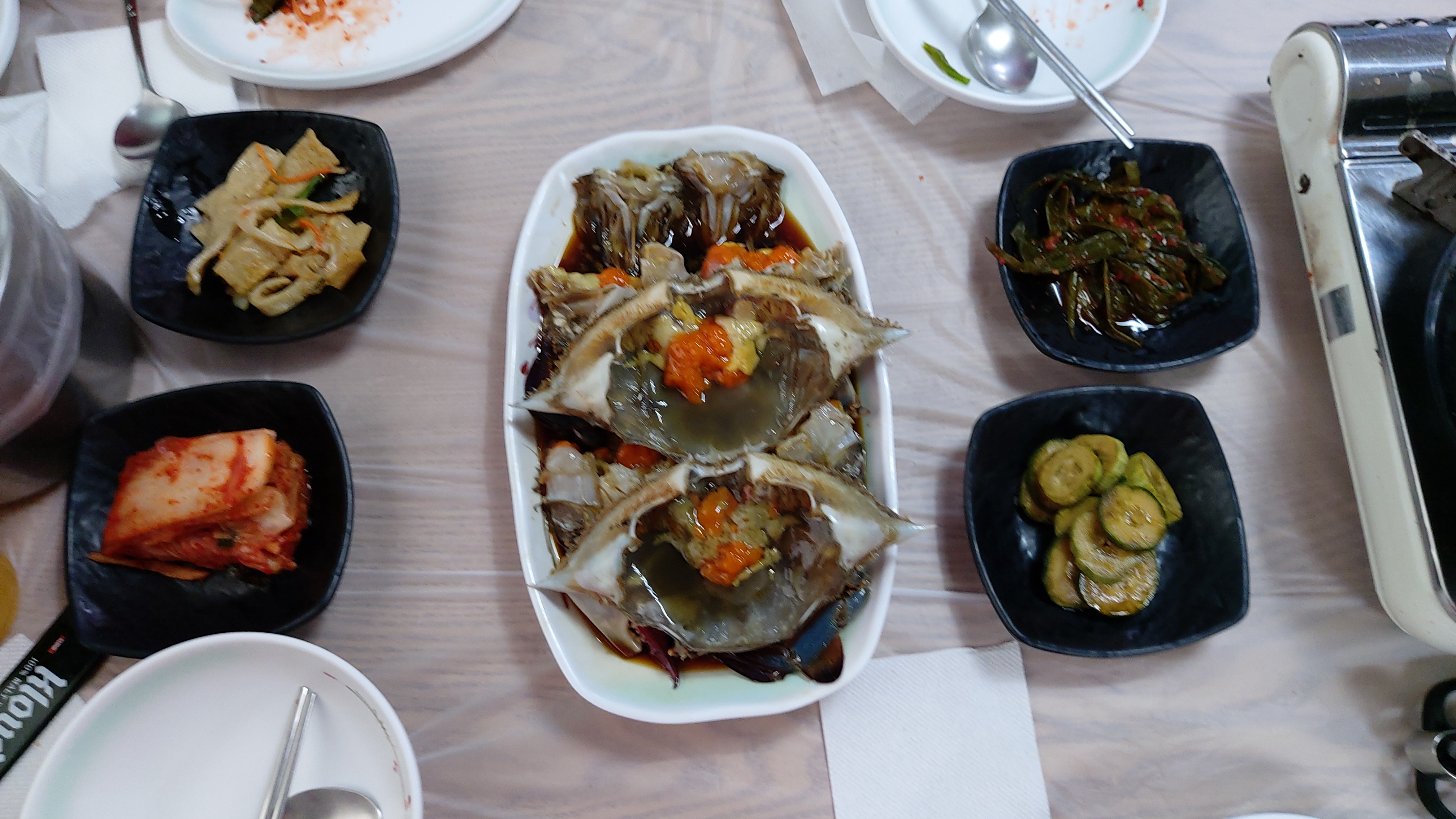 게장 같은 경우에 껍질을 테이블에 놓게 되면 아무리 잘 닦아도 냄새나 위생적인 면에서 글쎄 아닐까요?