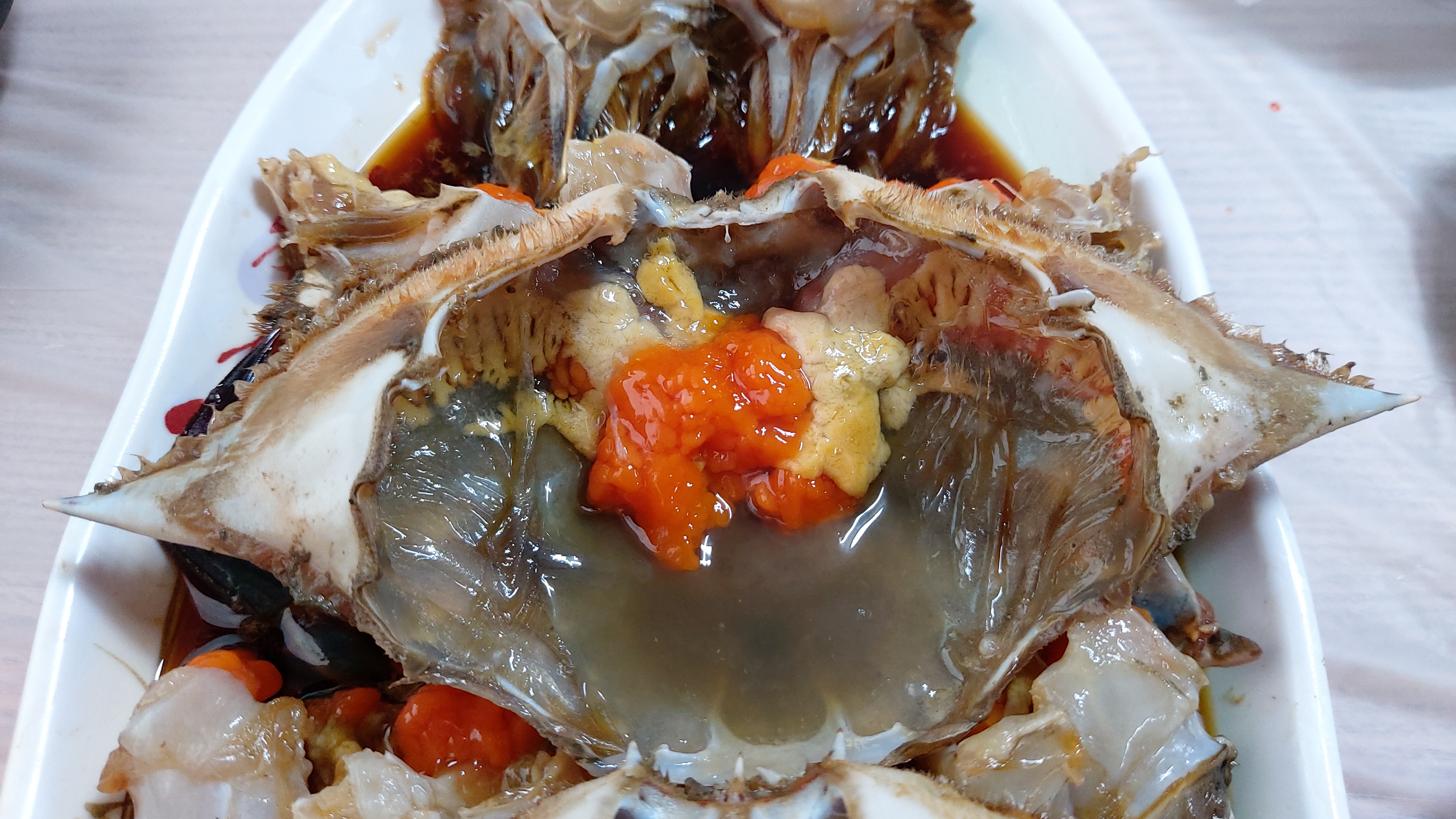 좋은 재료로 만든 꽃게이니 맛도 따라 좋을 수밖에 없을 터인 즉, 비리거나 짜지 않고 맛있습니다.